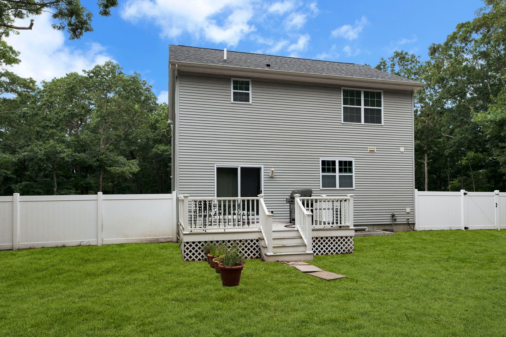 Perfect beginning for you in this recently built Post Modern dream home. Open floor plan with living room w/fireplace, kitchen, dining room, private suite with bath, two guest bedrooms, full bath, laundry room. The basement is ready for you to finish with plans and proper egress with high ceilings and outside entrance for a two bedroom, one bath accessory apartment. Outside enter the property through your circular driveway. The yard is fully f