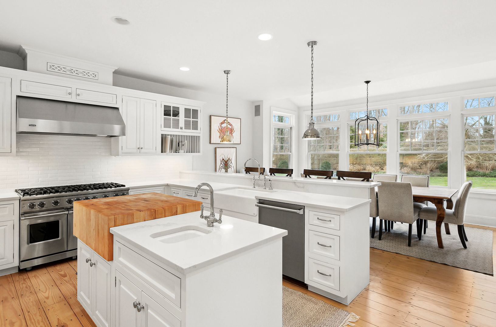 Discover the charm of this stunning English Country Manor situated on 2.8 acres of well-maintained grounds in the sought-after Georgica area. Custom-built and thoughtfully designed, this residence features 6 bedrooms, 5 baths, a formal living room, an eat-in gourmet kitchen, a cozy media room, and a screened-in porch overlooking a beautiful pool area. Enjoy the convenience of dual master suites—one upstairs and one downstairs. The grand two-s