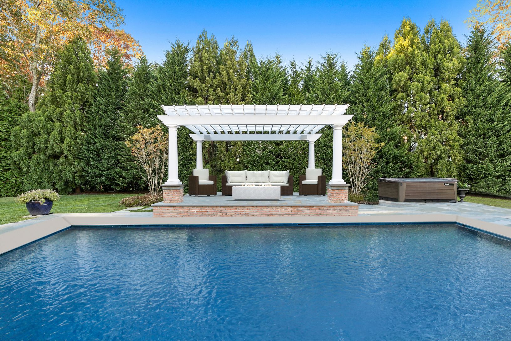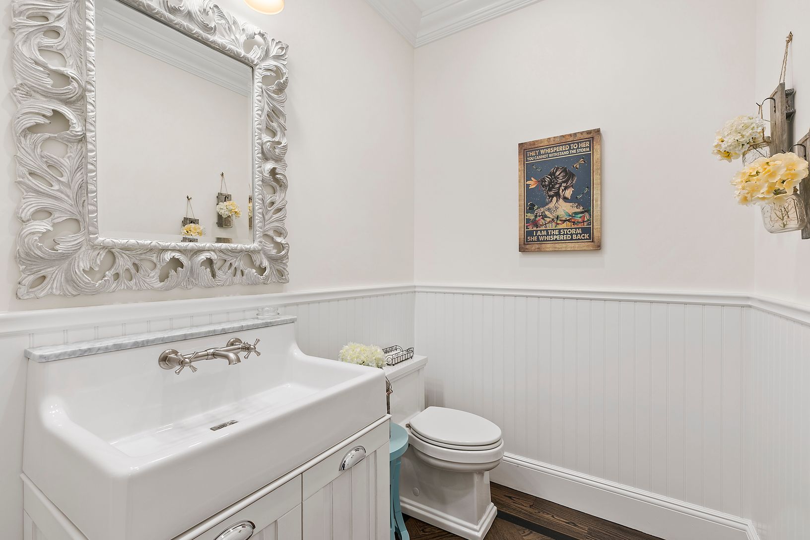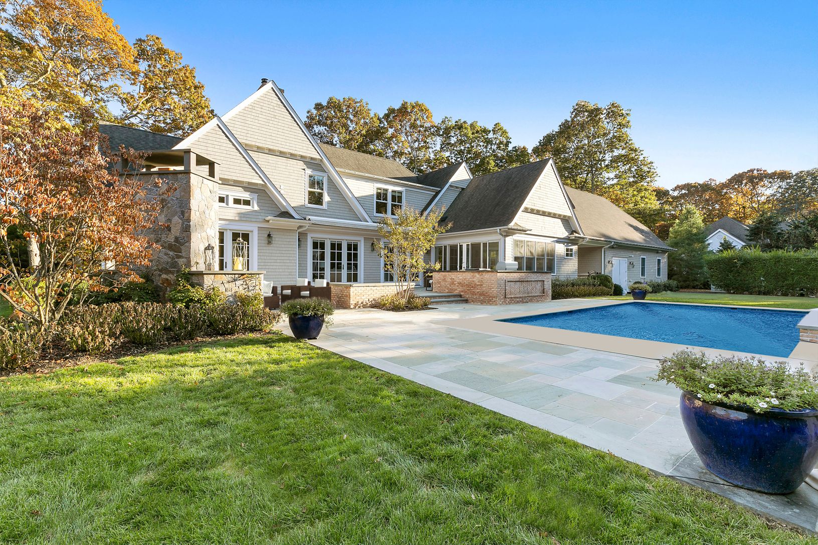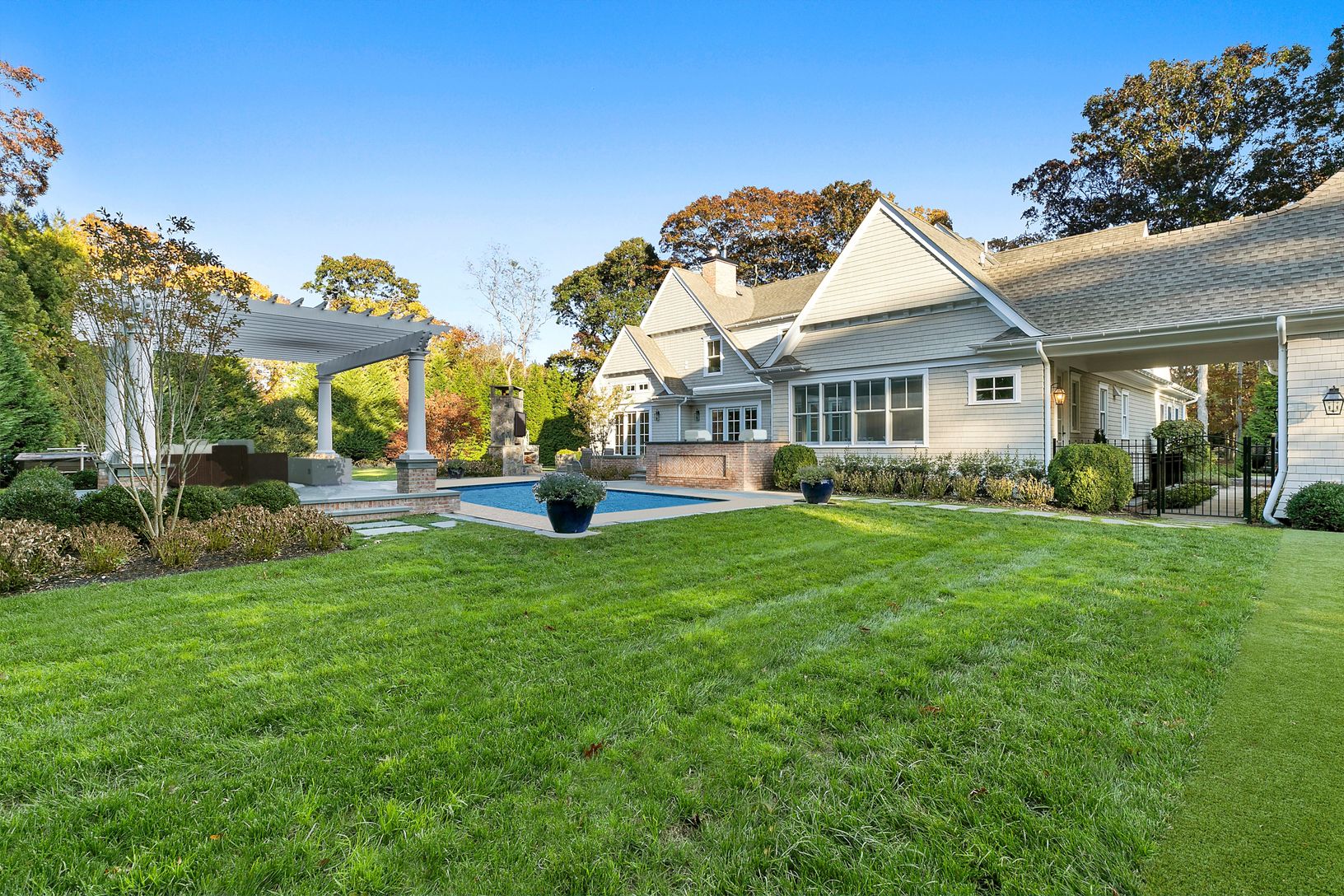Natural light and scenic views enhance this custom-built home’s interior beauty, adorned by a combination of traditional and contemporary design and features. The 5-bed, 5-bath plus 2 half-baths reflect architectural spaces from its multiple A-frames and generous square footage of X,XXX, which includes a mud room and full basement. Feel the signature Hampton’s style sophistication in the foyer with wainscoting, inlaid wood flooring, and a stai