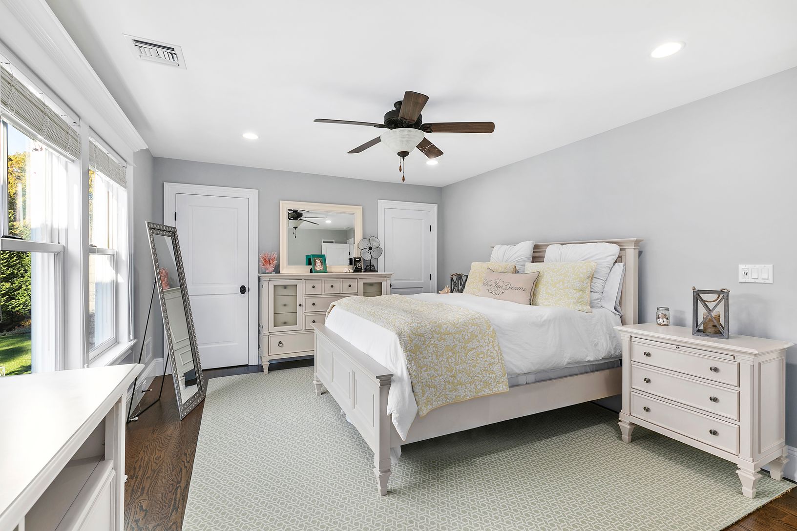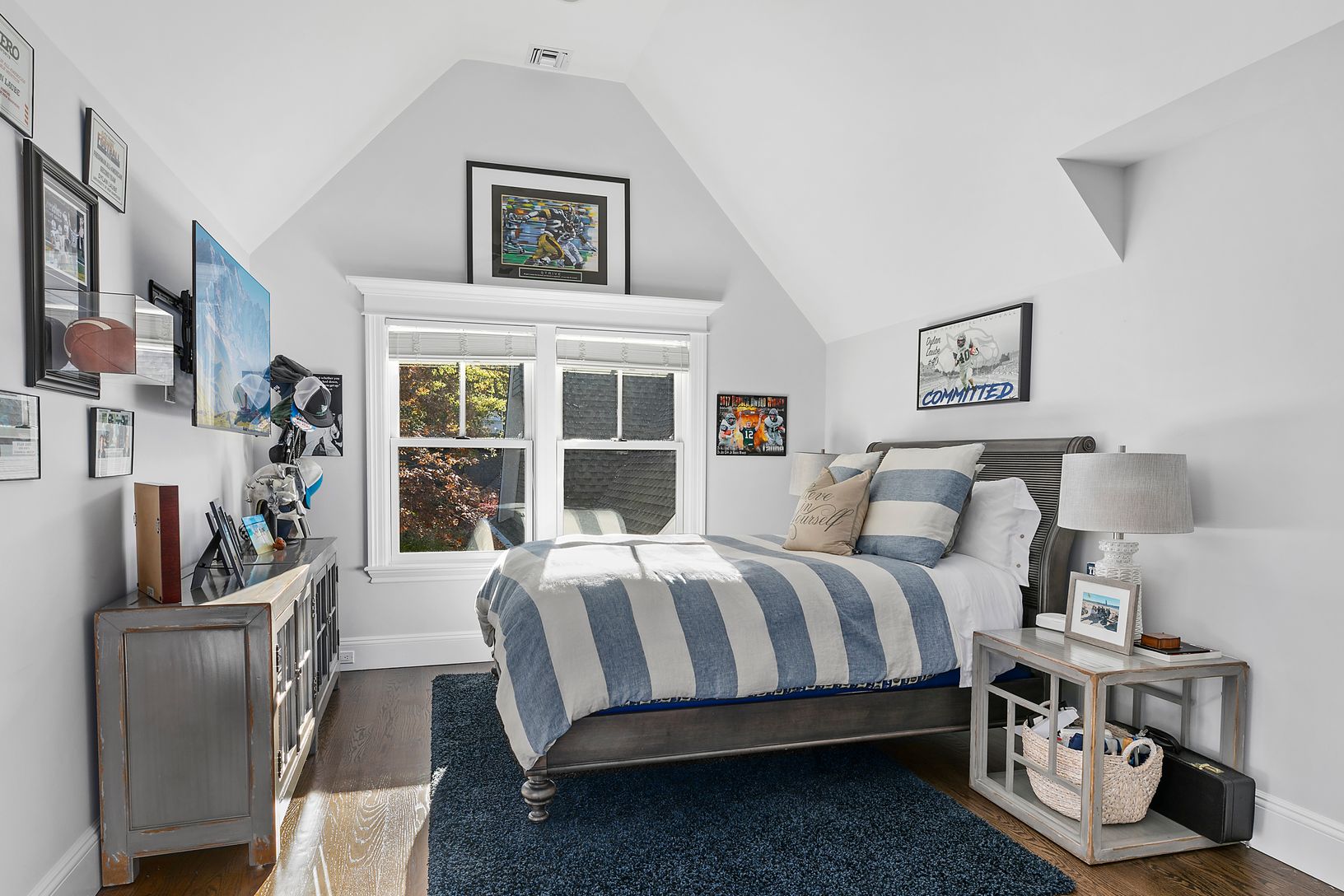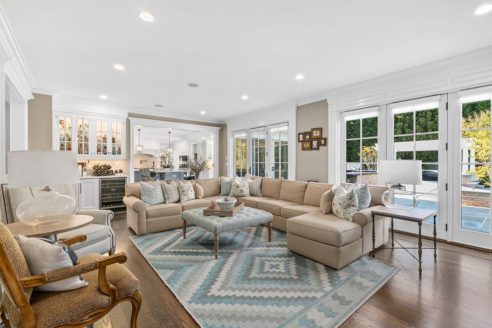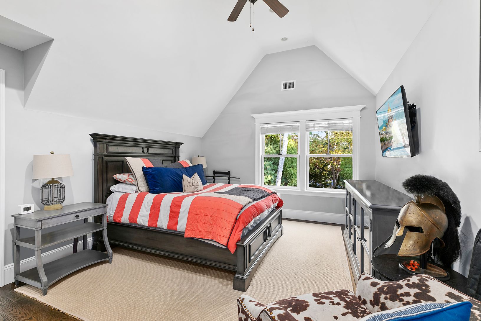 Natural light and scenic views enhance this custom-built home’s interior beauty, adorned by a combination of traditional and contemporary design and features. The 5-bed, 5-bath plus 2 half-baths reflect architectural spaces from its multiple A-frames and generous square footage of X,XXX, which includes a mud room and full basement. Feel the signature Hampton’s style sophistication in the foyer with wainscoting, inlaid wood flooring, and a stai