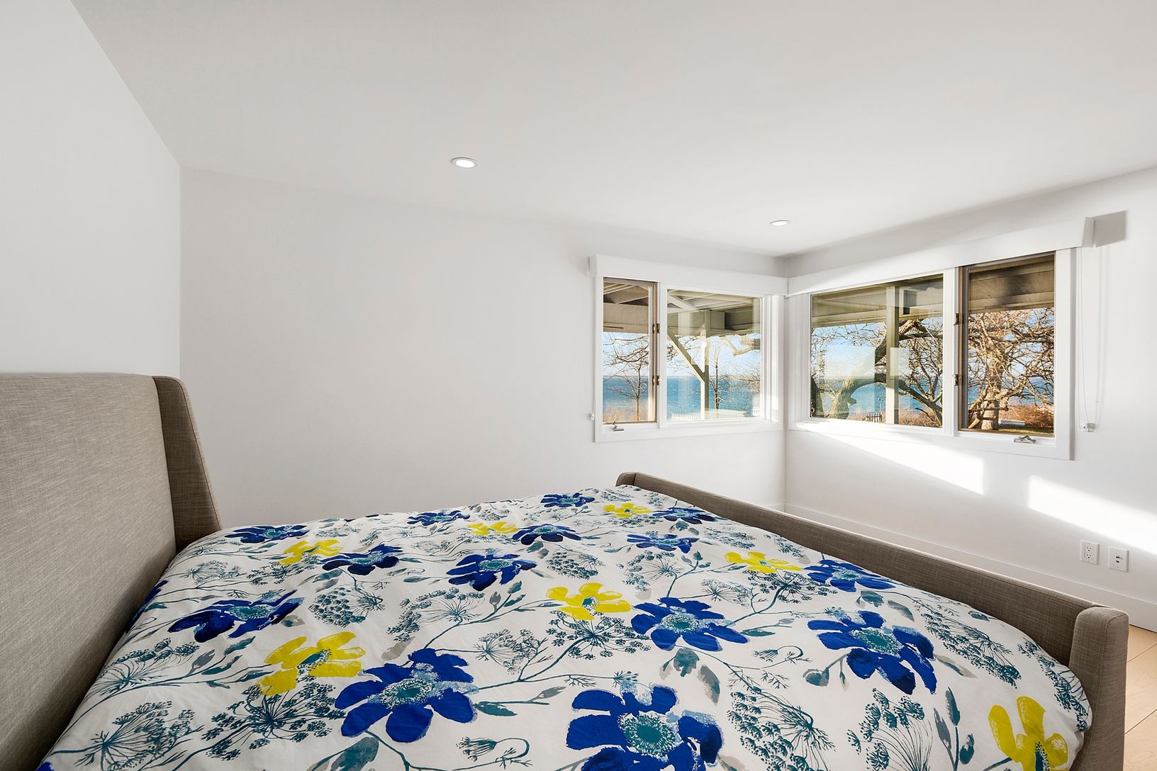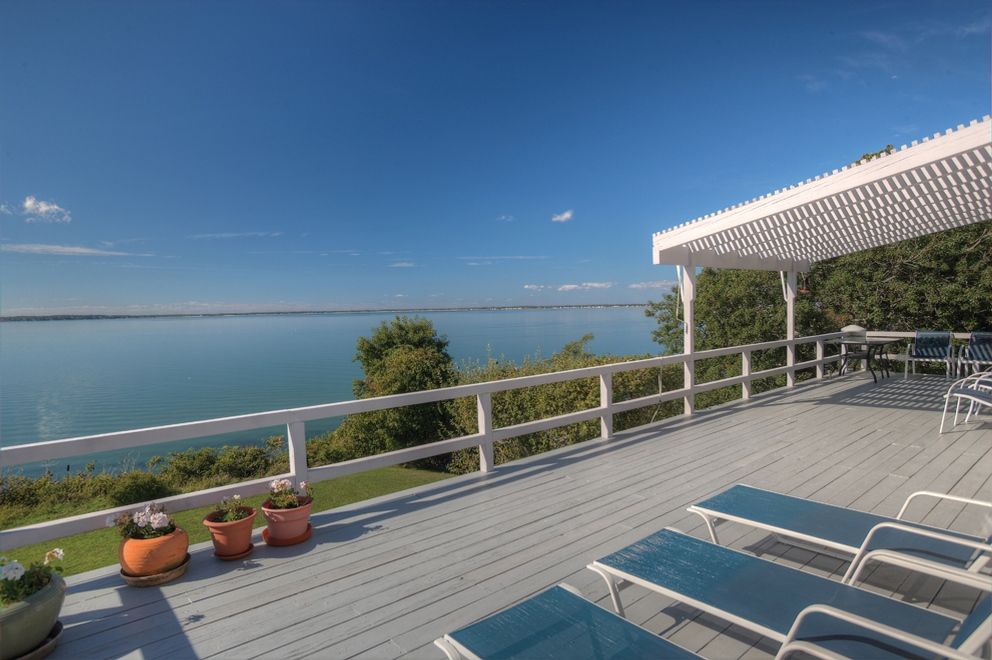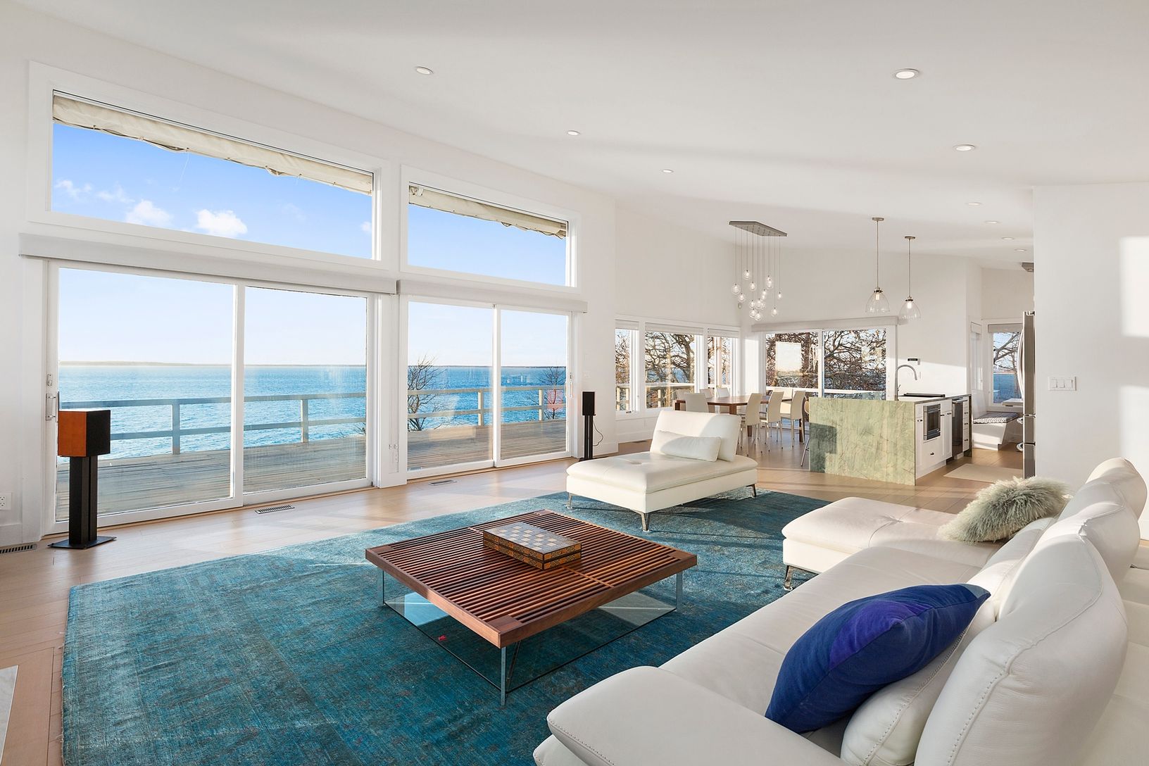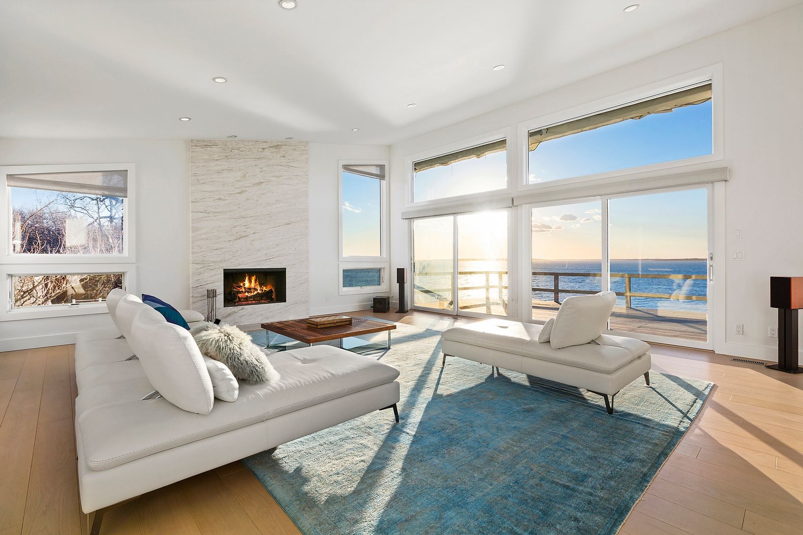 Mesmerizing sunsets can be seen from this newly renovated, beachfront home in Sag Harbor's Noyac area. Featuring 4 bedrooms plus den (or 5th bedroom), the open floor plan encompasses living room with fireplace, dining area, breakfast nook and chef's kitchen with commercial-grade stove. The half-acre property, with 108' of waterfront, is bulkheaded and has steps down to the beach. There's room to expand, and room for a pool. Mooring and tempora