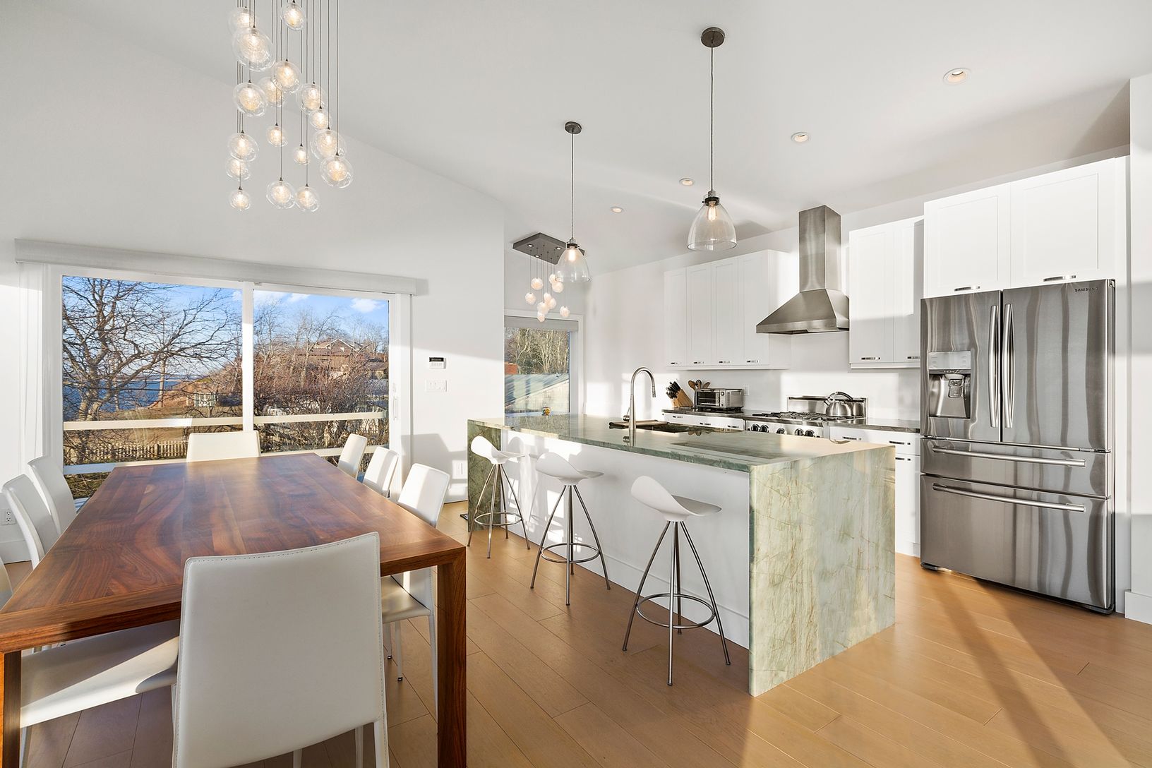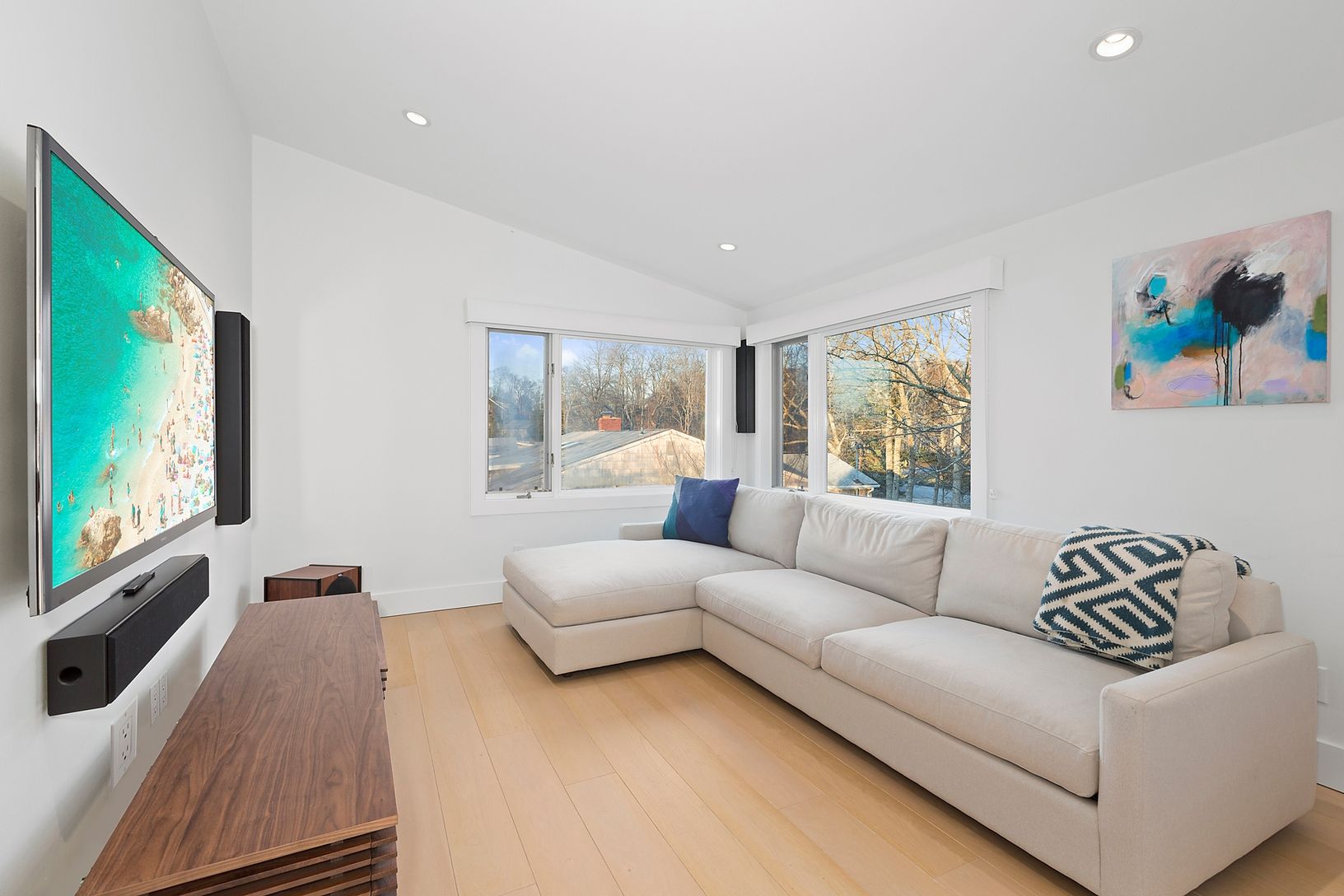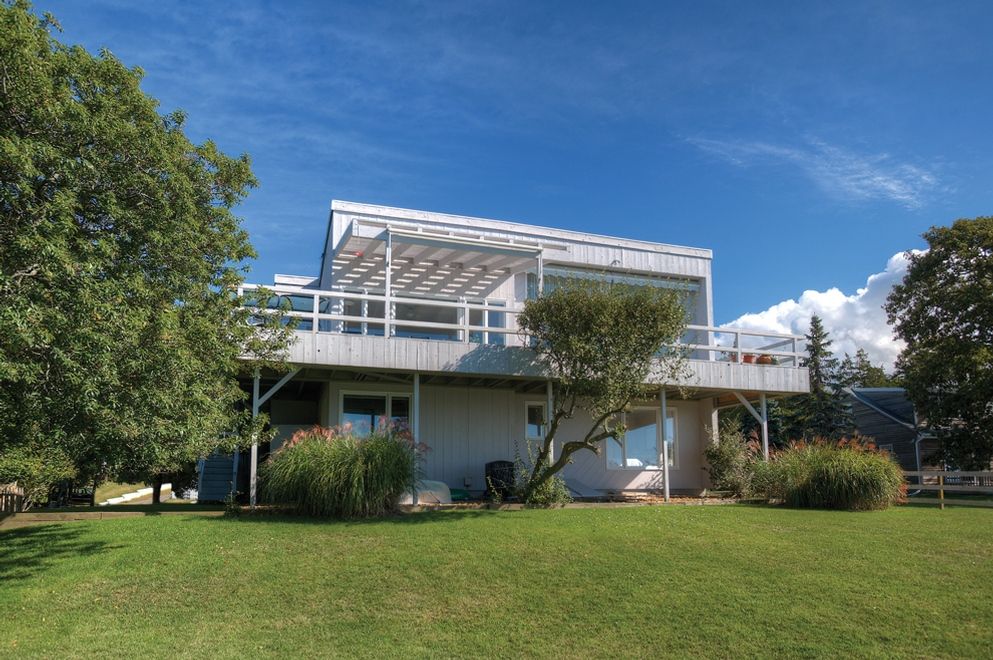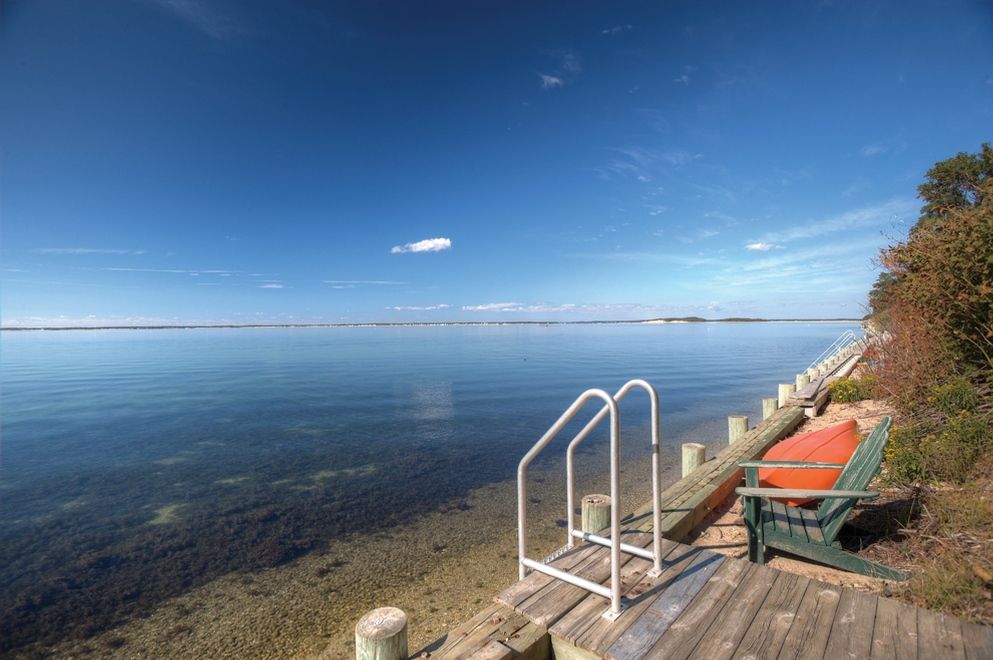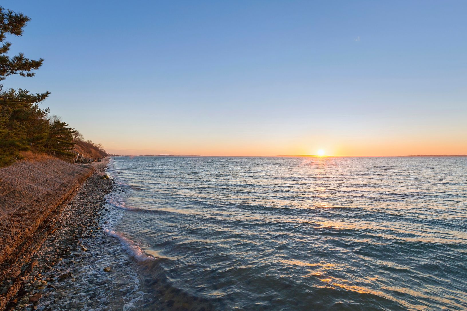 Mesmerizing sunsets can be seen from this newly renovated, beachfront home in Sag Harbor's Noyac area. Featuring 4 bedrooms plus den (or 5th bedroom), the open floor plan encompasses living room with fireplace, dining area, breakfast nook and chef's kitchen with commercial-grade stove. The half-acre property, with 108' of waterfront, is bulkheaded and has steps down to the beach. There's room to expand, and room for a pool. Mooring and tempora