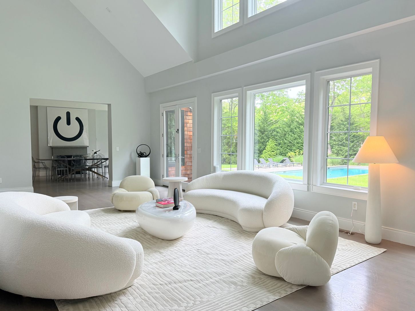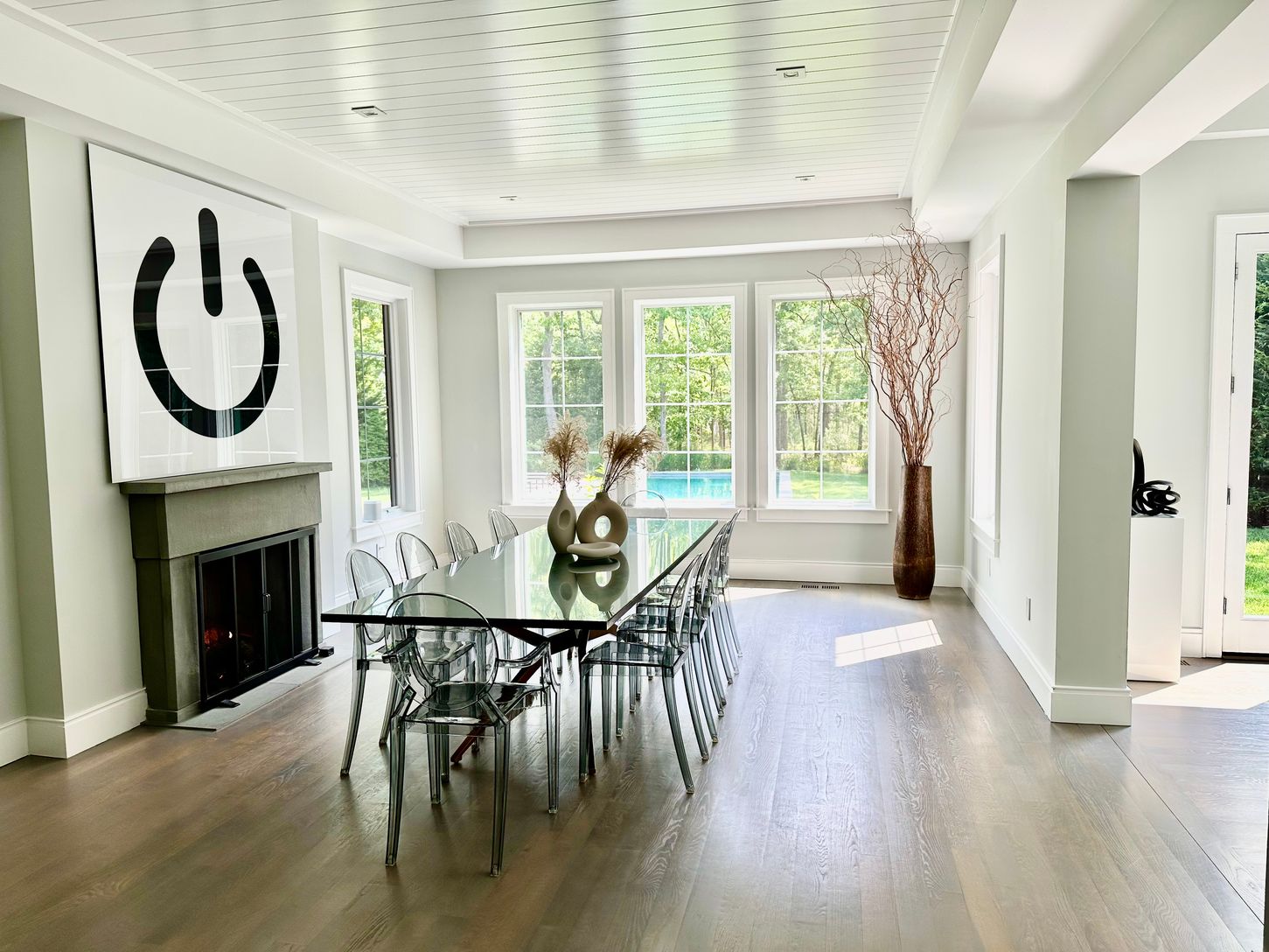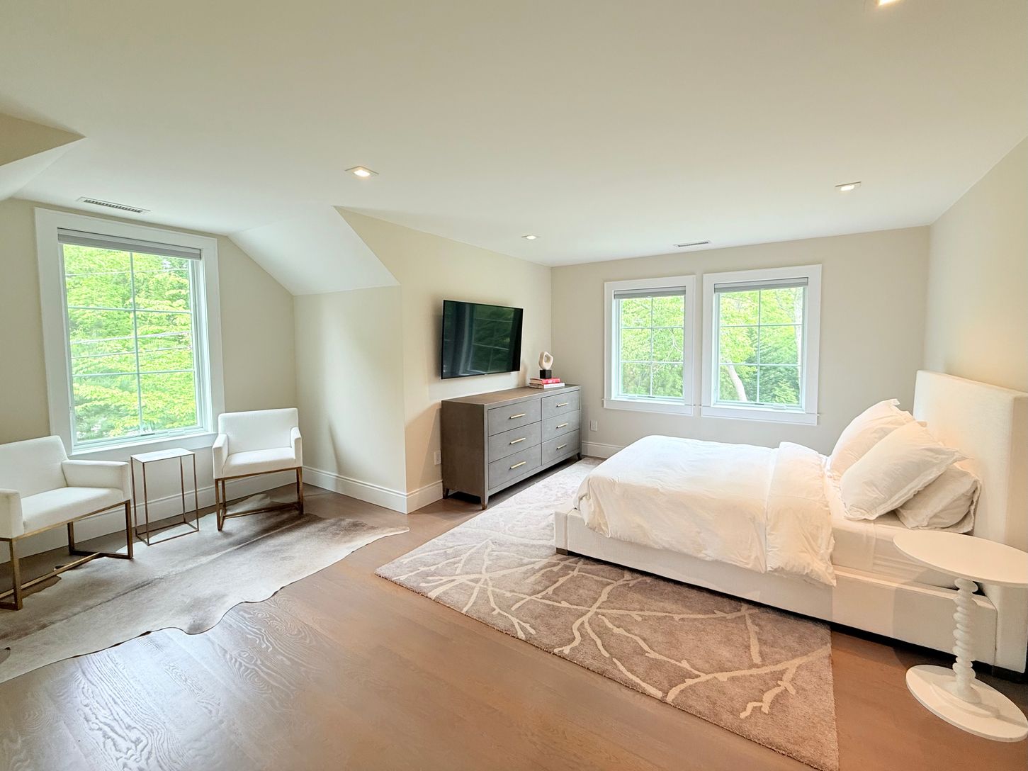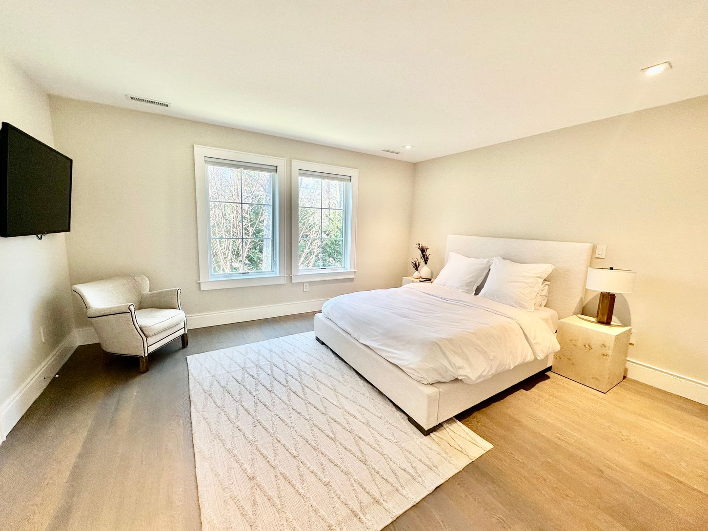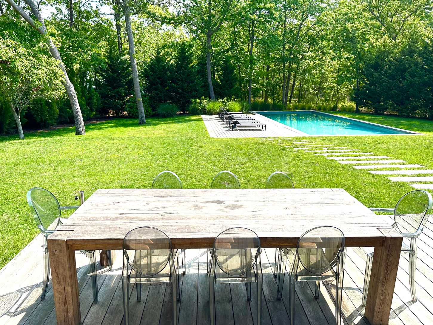 Fall in love with this stunning summer rental. Recent construction on 1.45 acres in East Hampton Village Fringe including 7,600 square feet of living space on 3 levels with 6 bedrooms, 6.5 bathrooms, and an attached 2-car garage. The first floor features an expansive living room with a soaring 19-ft ceiling, dining room, media den, covered porch, mudroom, and a first-floor master bedroom with vaulted ceilings. The kitchen has a beautiful Calc