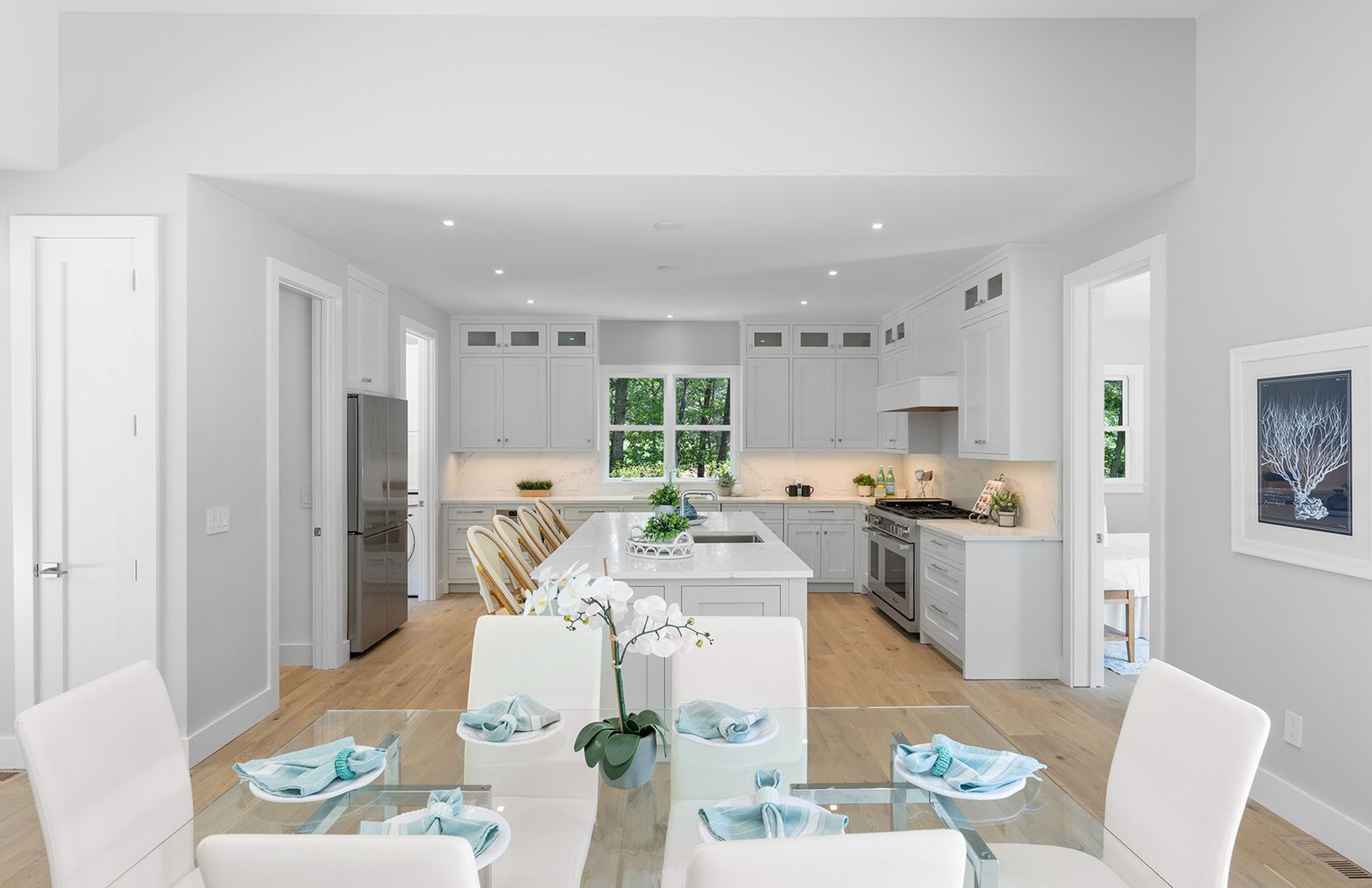 Located just 2.5+/- miles from private Quogue Village Beach at the Atlantic Ocean, the interior and exterior of this home have been completely renovated. Sited on 1.04+/- acres, 4 bedrooms and 4 full bathrooms are well planned across 3,055 +/- SF. Having the main living spaces on a single level, the open and bright great room provides a spacious setting for cooking, dining, entertainment, or pure relaxation. The primary en suite and 3 addition