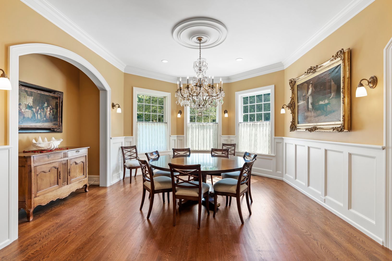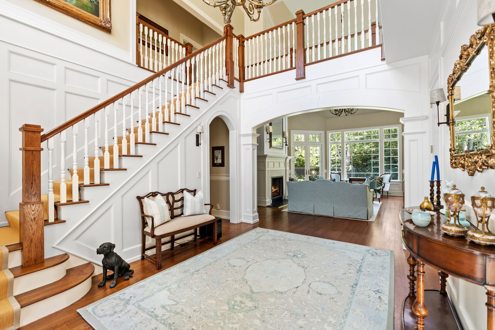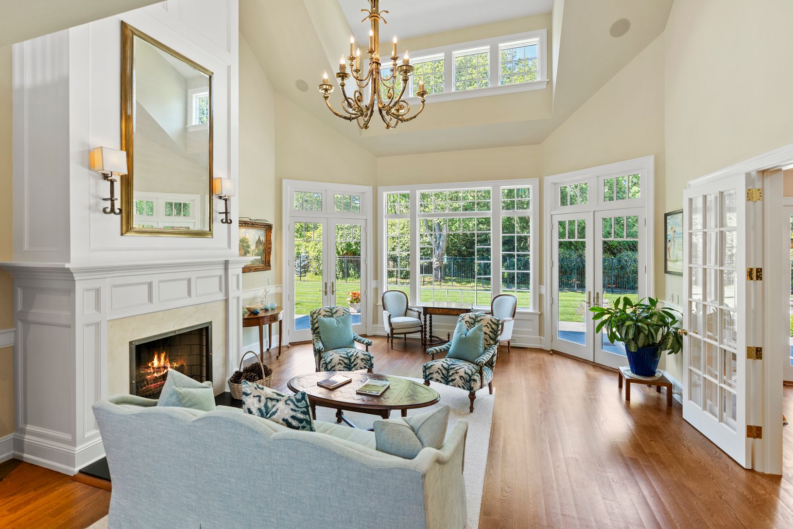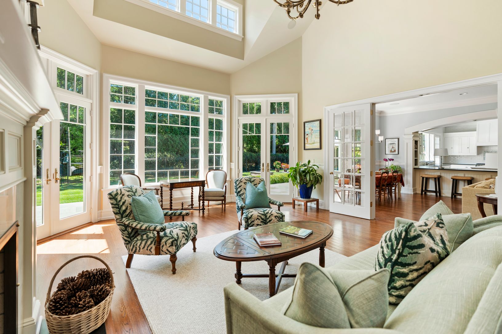 This exceptional turnkey residence offers thoughtful design and luxurious amenities, creating the perfect balance of comfort and elegance. The open entry foyer welcomes you with warmth, flowing into a spectacular great room with soaring ceilings, expansive windows, and a wood-burning fireplace. The interiors sparkle with architectural detail and are defined by remarkable natural light, creating a bright and airy atmosphere across the living sp