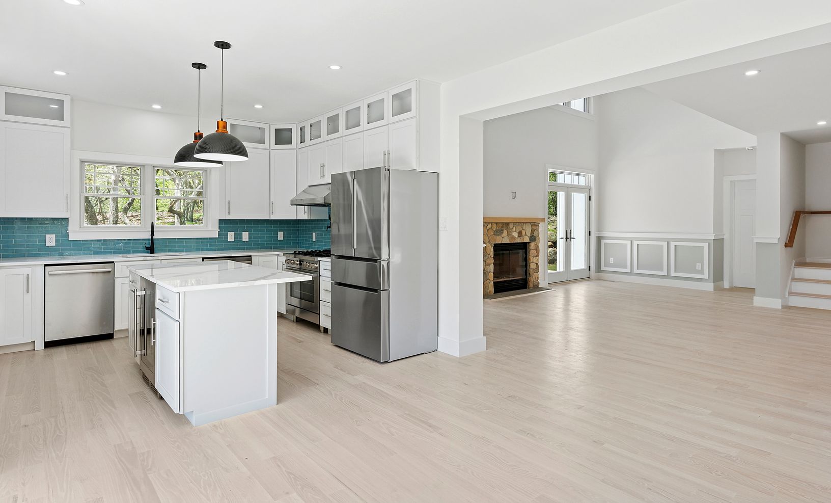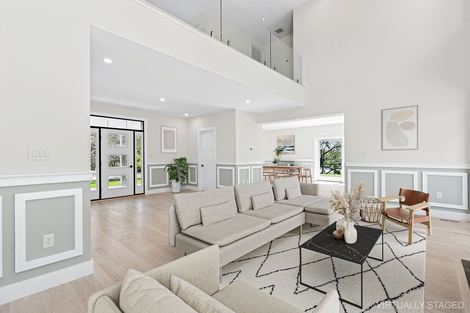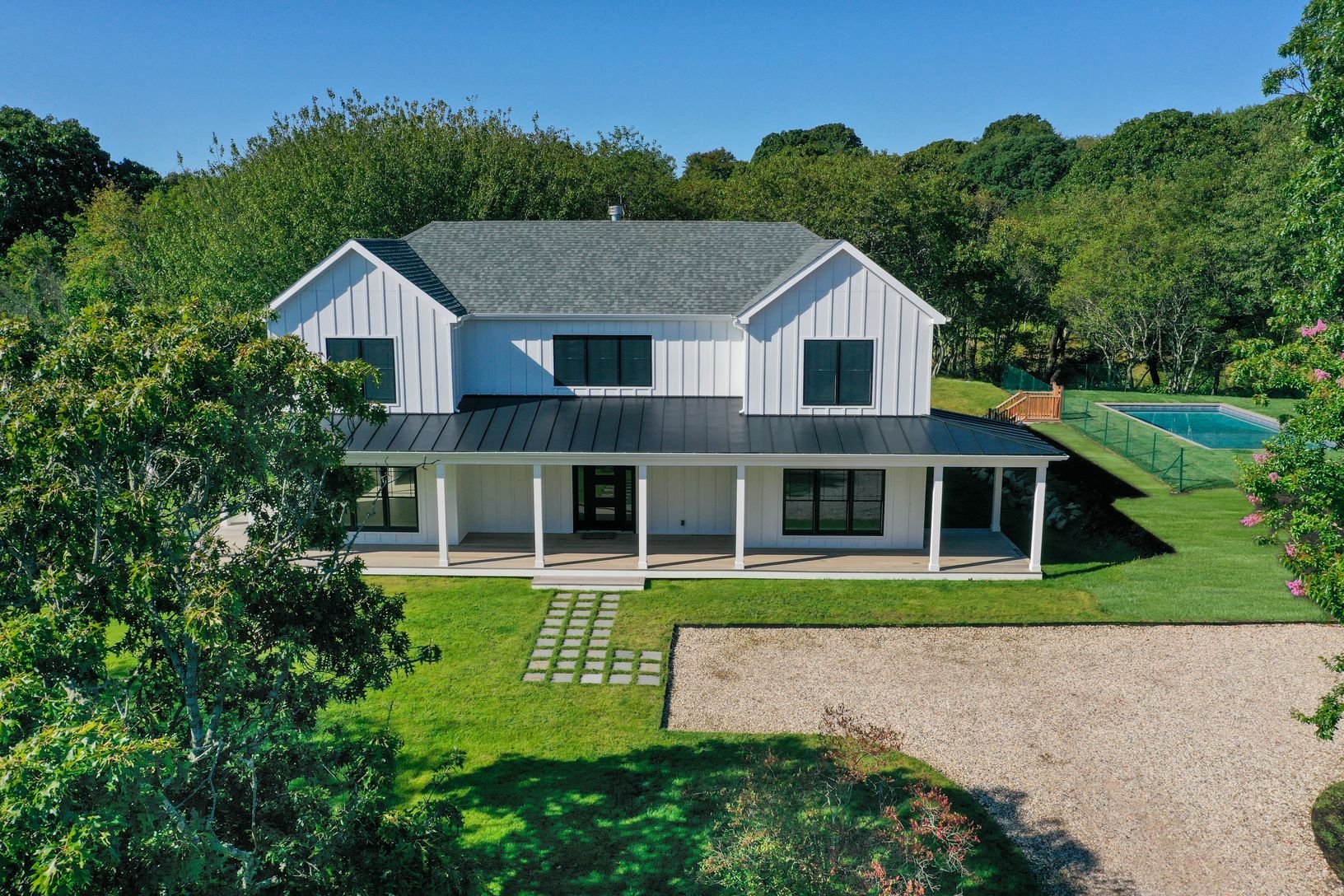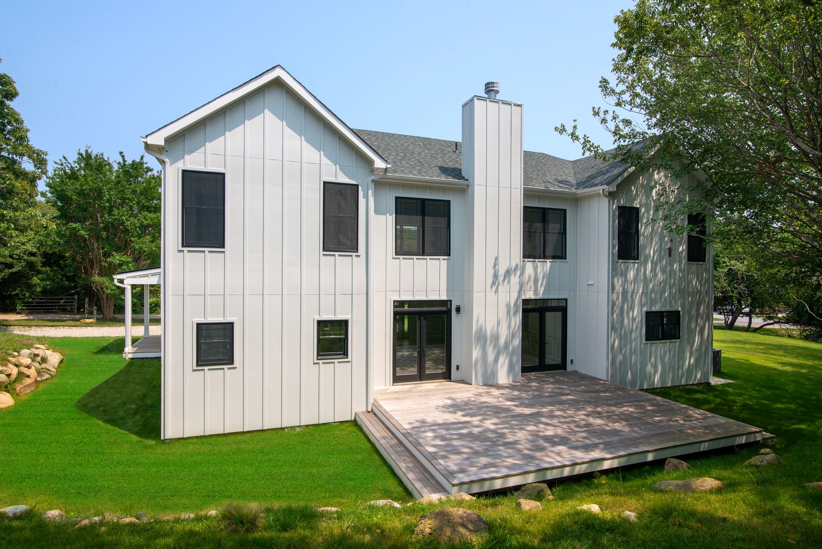 Due for completion in Spring 2025, this stunning new construction in Montauk is set on a sprawling, park-like acre at the end of a quiet road, offering exceptional privacy and tranquility. This traditional-style residence spans over 3,300 square feet and features five spacious bedrooms, five full bathrooms, and one half bathroom. The first level boasts a double-height living room with a cozy fireplace and a powder room. A modern kitchen, equip