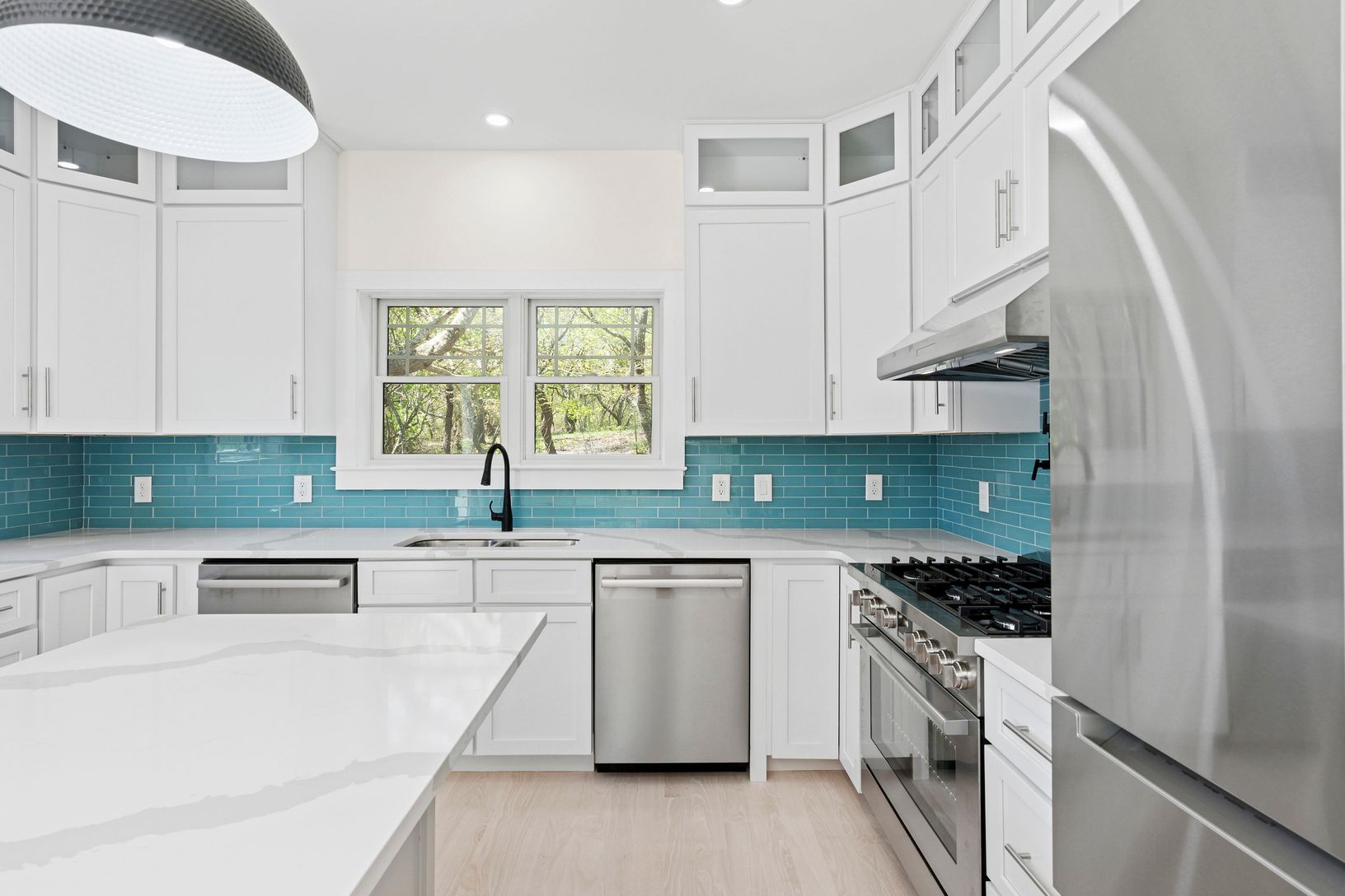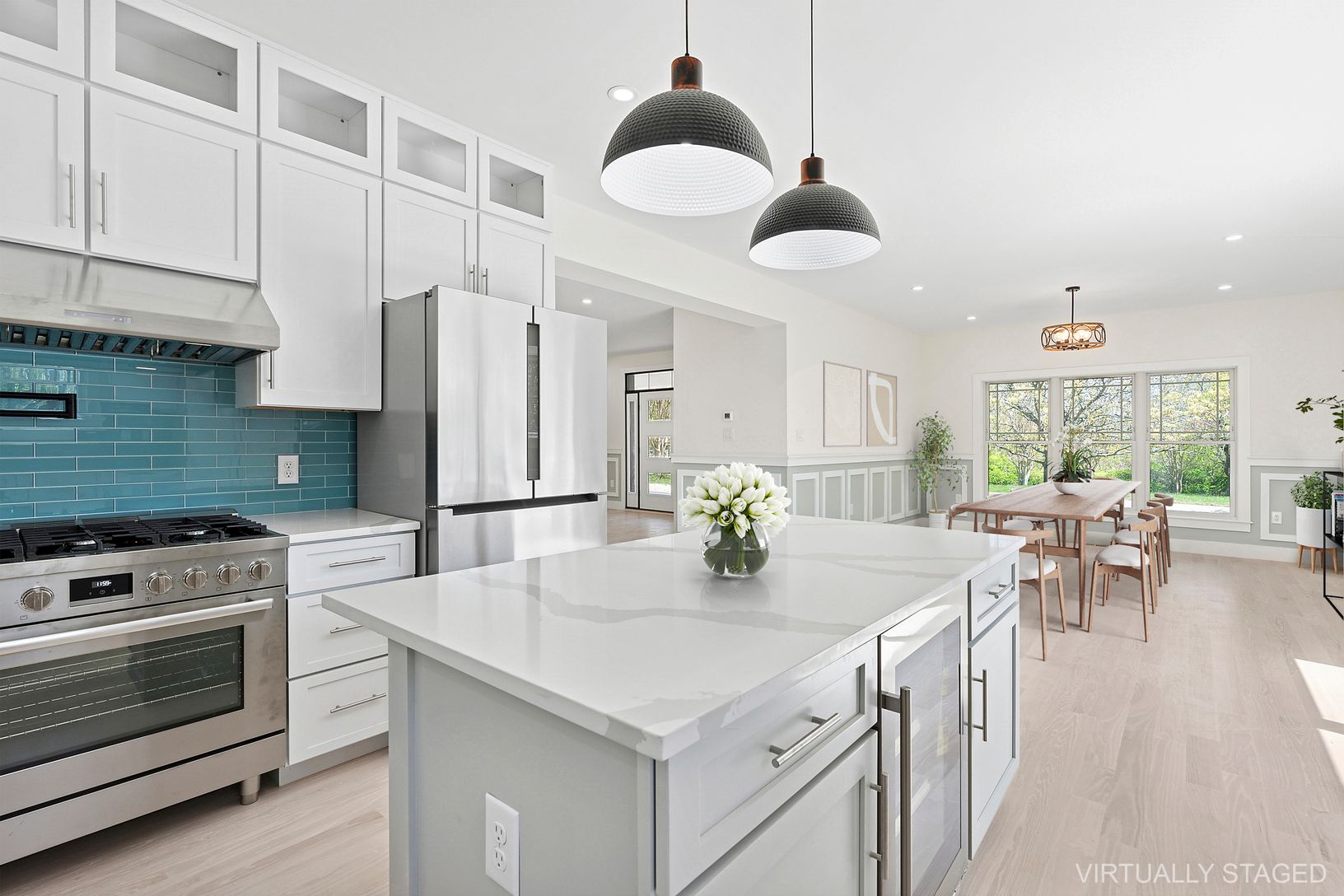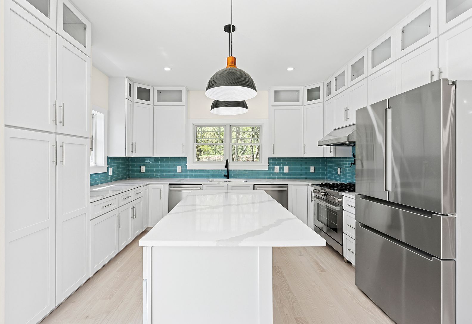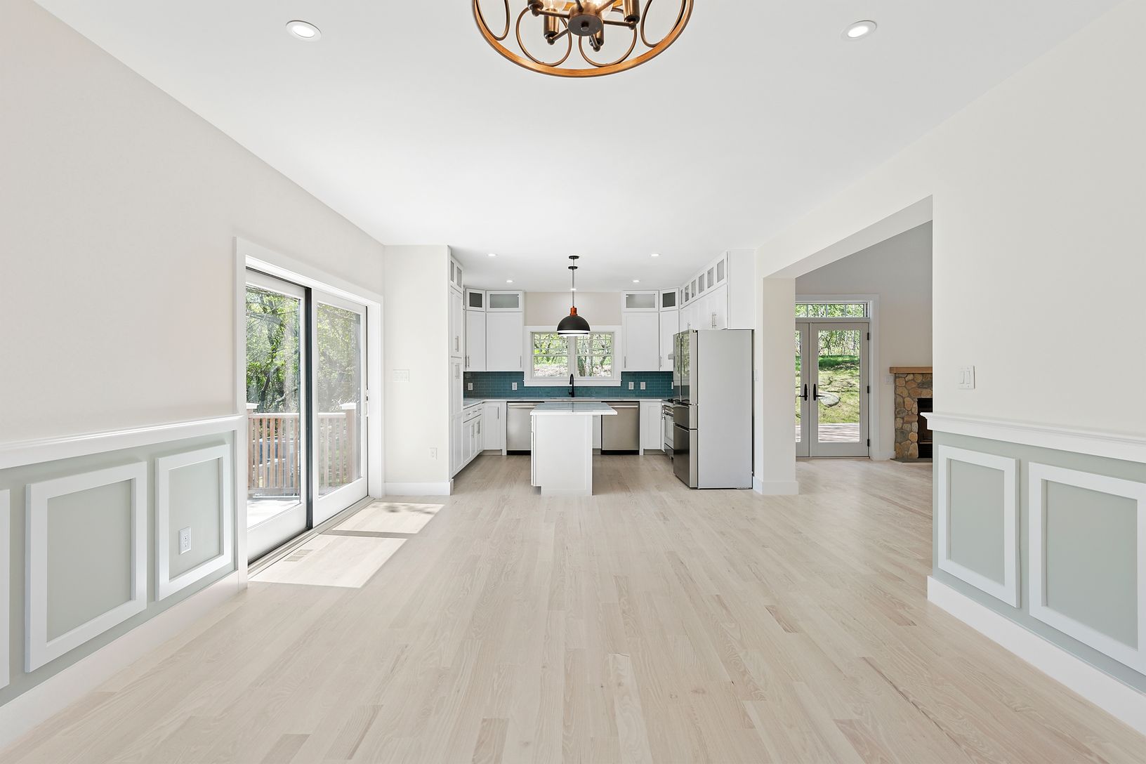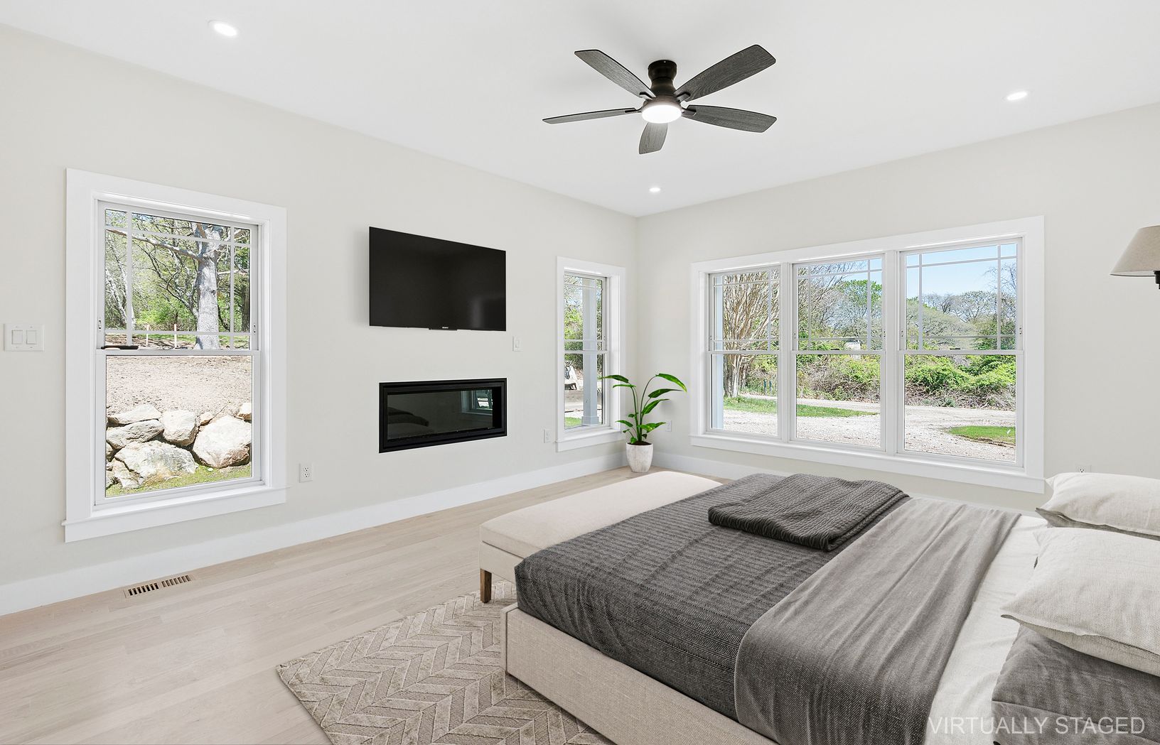 Due for completion in Spring 2025, this stunning new construction in Montauk is set on a sprawling, park-like acre at the end of a quiet road, offering exceptional privacy and tranquility. This traditional-style residence spans over 3,300 square feet and features five spacious bedrooms, five full bathrooms, and one half bathroom. The first level boasts a double-height living room with a cozy fireplace and a powder room. A modern kitchen, equip