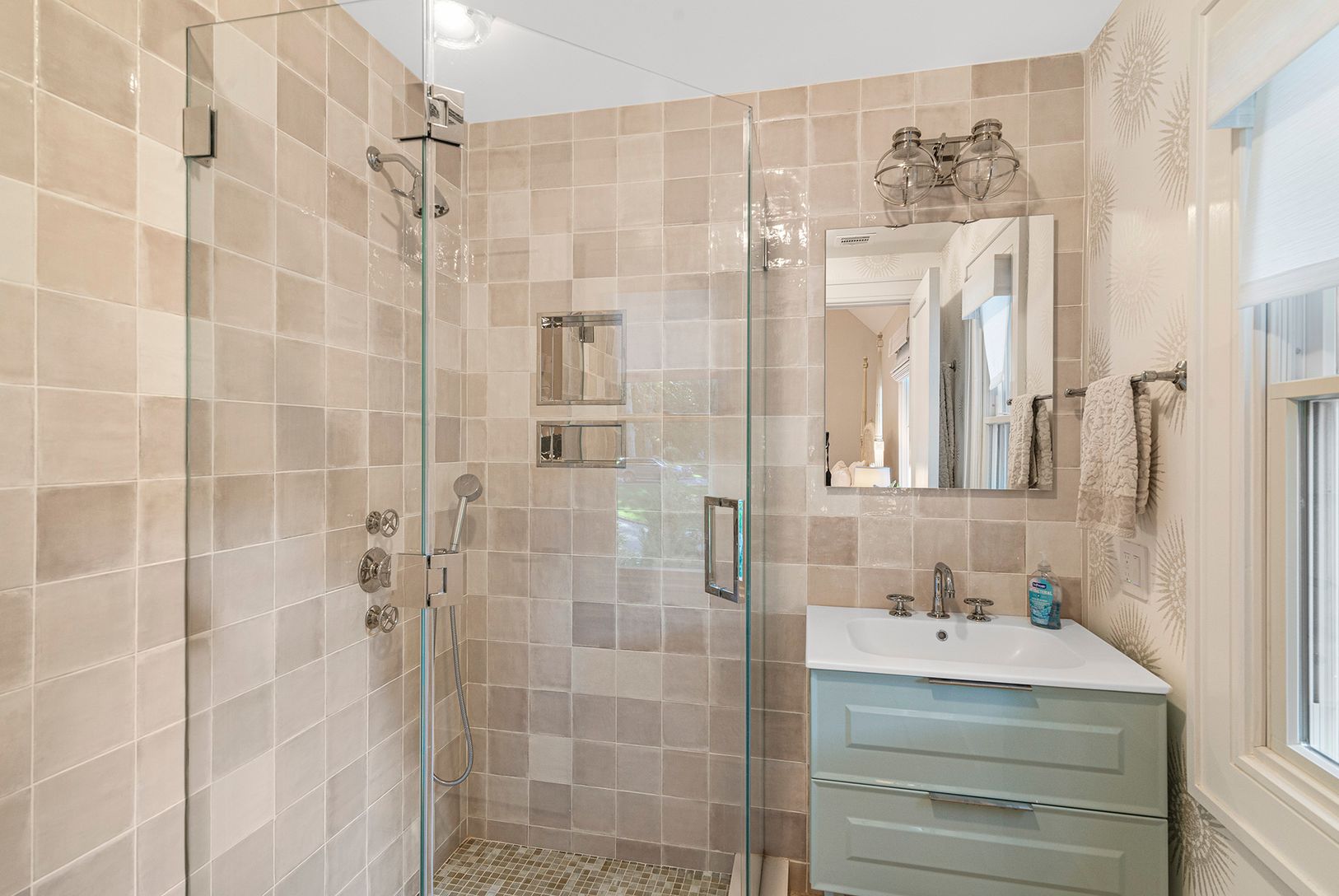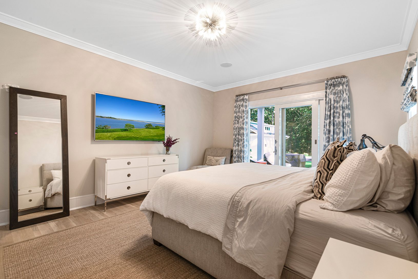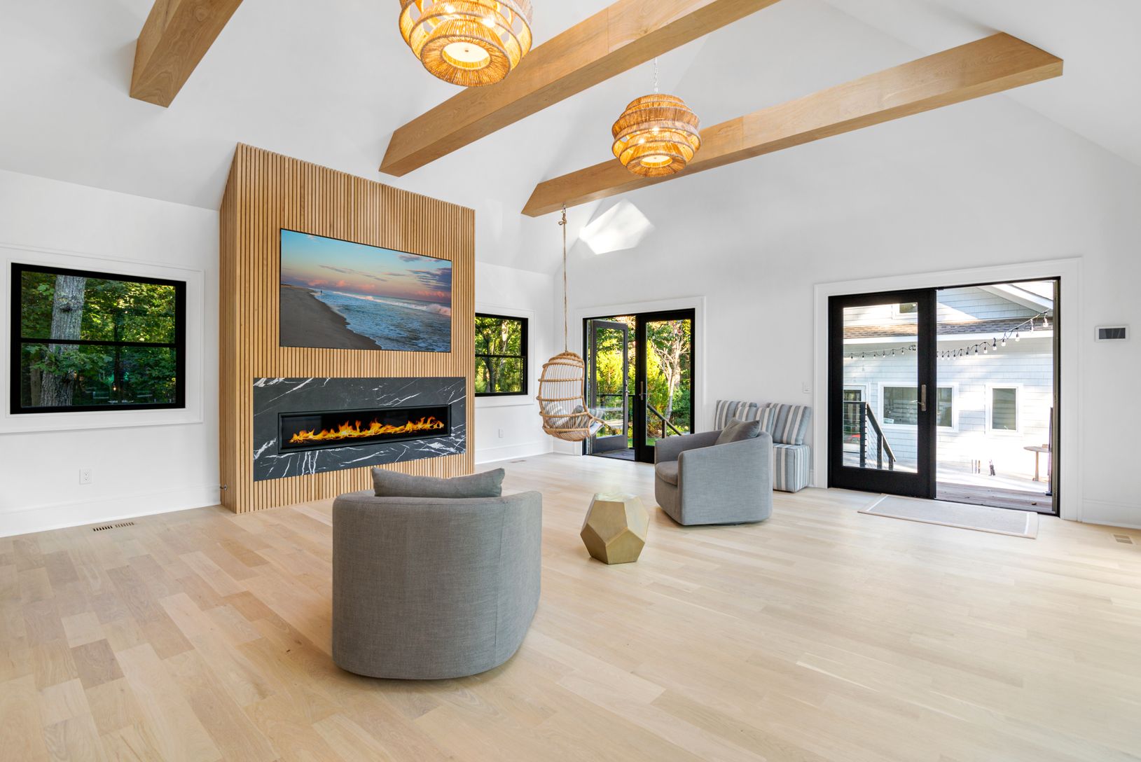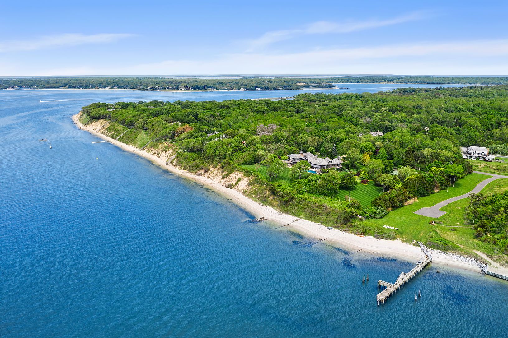 Located near Sag Harbor Village in the gated waterfront enclave of West Banks - North Haven, this stunning residence , sited on a private 1.27+/- acre parcel offers 5 bedrooms and 4.5 baths across 5500 +/- sf of beautifully designed living spaces. Upon entry you are captivated by the soaring double height ceilings opening to an open floor plan spanning the whole first level. A living room and fireplace hearth flowing into a new modern chef's k