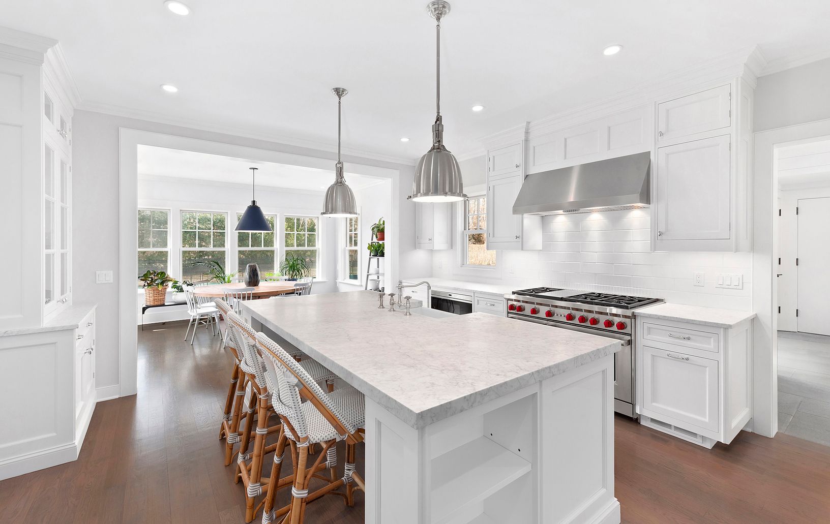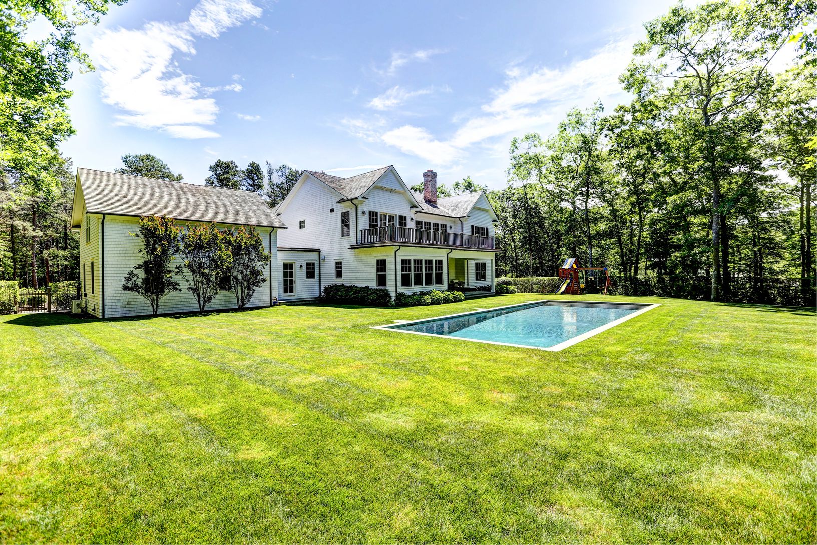 Finished in 2016 and conveniently located only 2 miles from the ocean beaches and Southampton village, this home is turnkey and ready for summer occupancy. Features include, formal living room with fireplace, media room/library, formal dining area, modern state of the art Bakes & Kropp kitchen, breakfast room, walk in pantry, 6 ensuite bedrooms ( including a sensational 2nd floor master suite with private terrace and a 1st floor spaciou