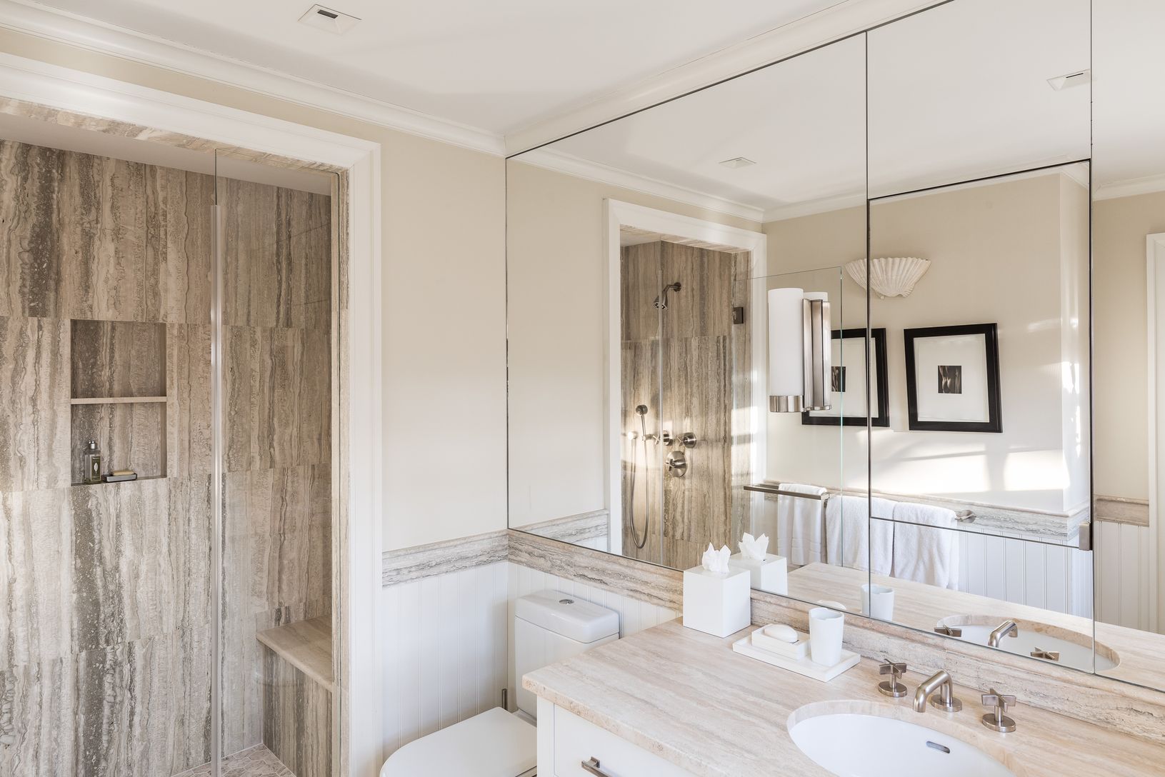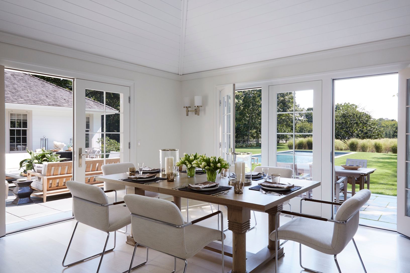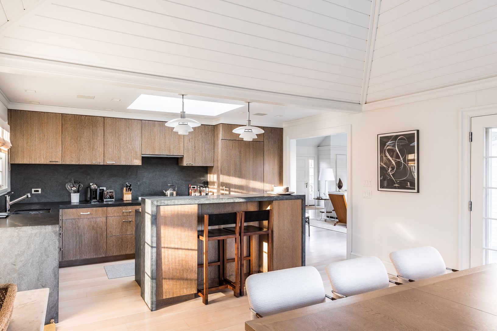 In the middle of East Hampton but feels like you could be in the South of France. Designed by renowned AD 100 interior designer, David Kleinberg, the expansive four-acre property adjacent to a nature preserve, is in close proximity to the village of East Hampton, and is secluded position down a dramatic driveway. Beautiful layout with an open living room and the gathering room adjoining the sunny kitchen with a mix of timeless and mid-century