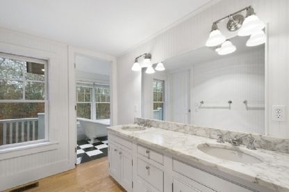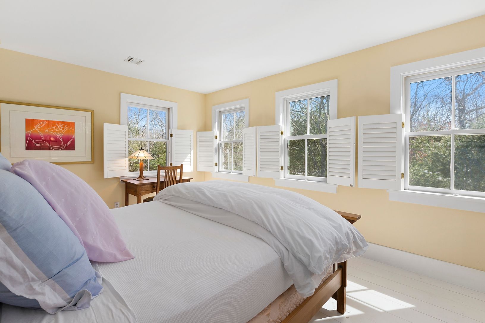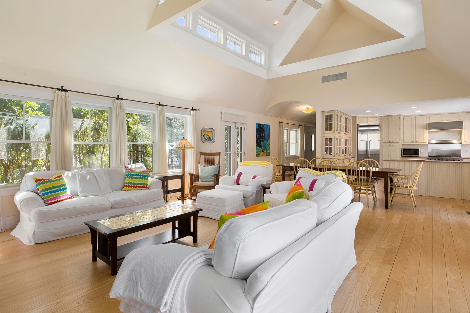 Deliciously close to the shimmering bay, is this very special 5 bedroom, 3.5 bath shingled traditional beautifully sited on a serene 1.8 acre well-landscaped parcel in the desirable Grace Estate area. A distinctive coffered ceiling foyer leads to the vaulted living room lined with French doors and rimmed with clerestory windows; there's a fireplace too, for cool nights and cozy winter days. The adjacent kitchen is well-designed with ample work