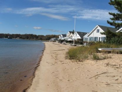 It's all about water views, views, views! And of course your own beach! Walk in this original 1920s cottage and you will feel at home in this open yet cozy waterfront home. Designed to enhance major bay views with a stone fireplace for winter days. This charming home with detached garage is situated at the end of a delightful little road of story book cottages. There is also a deeded beach to enjoy with neighbors and friends.