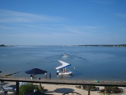 Best Bayfront with 100 ft. of private Sandy Beach in Hampton Bays! Spectacular views and sunsets all year long. Second floor gourmet kitchen, spacious living and dining rooms, master suite, all overlook Tiana Bay. Second guest room and bath also on upper level. Two story layout provides privacy for family and guests, with 2 bedrooms, den, bath and partial kitchen on first floor.
