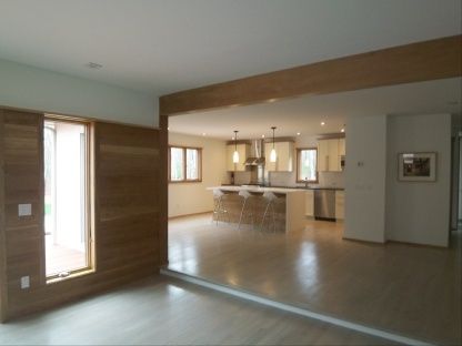 This home will stop you in your tracks...bright, open and well designed this modern contemporary has three bedrooms and two and a half baths. Built by Joseph Quinn, of Aran construction this home was designed with an open floor plan to maximize space and allow for comfortable living and entertaining. The gourmet cooks kitchen flows into the dining room to den and then finishes in the formal living room with stacked stone fireplace. The wall o