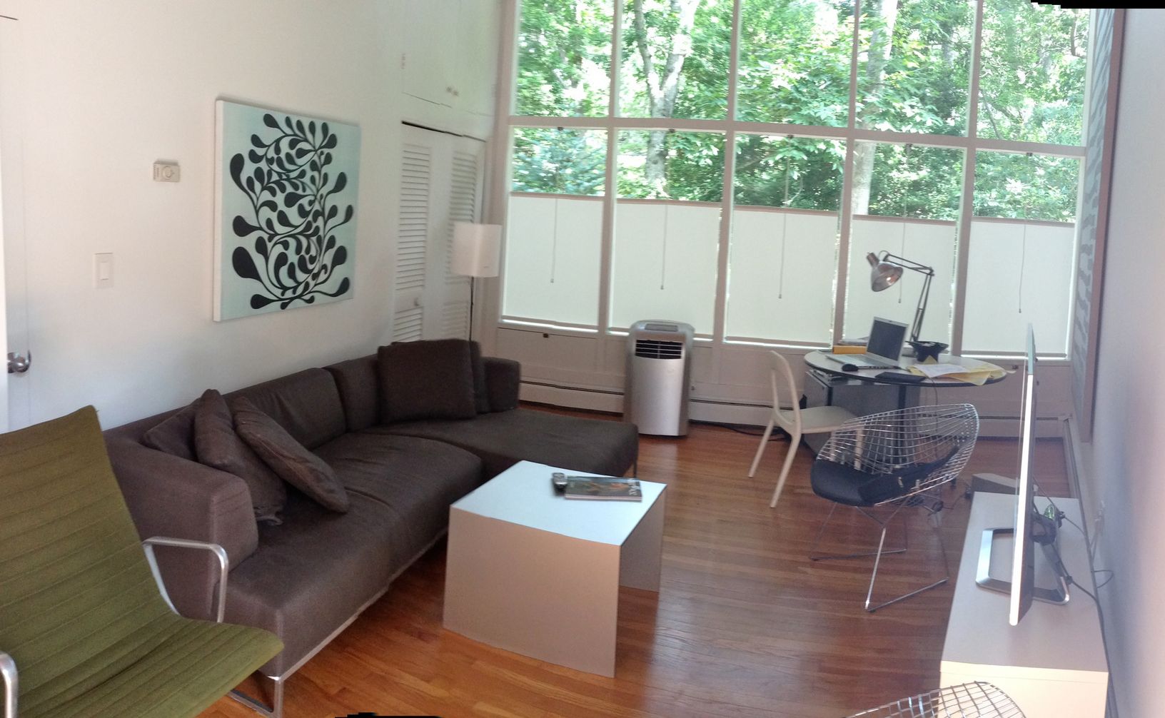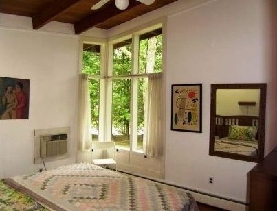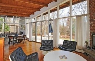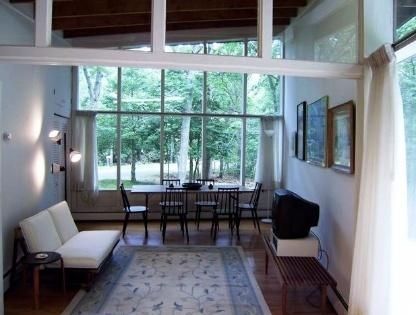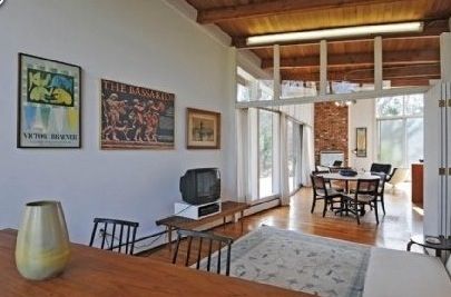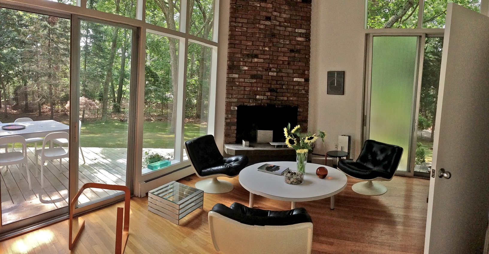 Located in a historic Springs neighborhood nearby beautiful Accabonac Harbor is this unique home with an open, airy interior with wonderful light. Also known as the Butterfly House, this is an unspoiled 1964 Mid-Century Modern Custom Architecture of geometric angles & glass by renowned architect Henry T. Howard. Featuring 3 bedrooms (one has a foldable wall which connects to the great room, originally designed to be an artist's studio), an