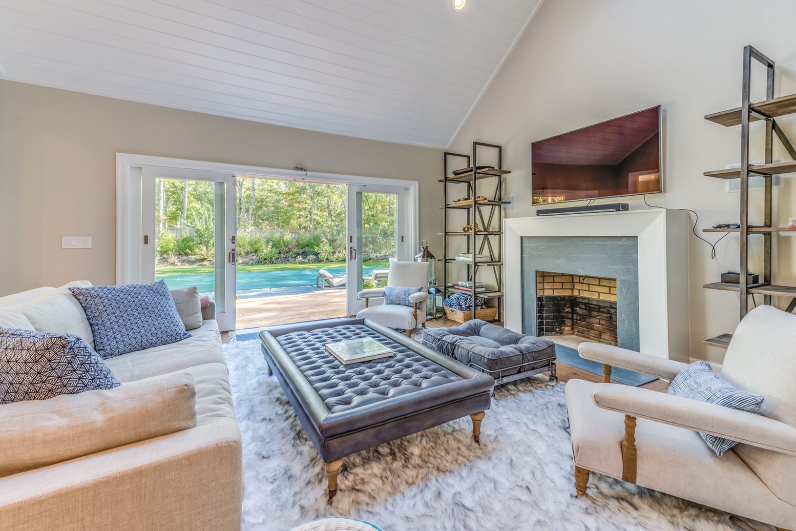 Move right in to this perfectly renovated four bedroom, four bath retreat where every wish on your list has already been granted. Within the home, each room is bathed in sunshine, from the double height entry hall through the open plan entertaining areas, brand new high-end kitchen, commodious bedrooms and carefully considered marble baths. Relax by the fire in the comfort of your smart home, equipped with a multi-room wireless Sonos system, l