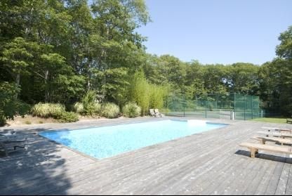 Five-bedroom house enjoys a prime location on a private residential lane, yet is conveniently close to ocean beaches and Southampton Village. The beautifully- landscaped 1.50 acre property holds a two-car garage, swimming pool, tennis court and extensive decking. The bright interior features a living room with fireplace and vaulted ceiling, dining area and lovely kitchen. Notables include a first floor master suite with fireplace and sun deck,