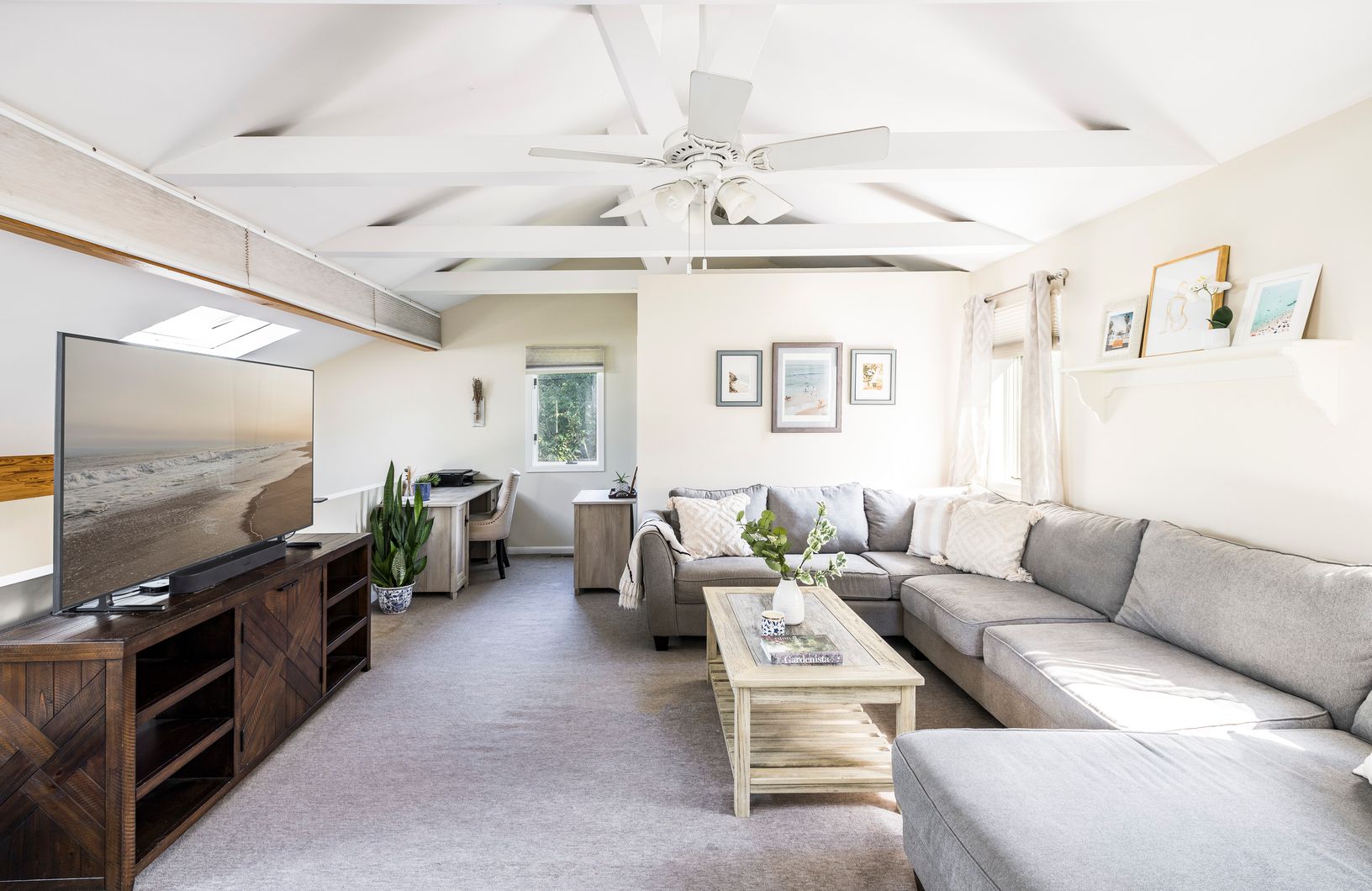 Located in the sought-after waterside community of North Sea Harbor lies this charming and well-maintained 2/3 bedroom, 2 bathroom home. This inviting home boasts high ceilings, a bright and airy open layout, and deeded bay access, creating the perfect blend of relaxation and waterside living. The large upstairs loft with a full bathroom offers fantastic multi-purpose space and can easily be configured as a 3rd bedroom. Other features and upda