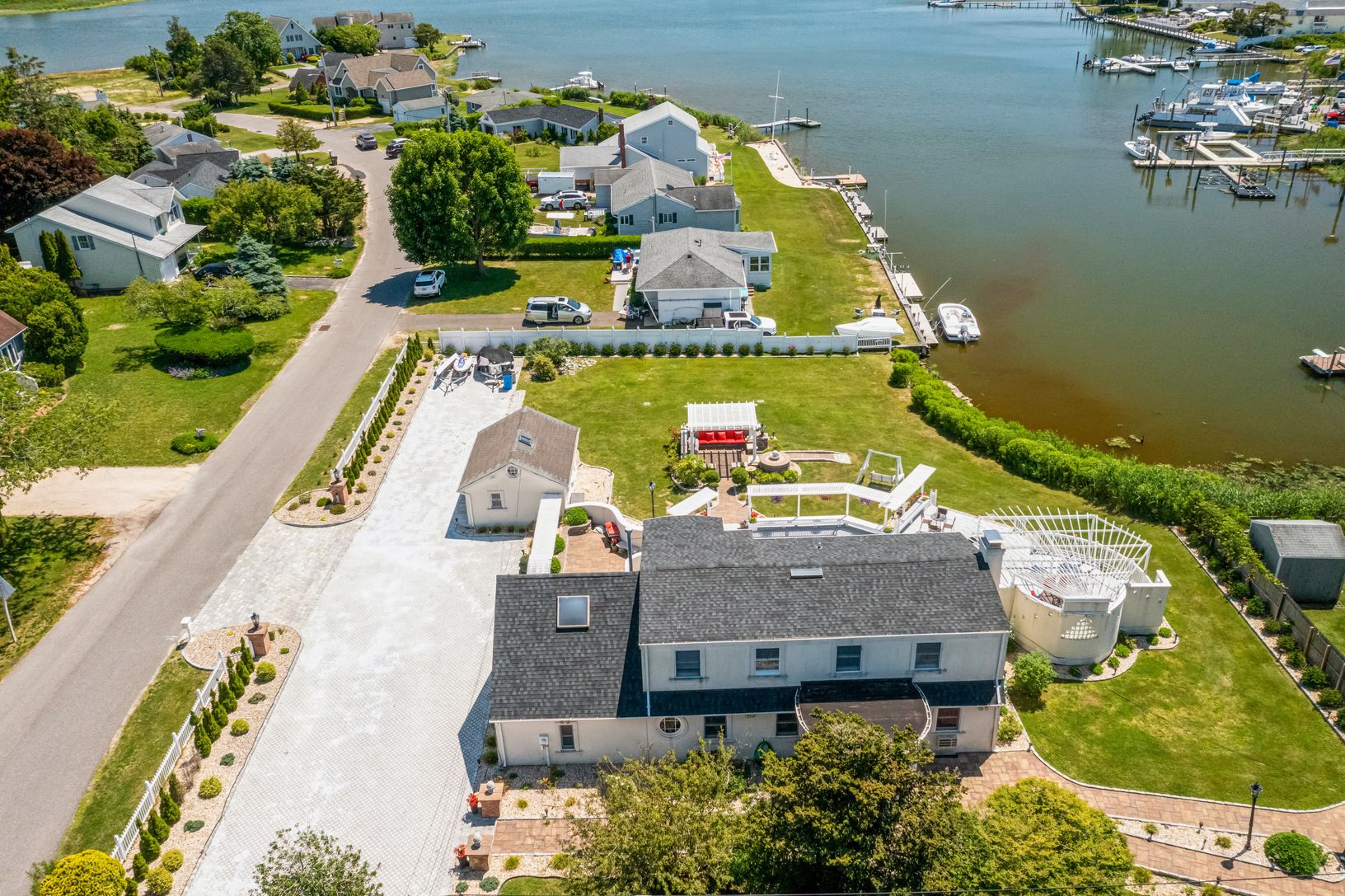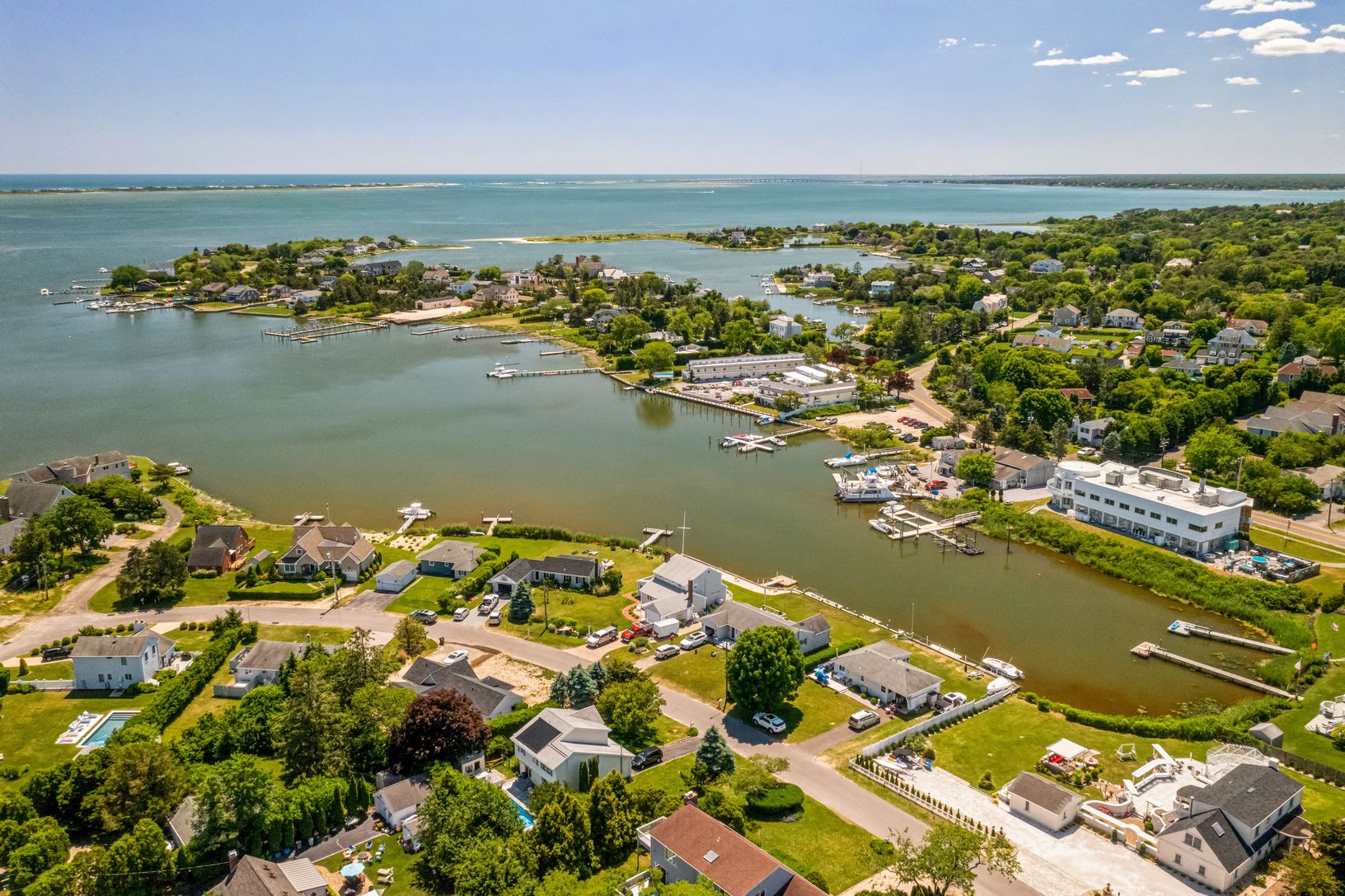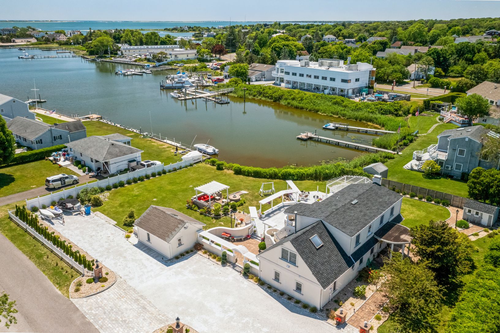Opportunity abounds with this waterfront 4-bedroom, 3-bathroom, approximately 2,400SF home on a large corner lot in Southampton. Panoramic views of Shinnecock Bay, low taxes and potential to add a dock are just a few of its intriguing features. The stone paved driveway is big enough for multiple cars and boats. A pergola and deck off the back of the house with built-in bench seating and lounging areas provide abundant outdoor living space and