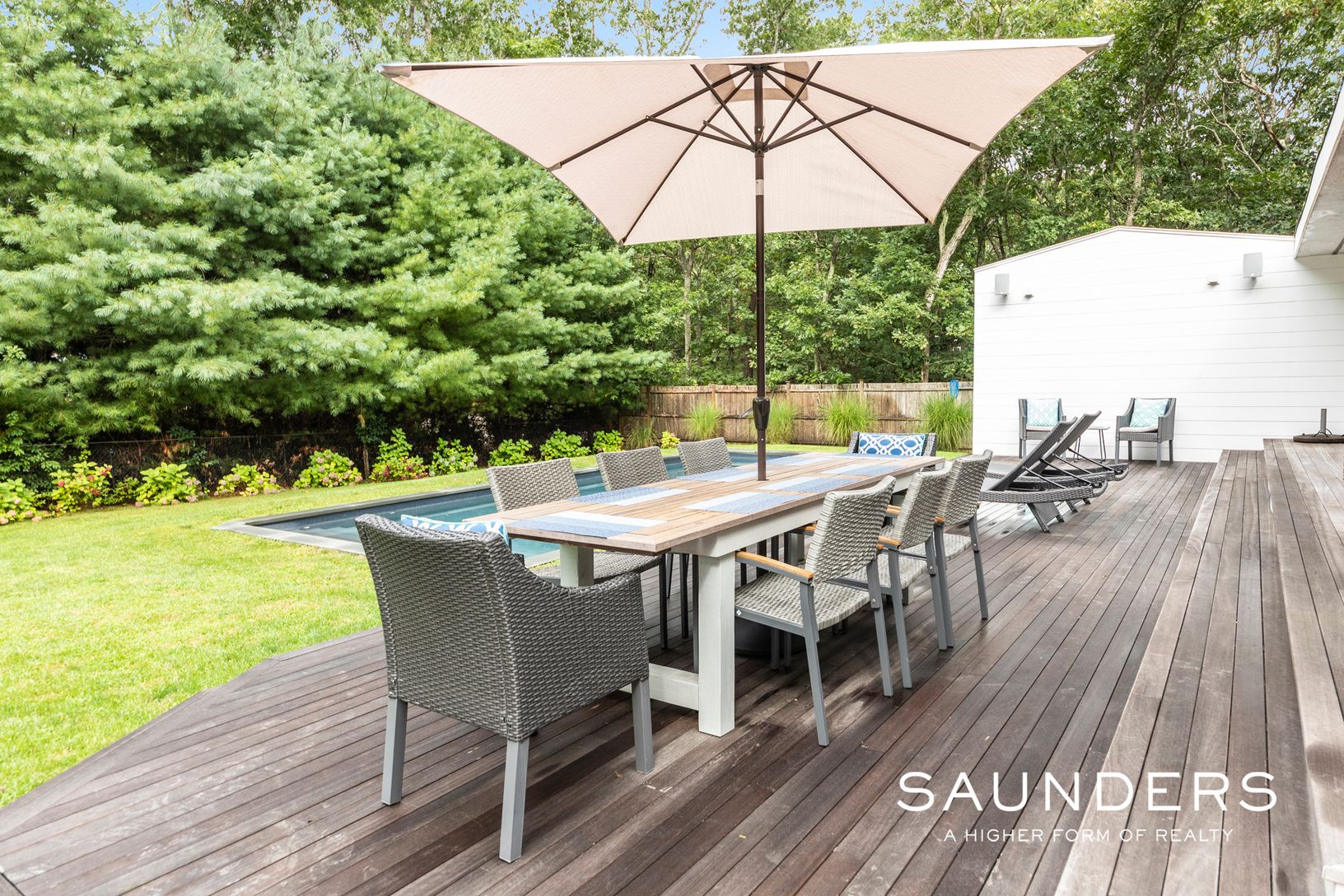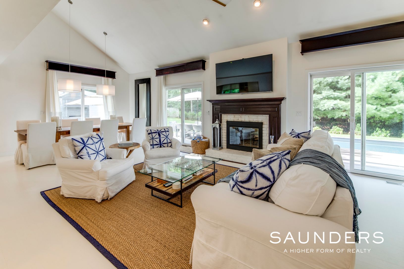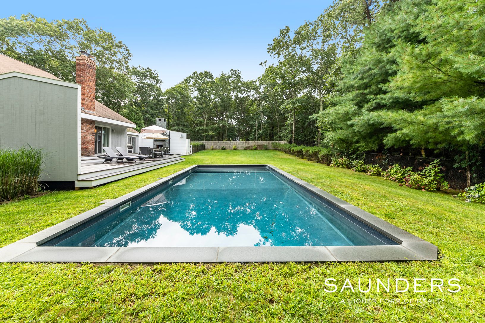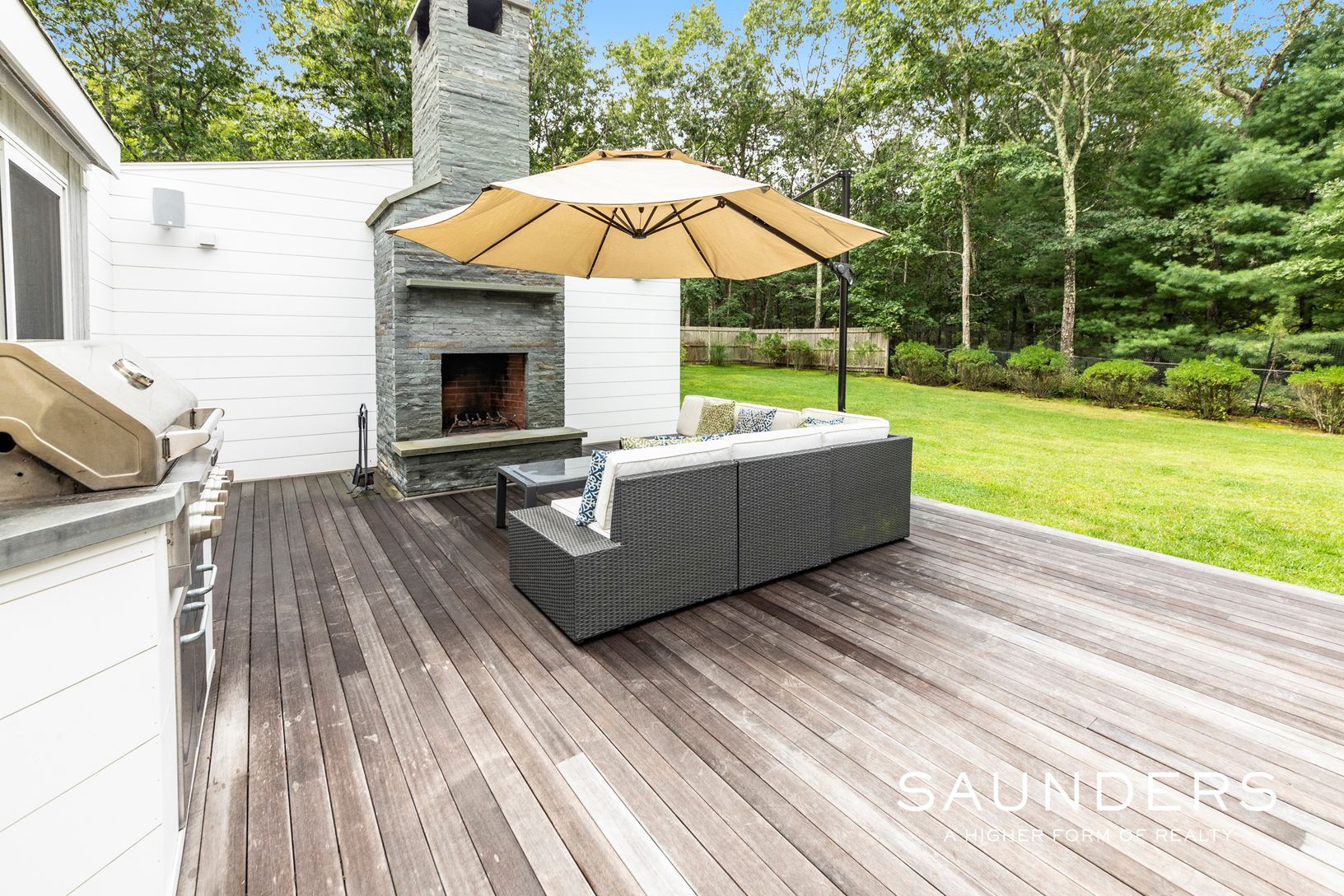 This Beautiful Renovated Home is in the ideal location, nestled just four minutes from Sag Harbor & East Hampton village, just 10 minute from the ocean beaches & five minutes to the golf course. This Home Features 4 Beds, 2.5 Baths, Open Floor Plan, Lr/Dr, Professional Gourmet Kitchen with Subzero appliances & Bertazonni Range. The exterior features a Heated Saltwater Pool, Custom Outdoor Fireplace, sitting area around the built i