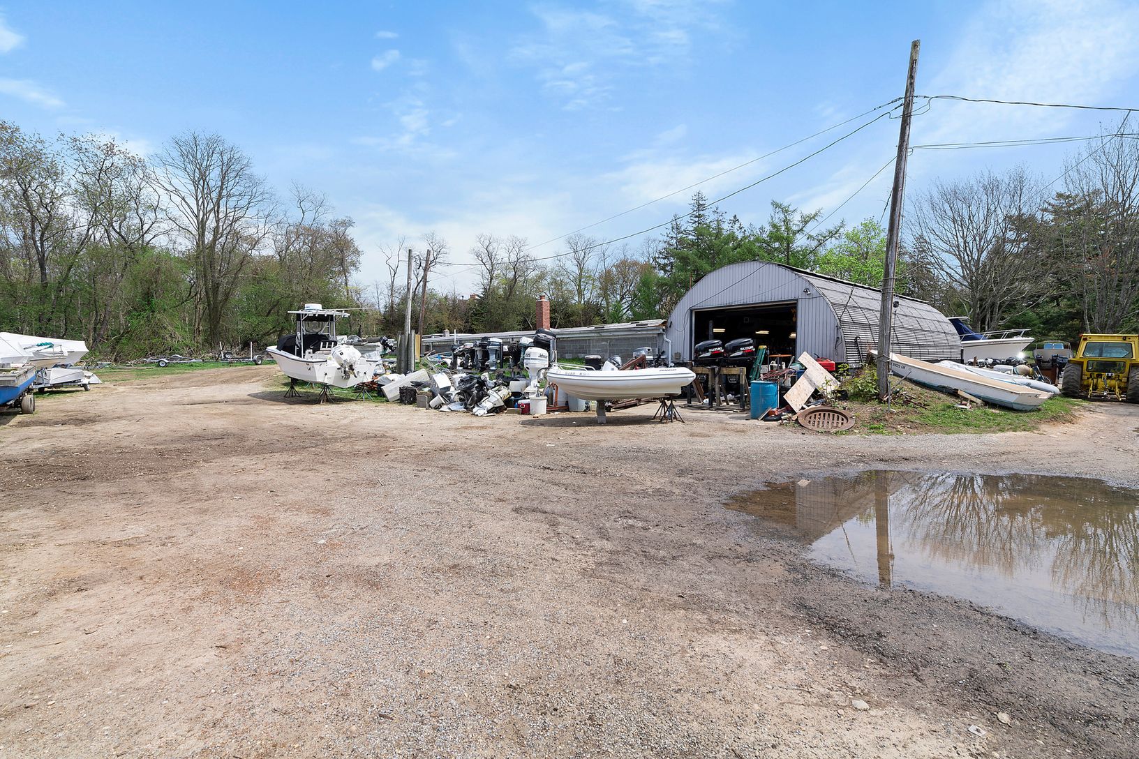 This industrial space available for sale sits on 3.66 acres of land, features a 5500 square foot building with multiple bays for use. Currently the property houses a marine mechanic, artist gallery, and an artist studio combined with a work shop.