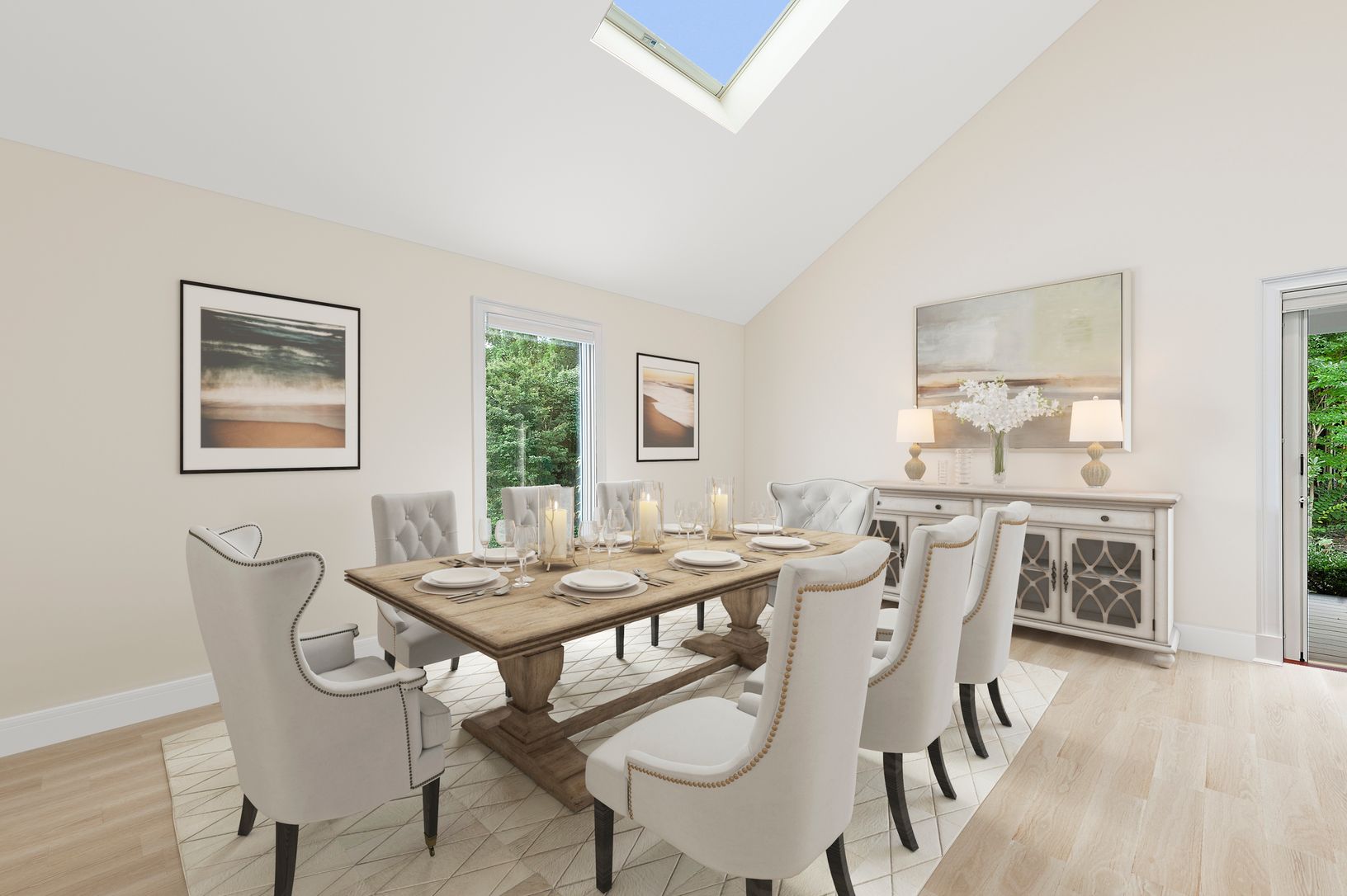 Classic East Hampton saltbox converted and expanded for modern living is steps away from East Hampton Village shops, restaurants and schools. The totally fenced property has an electric driveway gate and extensive gardens. This four bedroom, 4 1/2 bath house has a junior suite with separate entrance on first floor as well a primary suite with walk-in-closet and second guest suite on the second floor. Recent upgrades include a cedar shake roof,