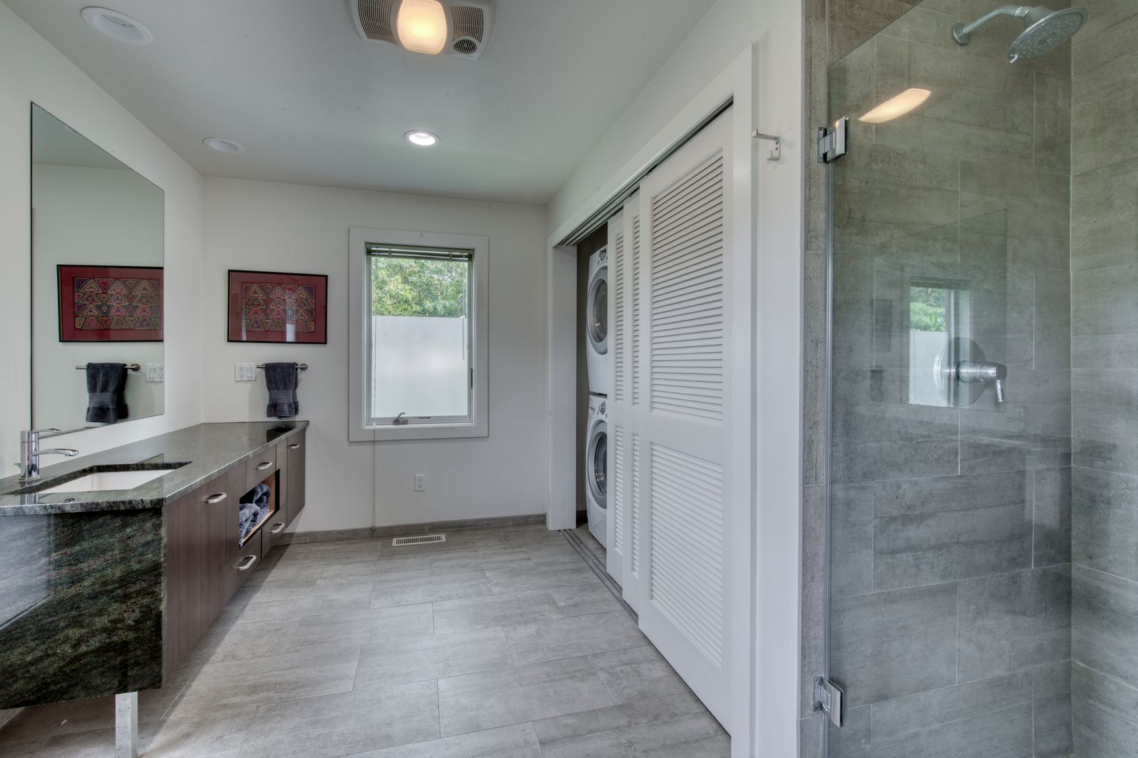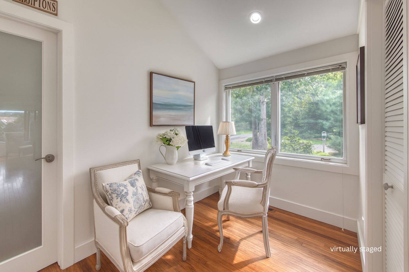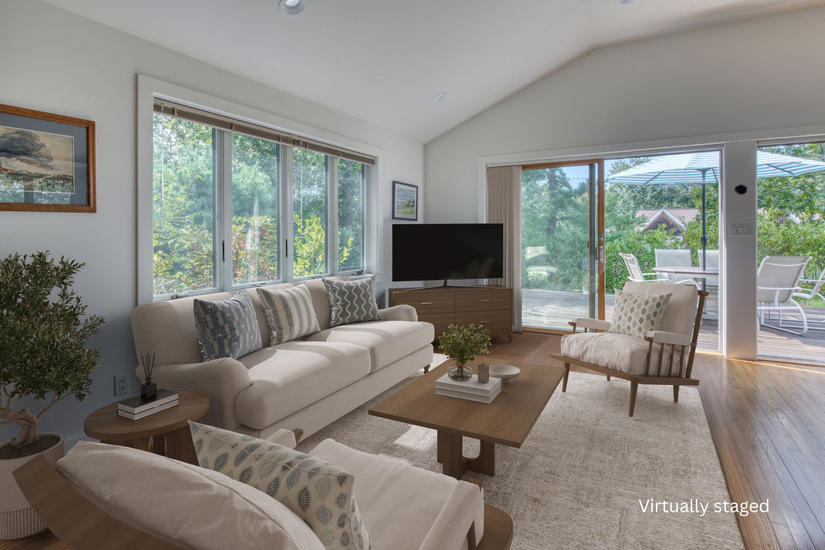 Experience life at the pinnacle of serenity at 1 Sammys Beach Road. Recently renovated and designed by an architect, this stunning 2-bedroom, 2-bathroom home with a versatile extra space is a masterpiece of modern living. With soaring 10-foot ceilings and abundant custom built-ins, the interior is both functional and stylish. The home is bathed in natural light and offers partial Bay views in the summer, transforming into full Bay views in the