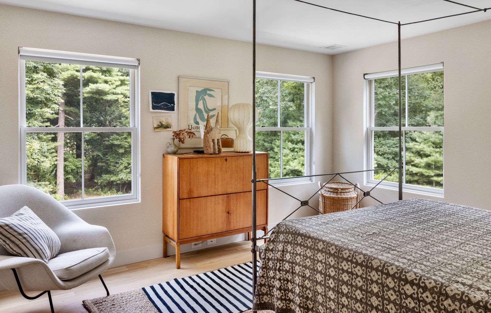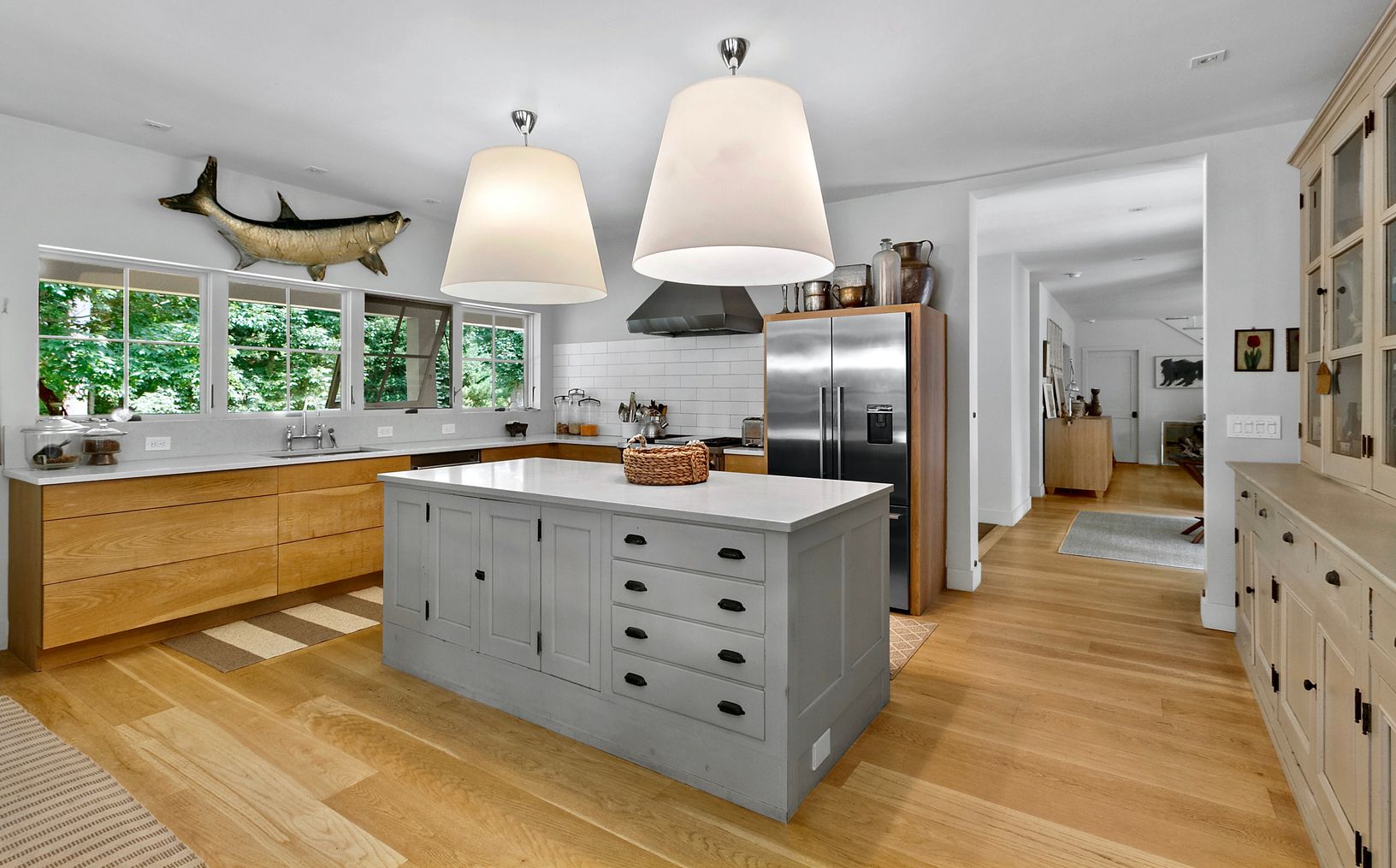 Just featured in ELLE DECOR, a modern take on a shingle-style beach house, located 500 feet from a sandy bay beach with western sunsets and winter water views, this spacious house was constructed in 2015 by the designer/owner. The property is set on 1.9 acres and surrounded on three sides by reserve with access to trails in the Grace Estate. The light-filled, approx. 4,000sf home has 5 bedrooms with 5 full baths. The private master wing has an