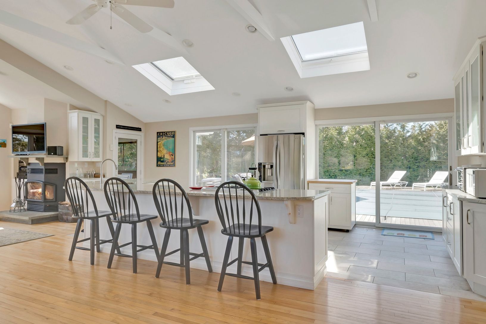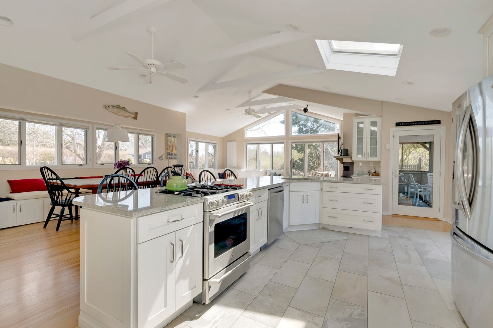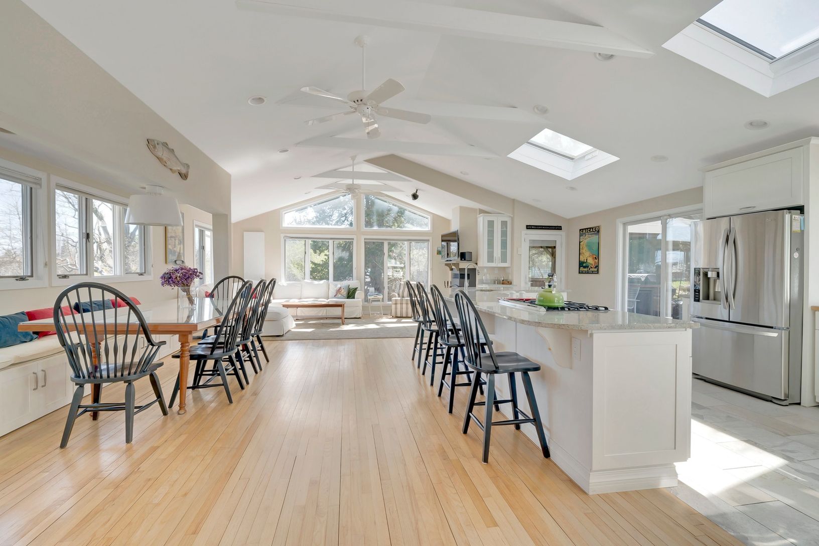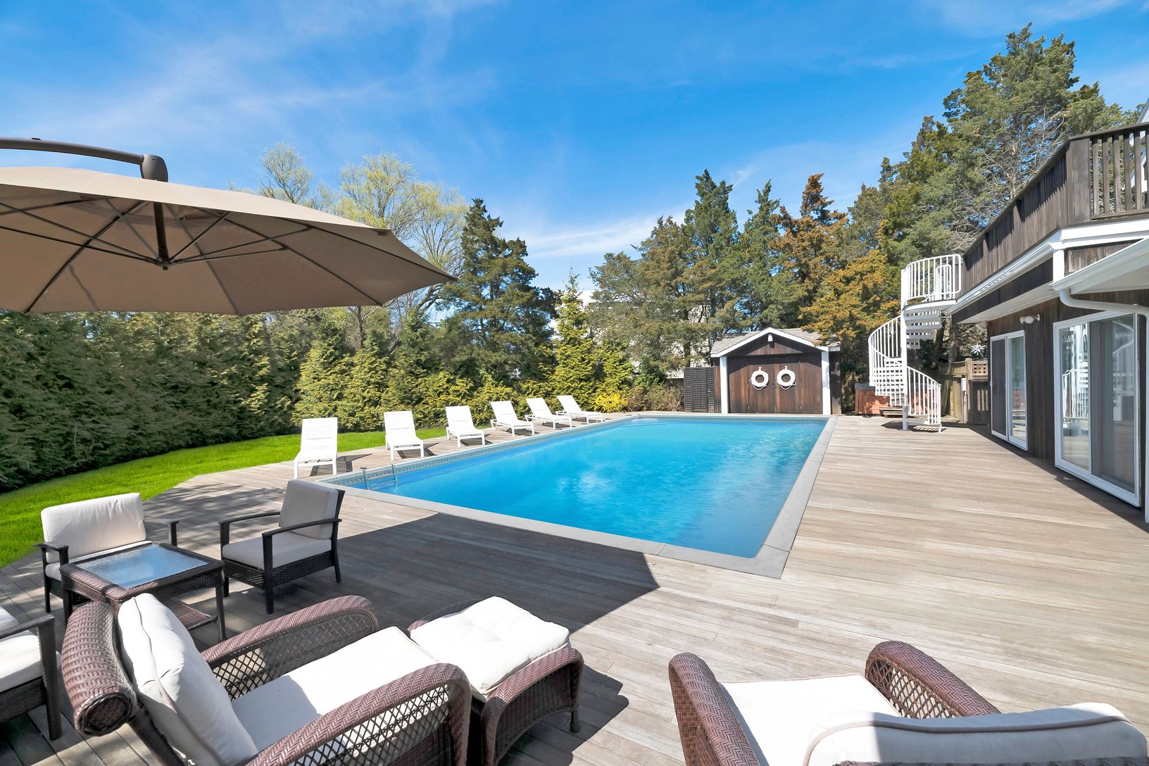 Down by the bay, this inviting home is ready to be yours, just in time for Summer! Bright, cheery and most welcoming, the open floor plan extends its living space to the West facing deck, in ground pool and rear yard. A fully screened sun porch is ideal for any early morning coffee or quiet area to read. Three bedrooms on first floor include a Junior Master en suite. The upstairs Master en suite enjoys its own veranda along with a sitting room