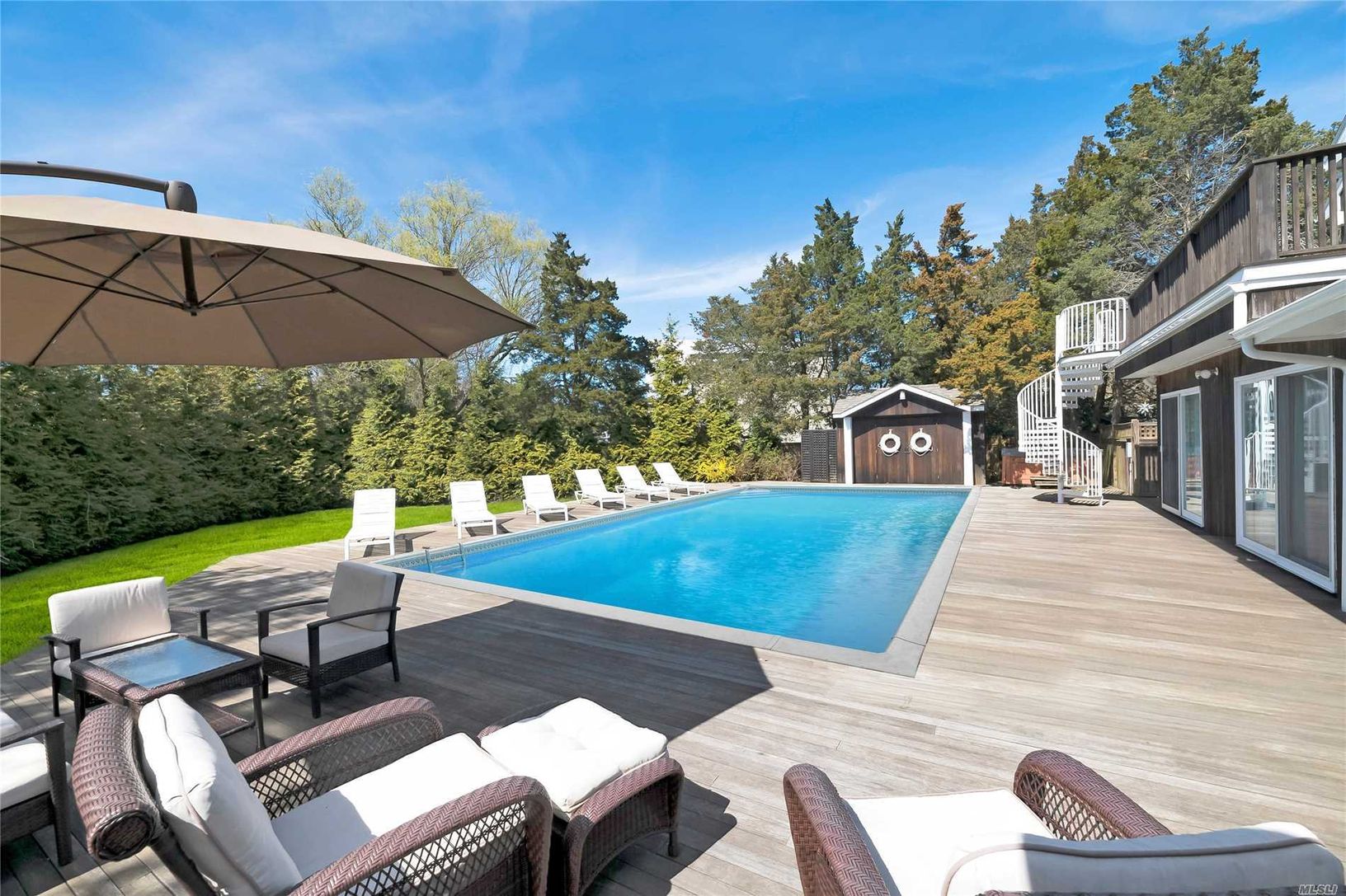 Sunlight fills this bright and cheery home featuring high ceilings, an open concept living area with a full wall of windows, dining area with ample seating and kitchen with stainless steel appliances. The main level boasts 3 bedrooms (1 en suite) and 2 bathrooms. The second level welcomes you to a massive master suite and veranda with access to the deck overlooking the pool. Outdoors, relax or entertain by the in ground pool and spa. Located m