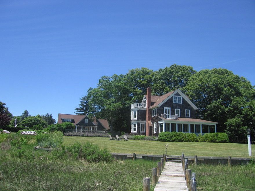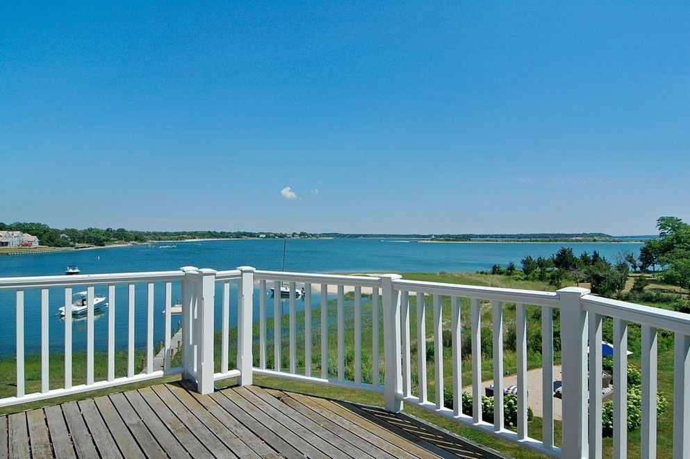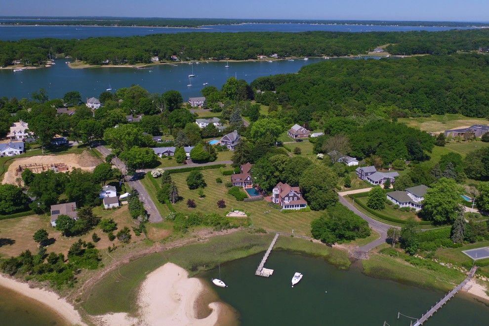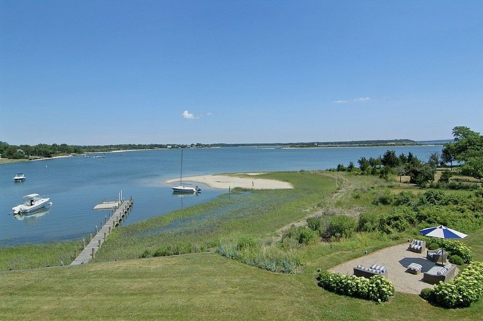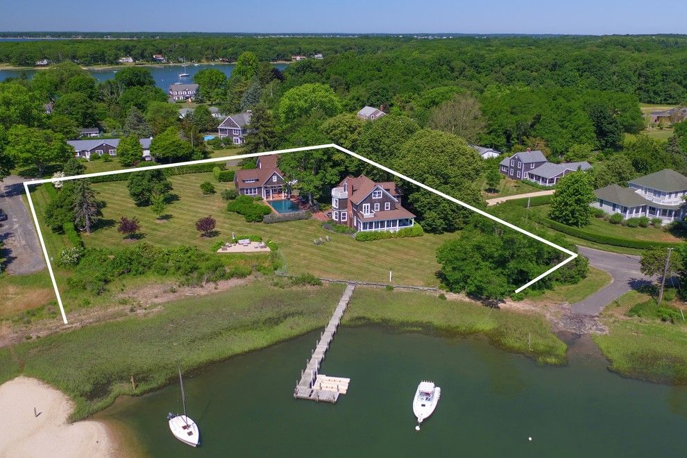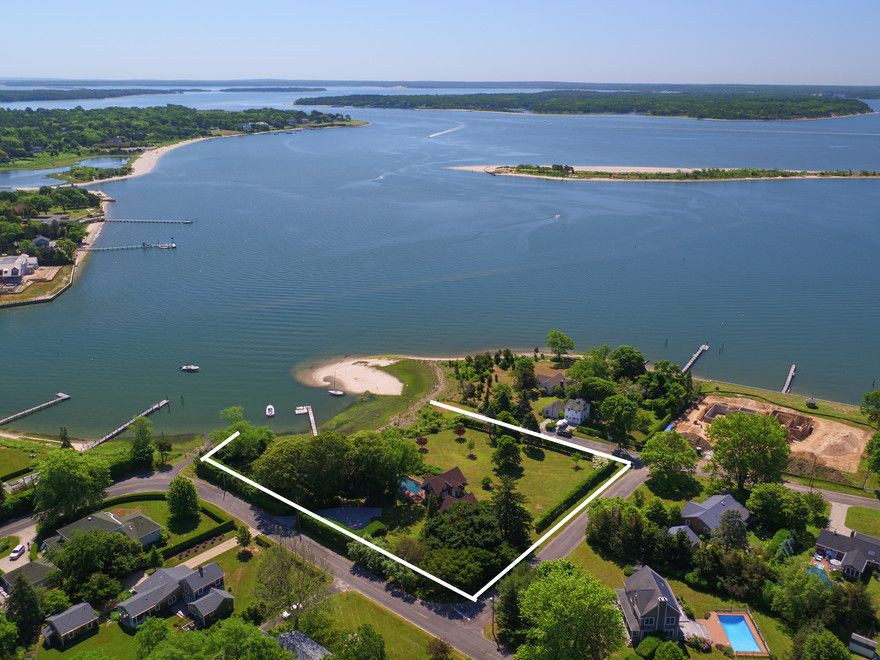 Nestled behind tall privet hedges and mature specimen trees is this classic restored 1888 shingle style farmhouse located in Montclair Colony on protected West Neck Harbor. Featuring dramatic water views from nearly every room, the living room, which also has a fireplace, includes a wall of French doors opening to a seaside screened porch, with views of the beach, dock and water. A formal dining room is immediately adjacent, along with a cozy