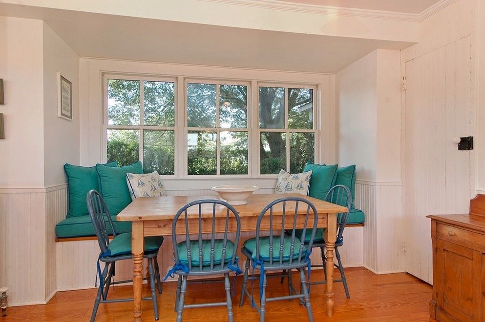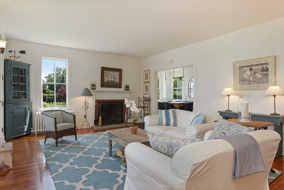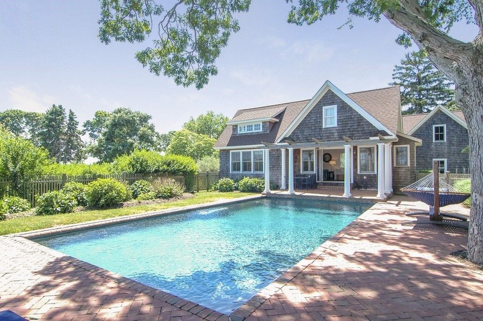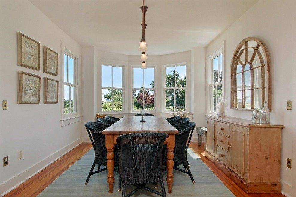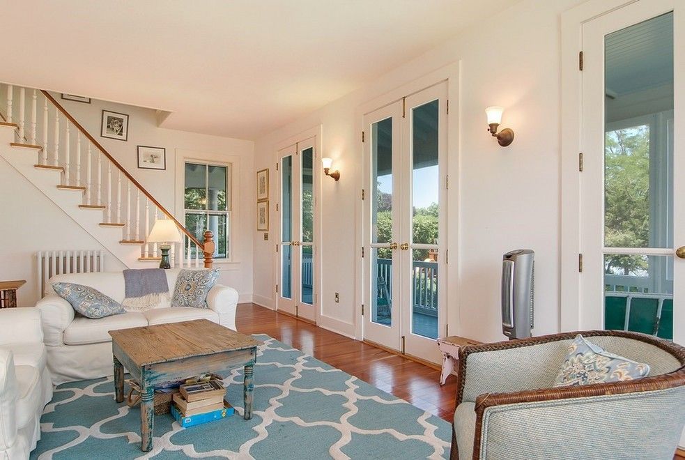 Nestled behind tall privet hedges and mature specimen trees is this classic restored 1888 shingle style farmhouse located in Montclair Colony on protected West Neck Harbor. Featuring dramatic water views from nearly every room, the living room, which also has a fireplace, includes a wall of French doors opening to a seaside screened porch, with views of the beach, dock and water. A formal dining room is immediately adjacent, along with a cozy