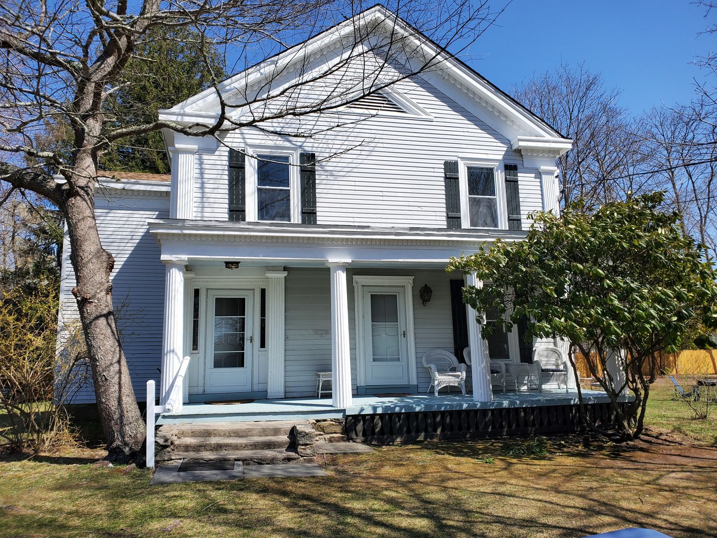 Beautiful 1810 Greek Revival situated on large corner lot shy 1 acre. Makes a fabulous 2 family home with 3 living rooms, 2 kitchens, 5 bedrooms, 3 full bath and screened in porch. Could also be a charming Bed and Breakfast. One of the few houses built by Gabriel Crook in the early 1800's. Great rental property. Numerous business opportunities. Room for a pool and cottage.