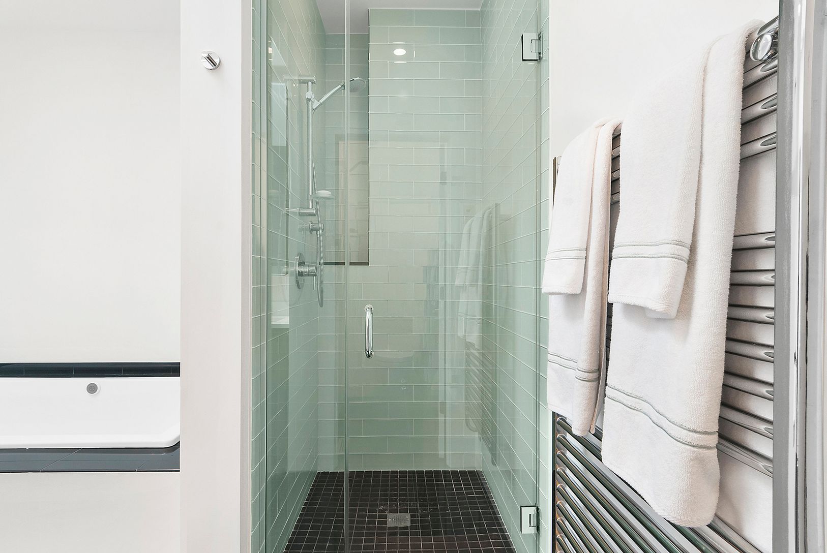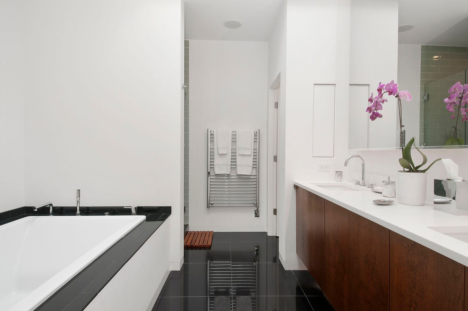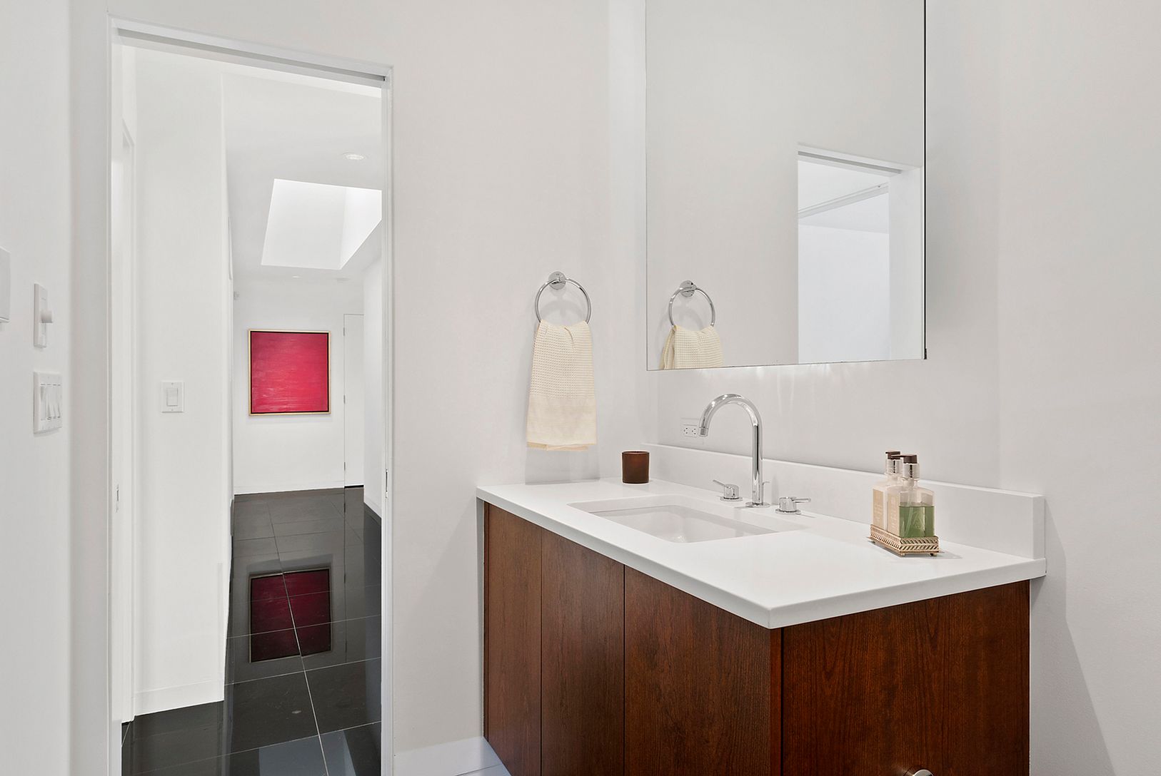 This much desired but rarely available one level layout lives like a spacious single-family home. The 2,200 sf main level includes 3 bedrooms, 2 1/2 baths and was recently renovated with state-of-the-art amenities and custom finishes. High ceilings, wall to wall windows and numerous skylights ba