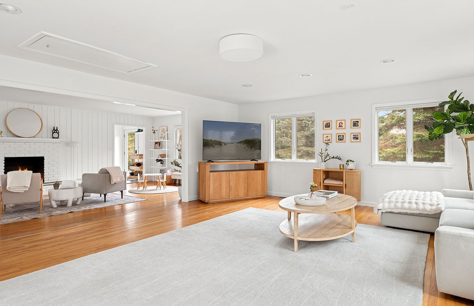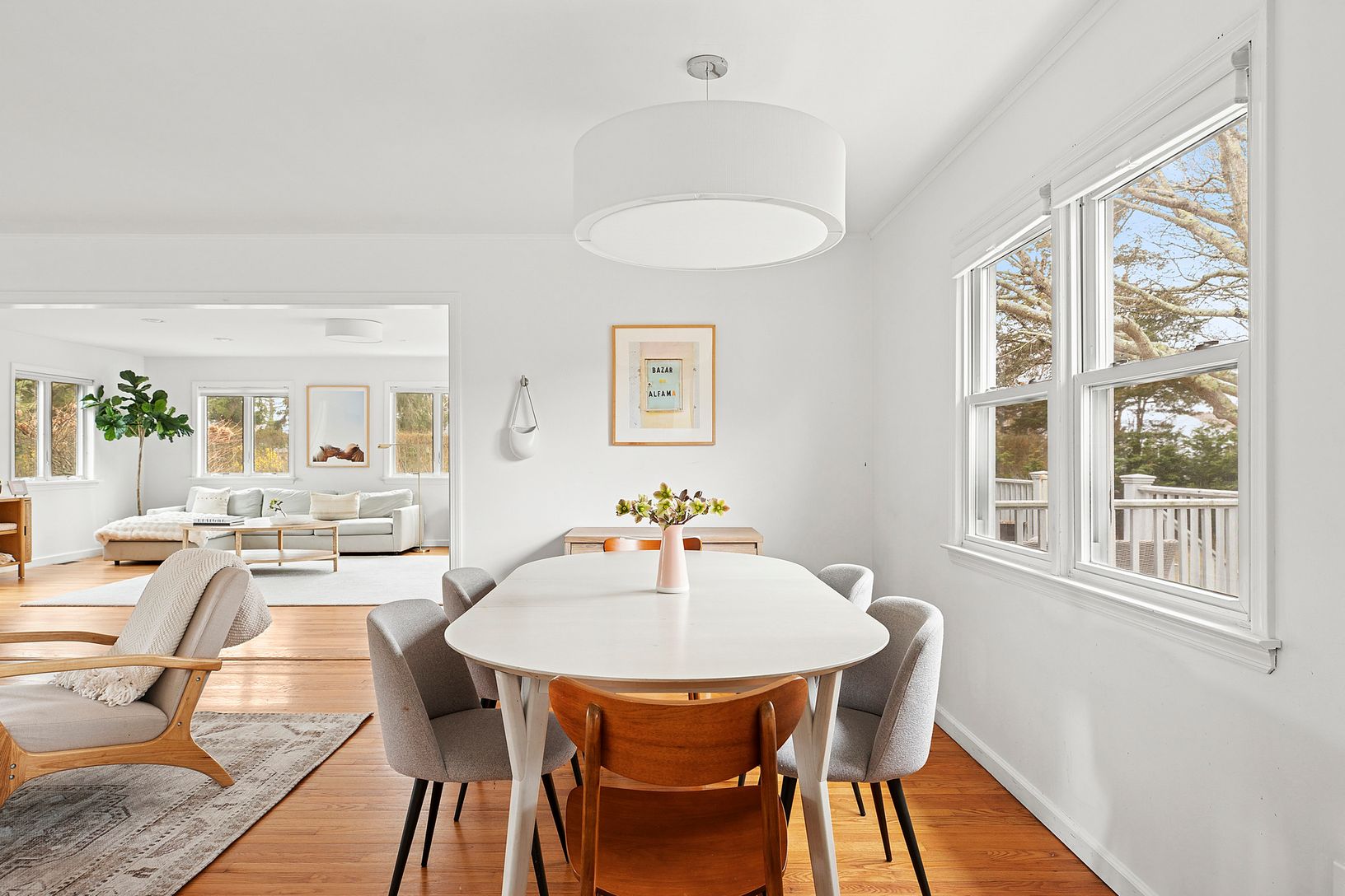 This home embodies the essence of Shelter Island living, seamlessly combining historic charm with modern luxury. With almost 2,000 sq. ft. of living space, this spacious and sun-filled home offers the best quality design, featuring expansive living areas, 3 bedrooms, and 2 baths. Enter through the elegant foyer into the open floor plan, where you'll find the main living spaces, including a great room with a fireplace and a sunroom and stunning