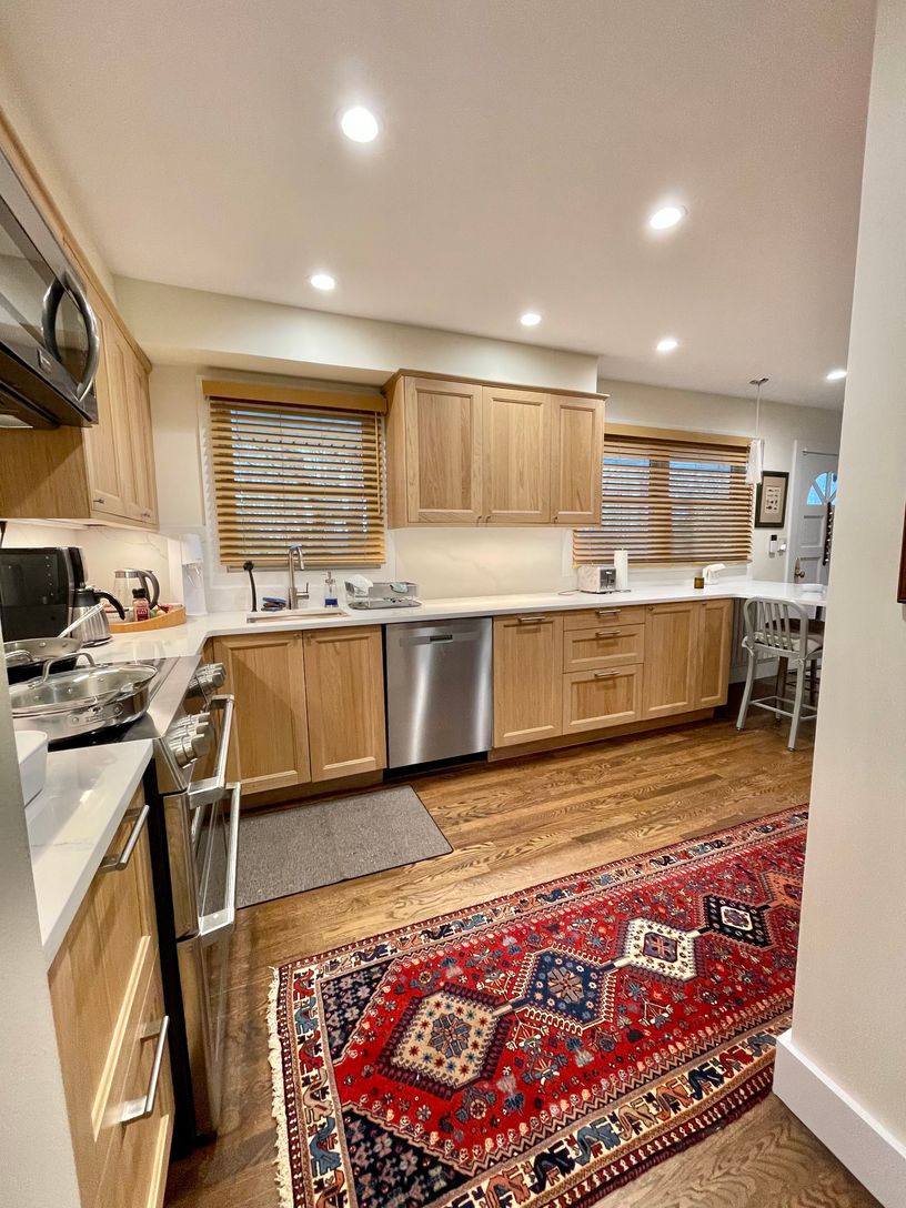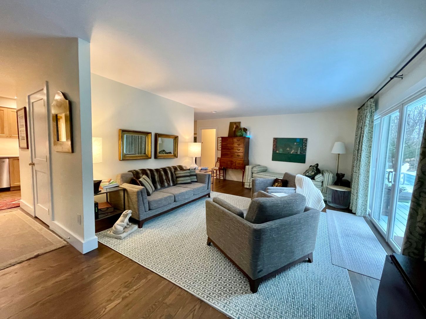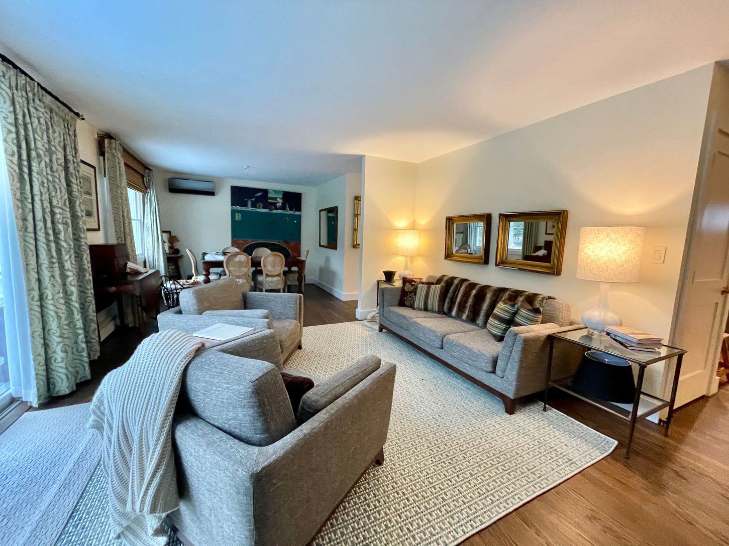 A true summer oasis located minutes from Menhaden Beach. This 4 bedroom 2.5 bath has been recently renovated and refurnished. New windows, doors and floors. New eat-in kitchen with stainless steel appliances, new furniture/linens and new first floor bathroom with large walk-in shower. In addition to the main living room, there is a family room/den with fireplace, and a billiard room in the basement. The resurfaced tennis court, large fenc