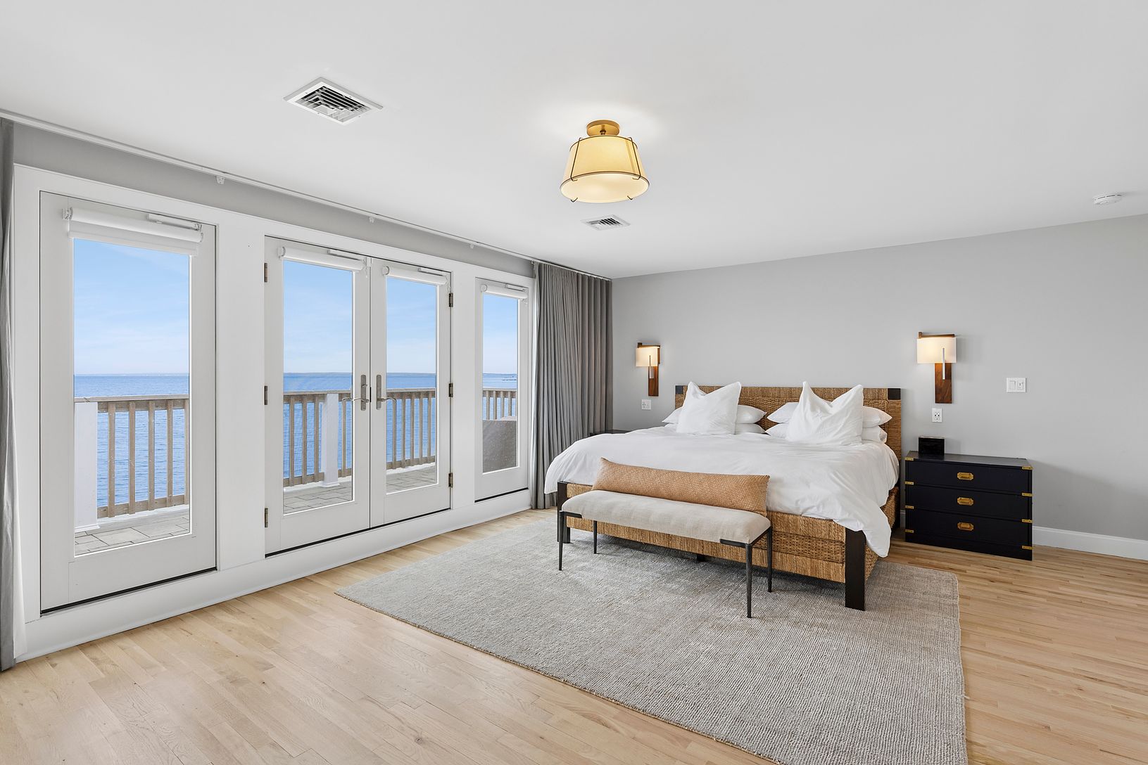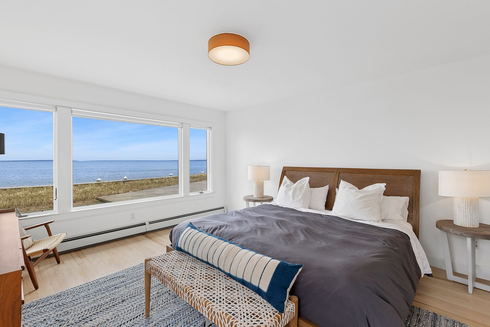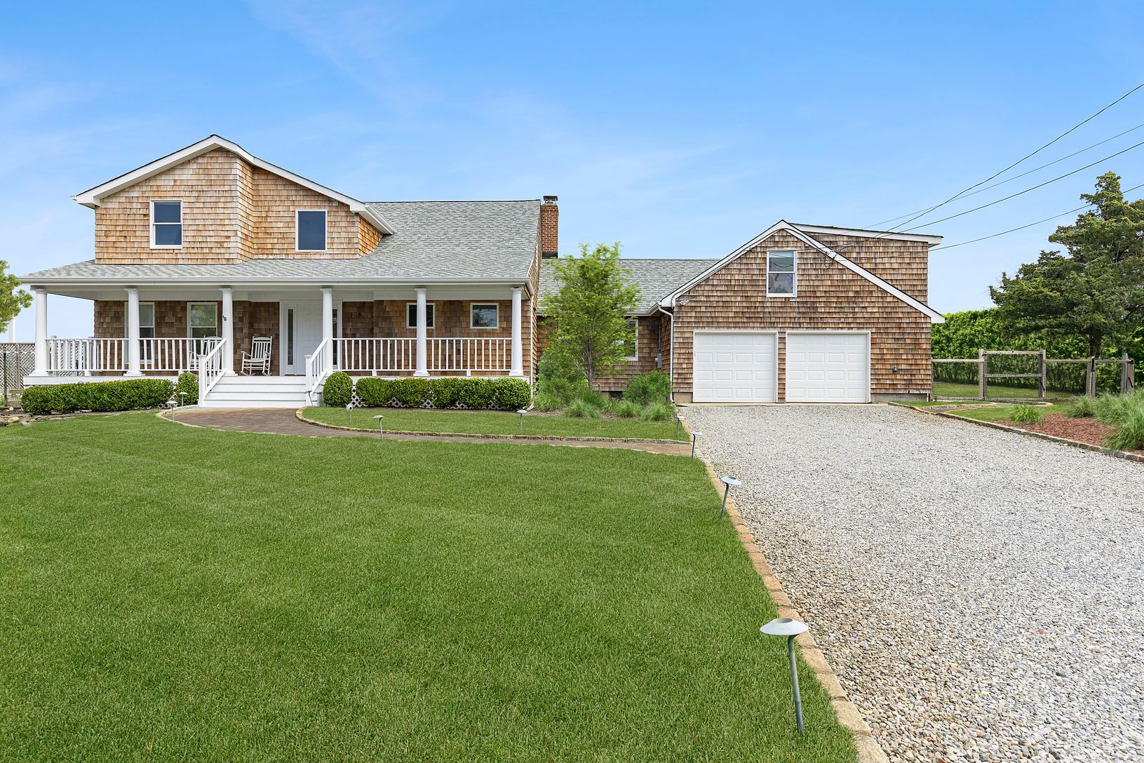 Recently expanded and renovated with a fresh, modern coastal aesthetic by Hyphen & Co., this charming Cape Cod beach house with breathtaking views of the Peconic Bay that span to Robin's Island can be your Hampton's escape! With approx. 120 feet of bulkheading and a sprawling private sandy beach below, this 4-bedroom, 5-bath waterfront home in a private community, is the perfect summer get-away for those looking for an elegant and secluded