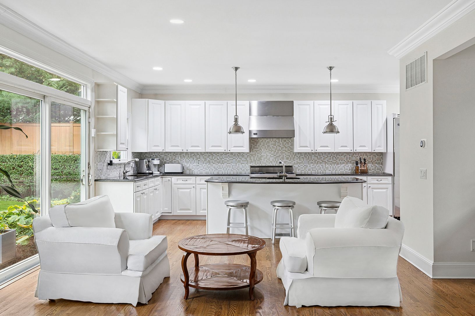 Beautiful minimalist and sleek design with open floor plan. Four En-Suite Bedrooms all on second floor with tall ceilings. Peconic Bay Beach only one block, 500 feet +- with deeded mooring rights. Community has private neighborhood beaches for swimming, paddle boarding, kayaking, mooring and boat launch. As you drive up this quiet street to this charming village styled hedged residence you welcomed by a circular driveway and greeted by the ch