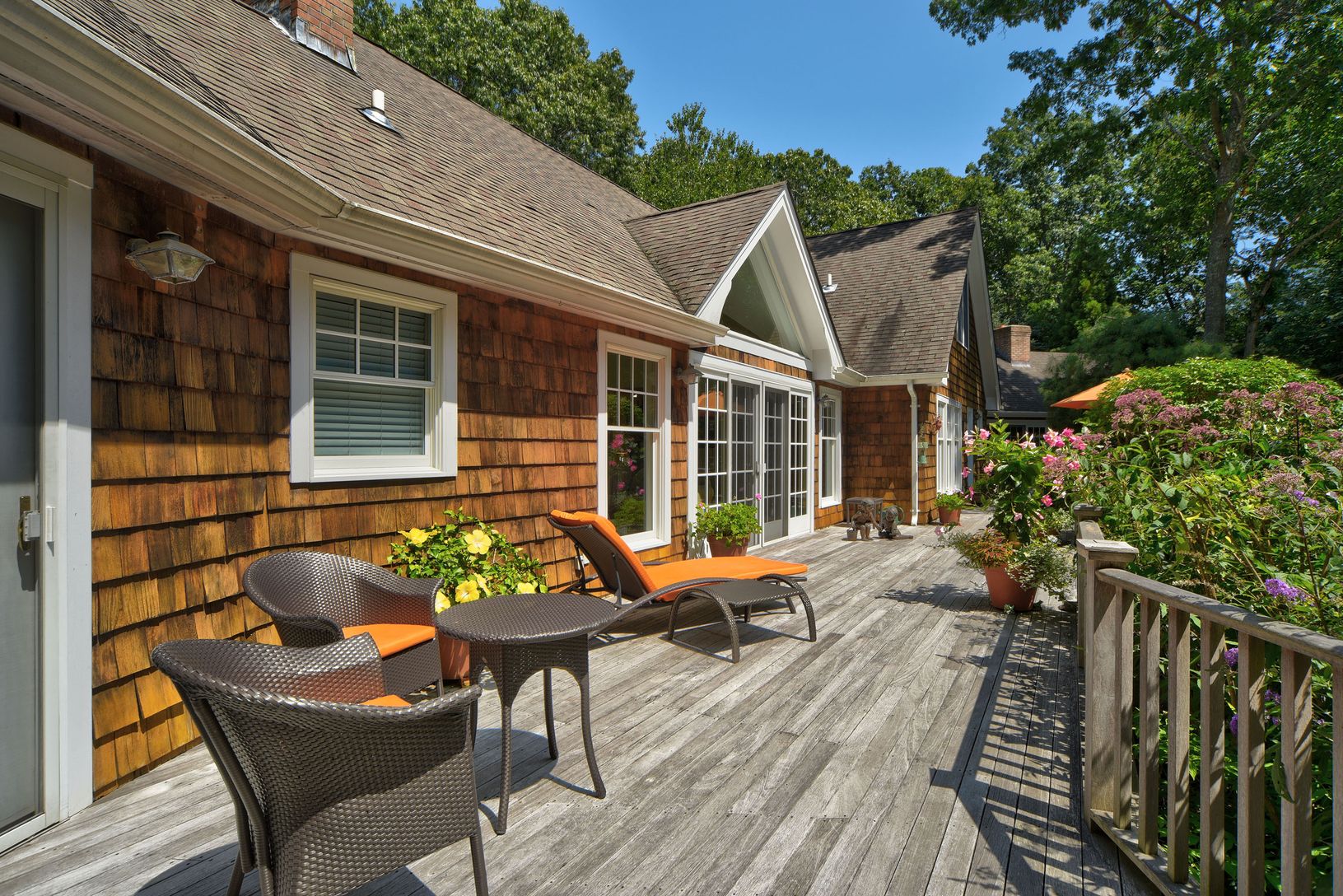 Just a short distance from beach access on Gardiners Bay, this sprawling traditional comes to market on a quiet country cul-de-sac embraced by a beautifully landscaped 2-acre parcel. A gated entry welcomes all into a sylvan sanctuary that shelters this meticulously maintained 4,200 SF residence as a gracious entry ushers you over richly stained oak floors that fan out to include living room with fireplace under cathedral ceilings and an adjoin