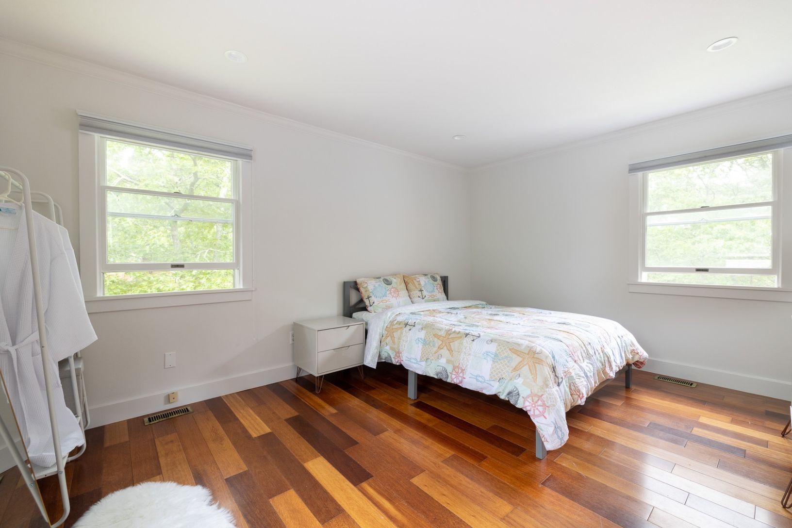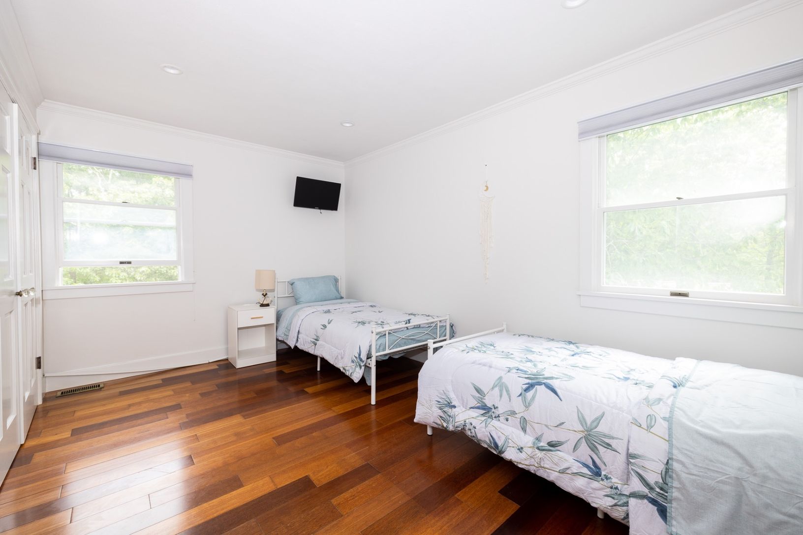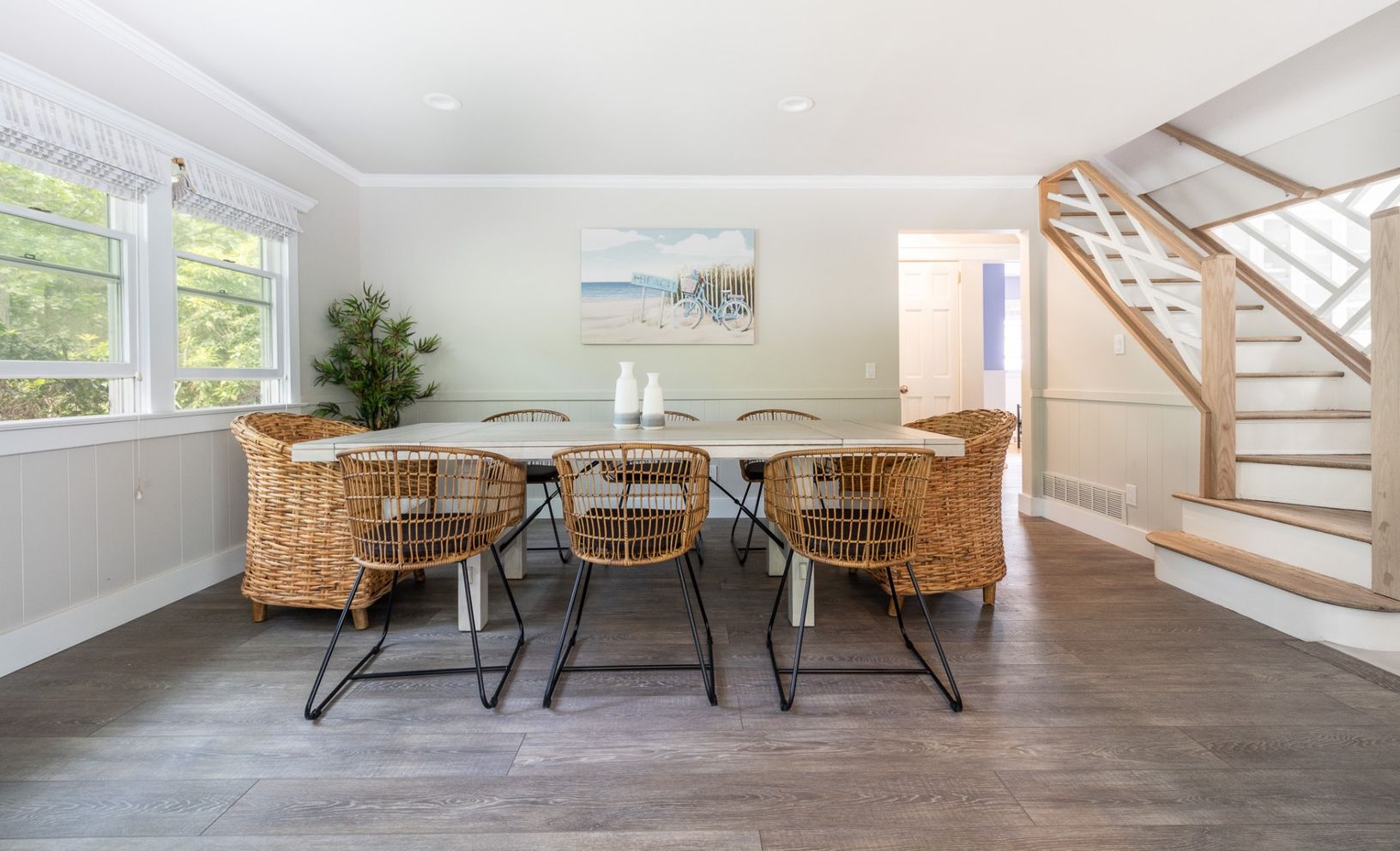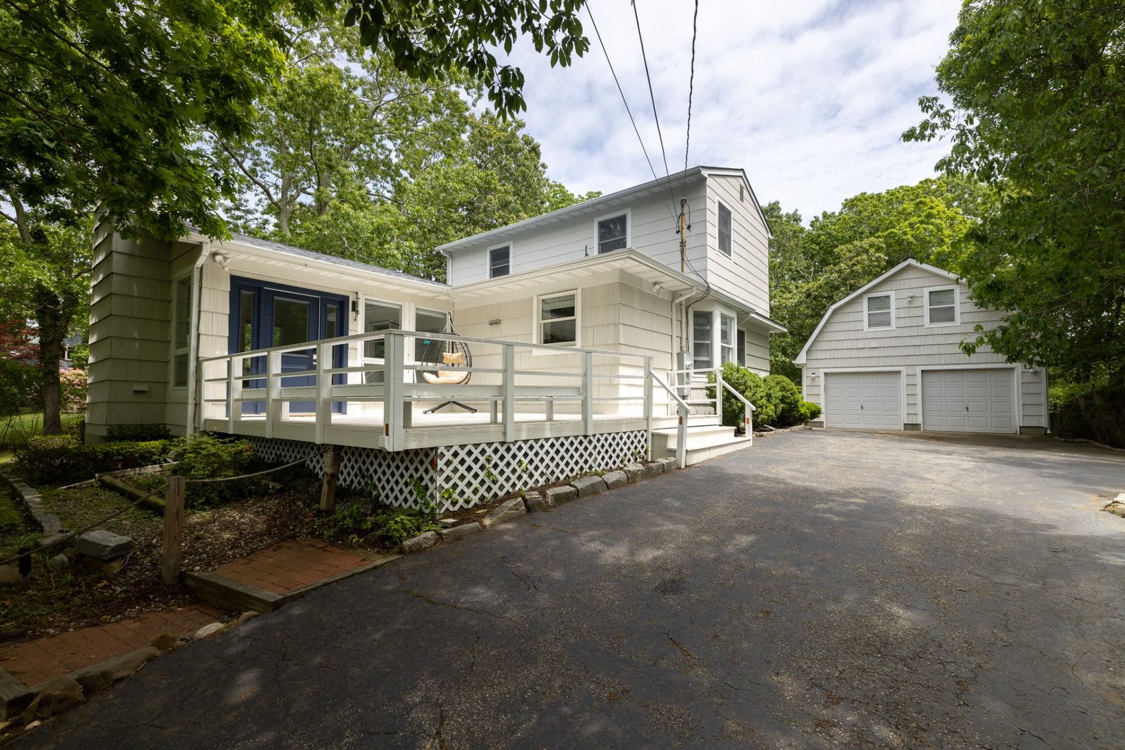 Enjoy this newly renovated Hampton Bays property just a few blocks to East Landing Beach. This four-bedroom, 2 full bath home offers a chic interior design with custom kitchen, and stainless-steel appliances adjacent to the open dining area. The large great room with vaulted ceilings and fireplace opens to the expansive deck overlooking your grounds. The first level has 2 spacious bedrooms and full bath. The second level has a full bath and tw