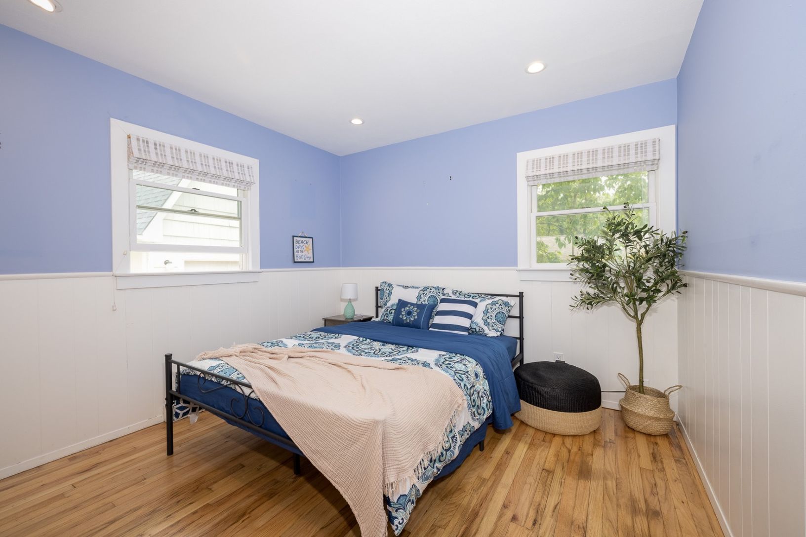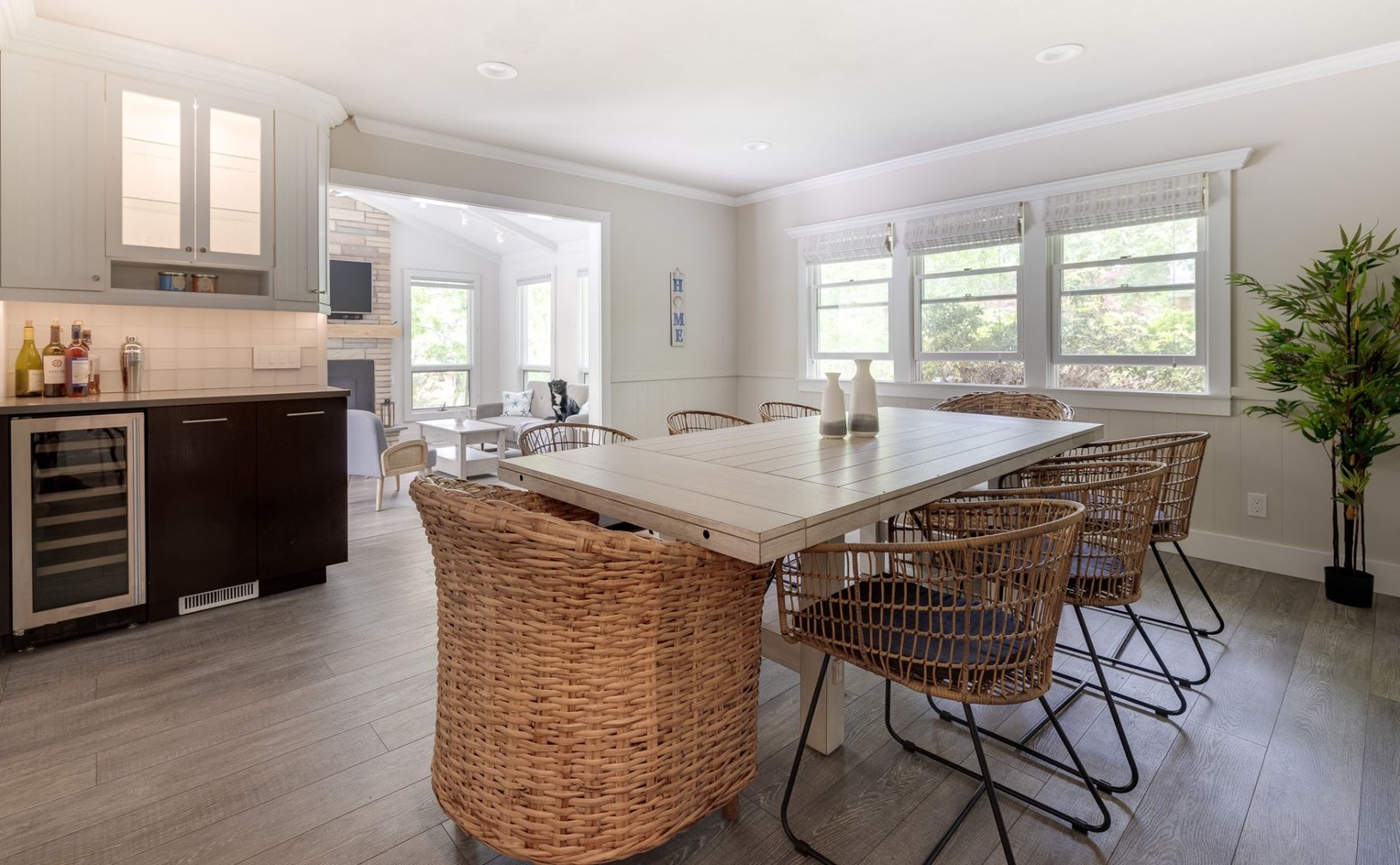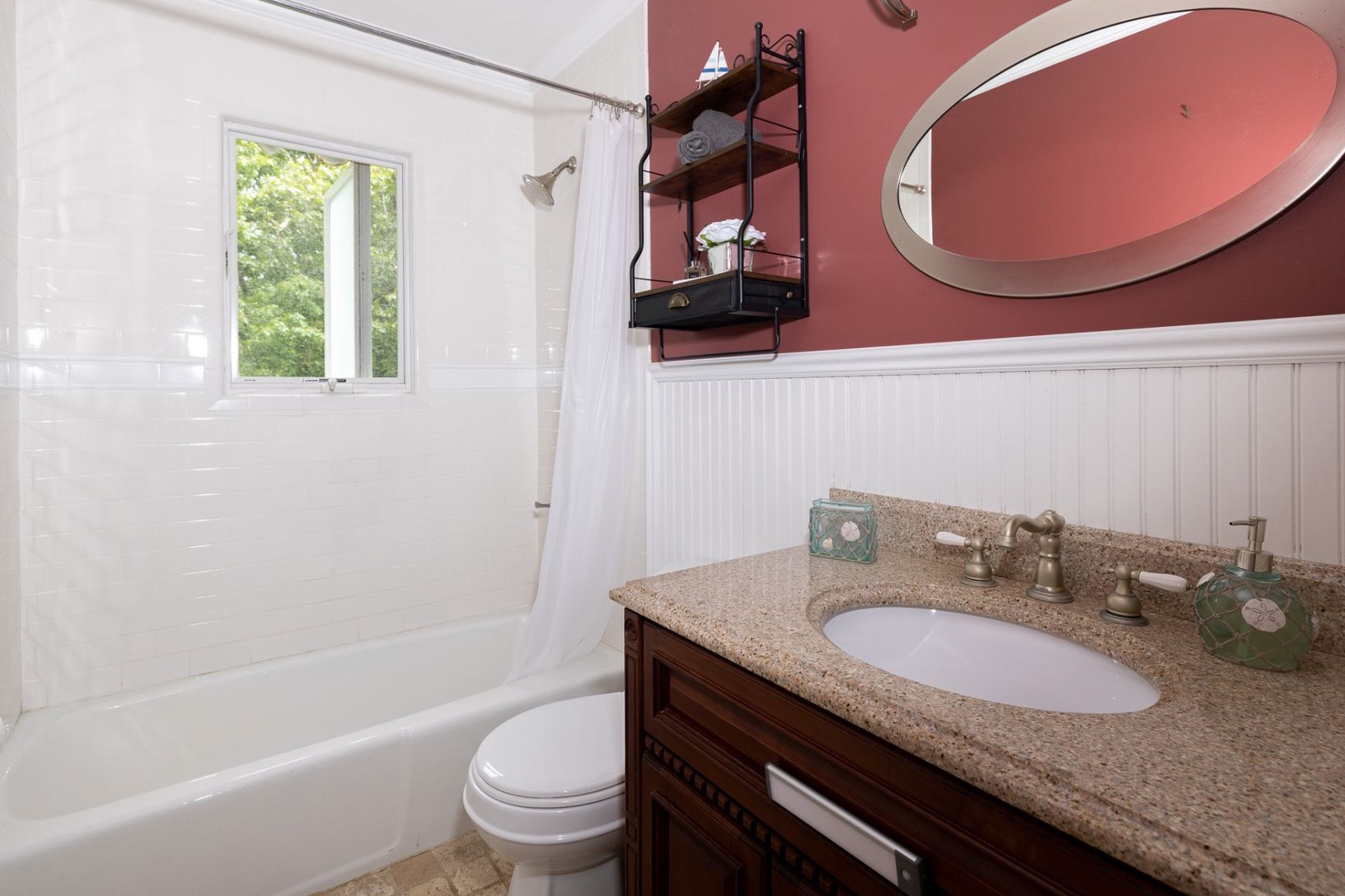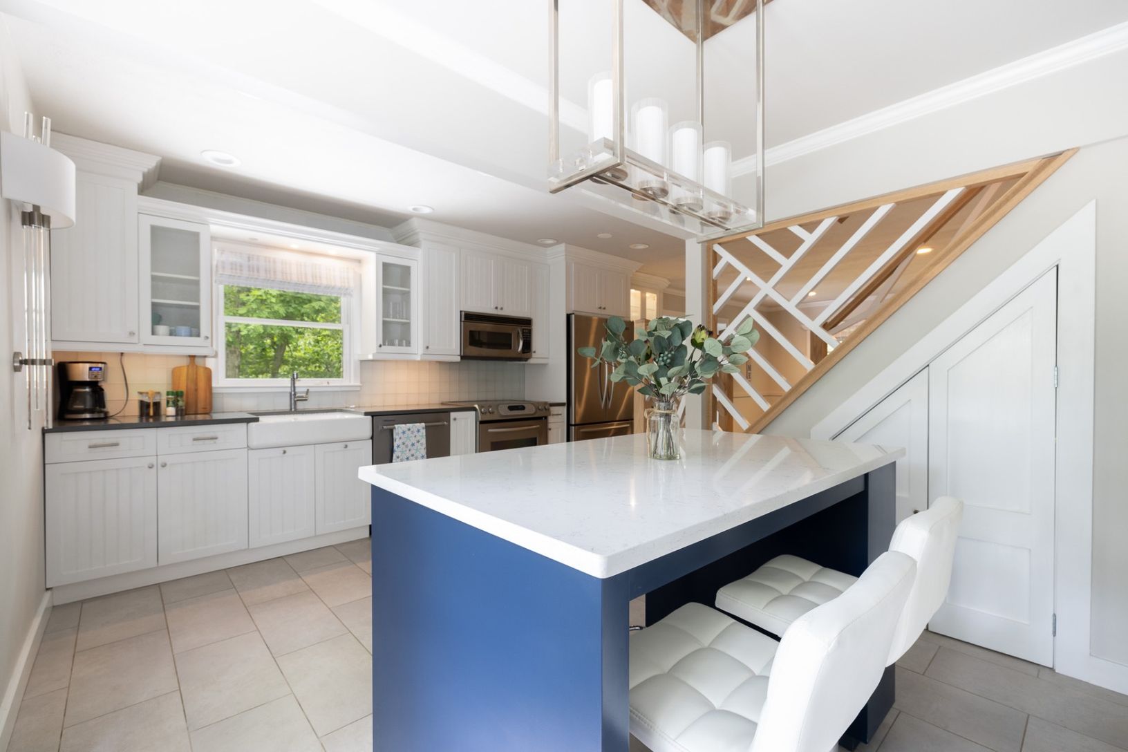 Enjoy this newly renovated Hampton Bays property just a few blocks to East Landing Beach. This four-bedroom, 2 full bath home offers a chic interior design with custom kitchen, and stainless-steel appliances adjacent to the open dining area. The large great room with vaulted ceilings and fireplace opens to the expansive deck overlooking your grounds. The first level has 2 spacious bedrooms and full bath. The second level has a full bath and tw