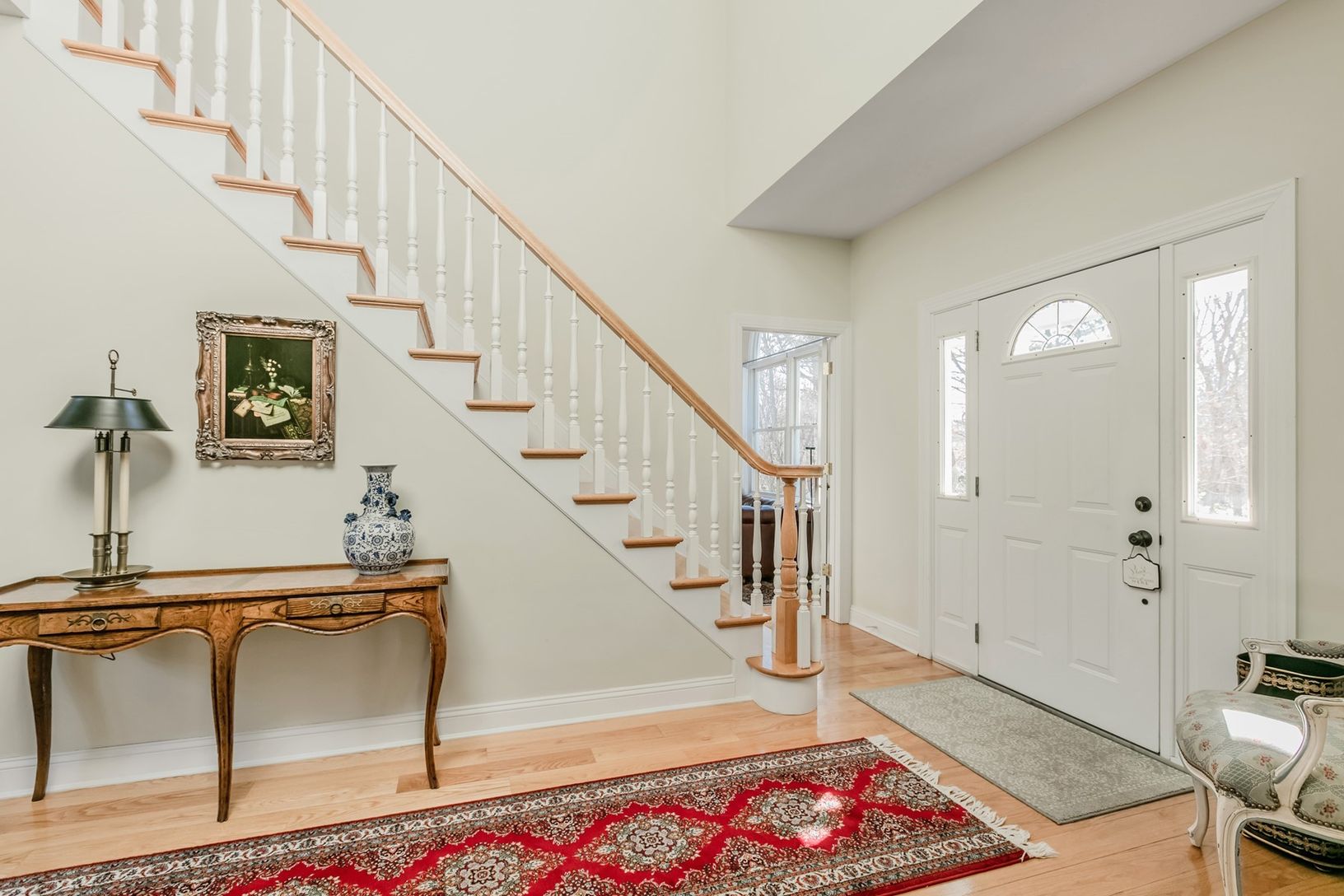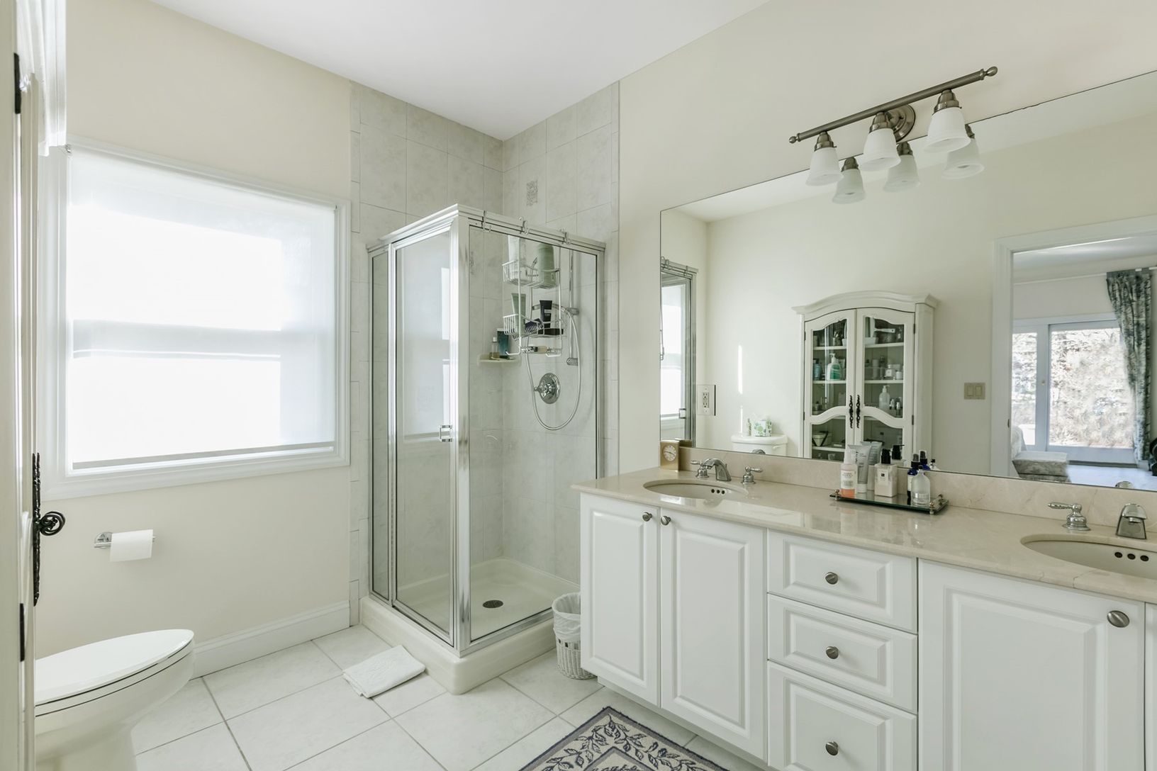 Private, bright and spacious turn-key post modern in South Hampton Pines. Two-story floor to ceiling windows provide great light for the open living space and beautiful wooded views. First floor includes living room with 2-story windows, formal dining room, large eat-in gourmet kitchen, a master suite, bedroom that can be used as den or office, powder room, and laundry room. Second floor includes a second spacious master suite, 3 bedrooms, and