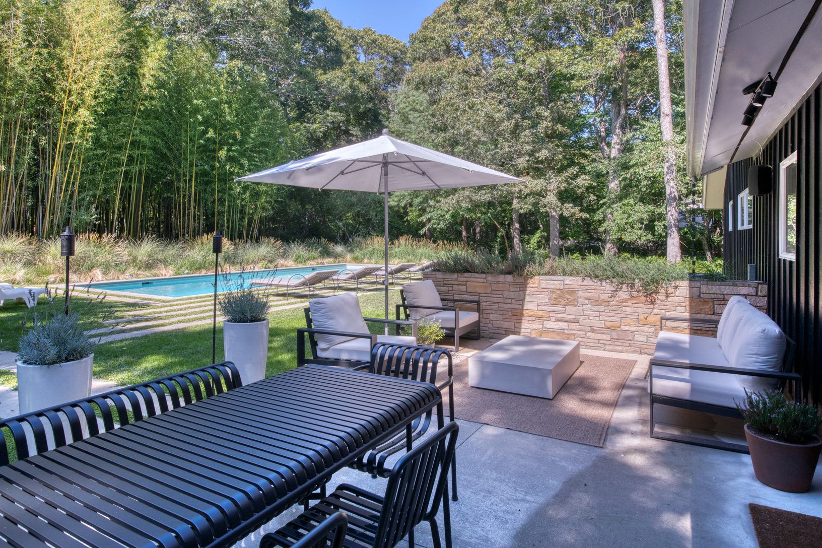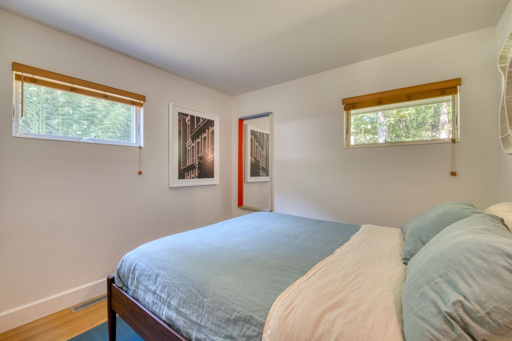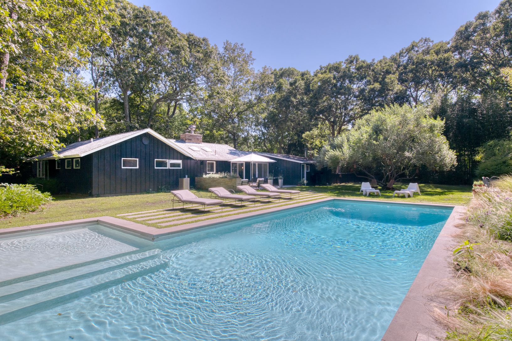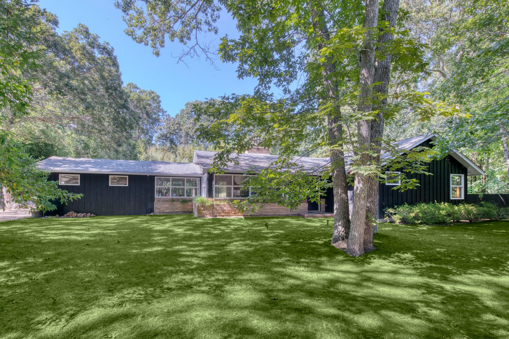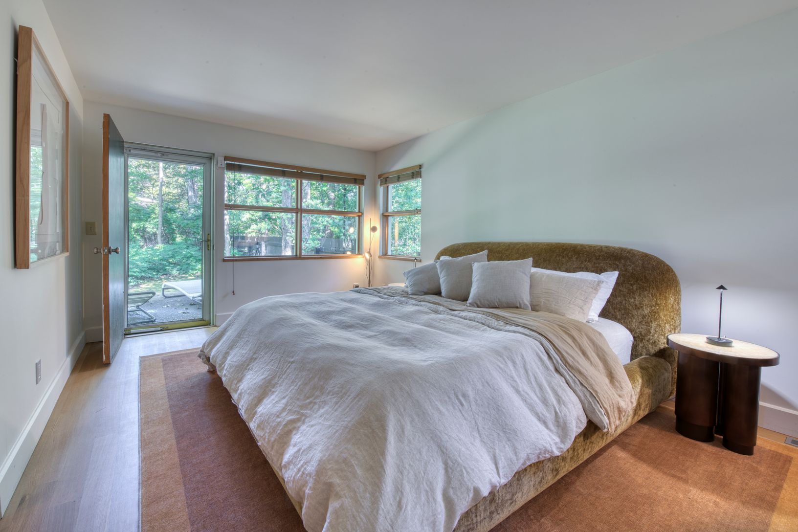 Minutes from a beautiful, sandy, sunset facing beach on Peconic Bay and sited on a .92 landscaped acre, this 3 bedroom, 2.5 bath, Shelter Island home has been completely renovated to combine modern functionality with a warm mid century design aesthetic and an inviting ambience. Many beautiful features include vaulted and beamed ceilings in the living room which also has a crab orchard rock wall corner fireplace, wrap window wall, and newly ref