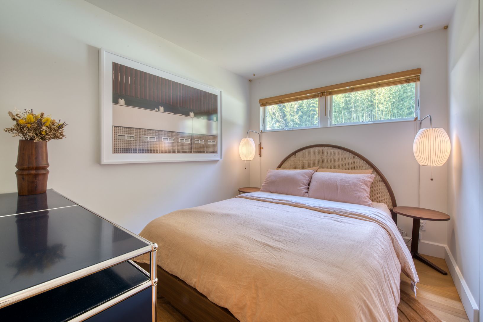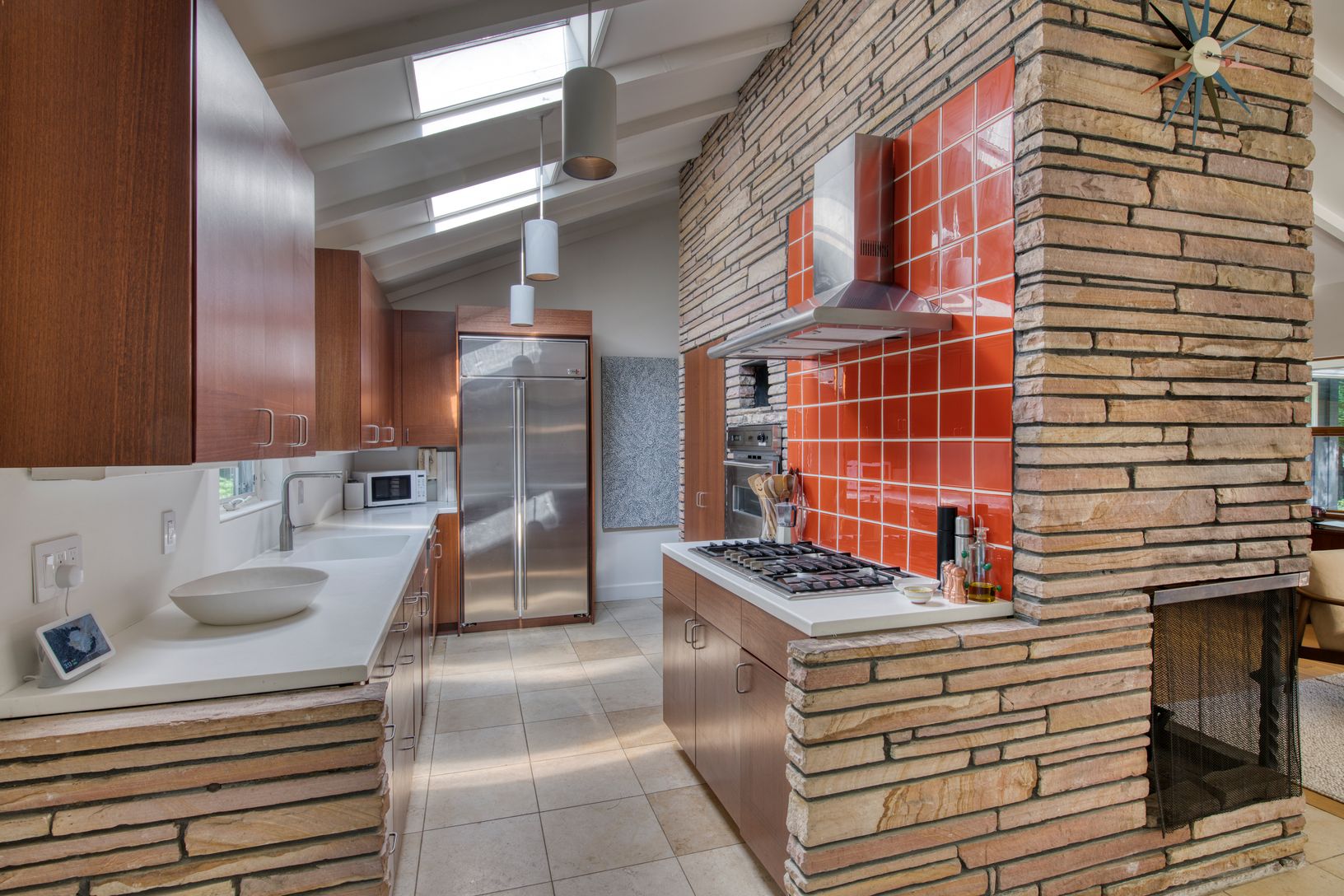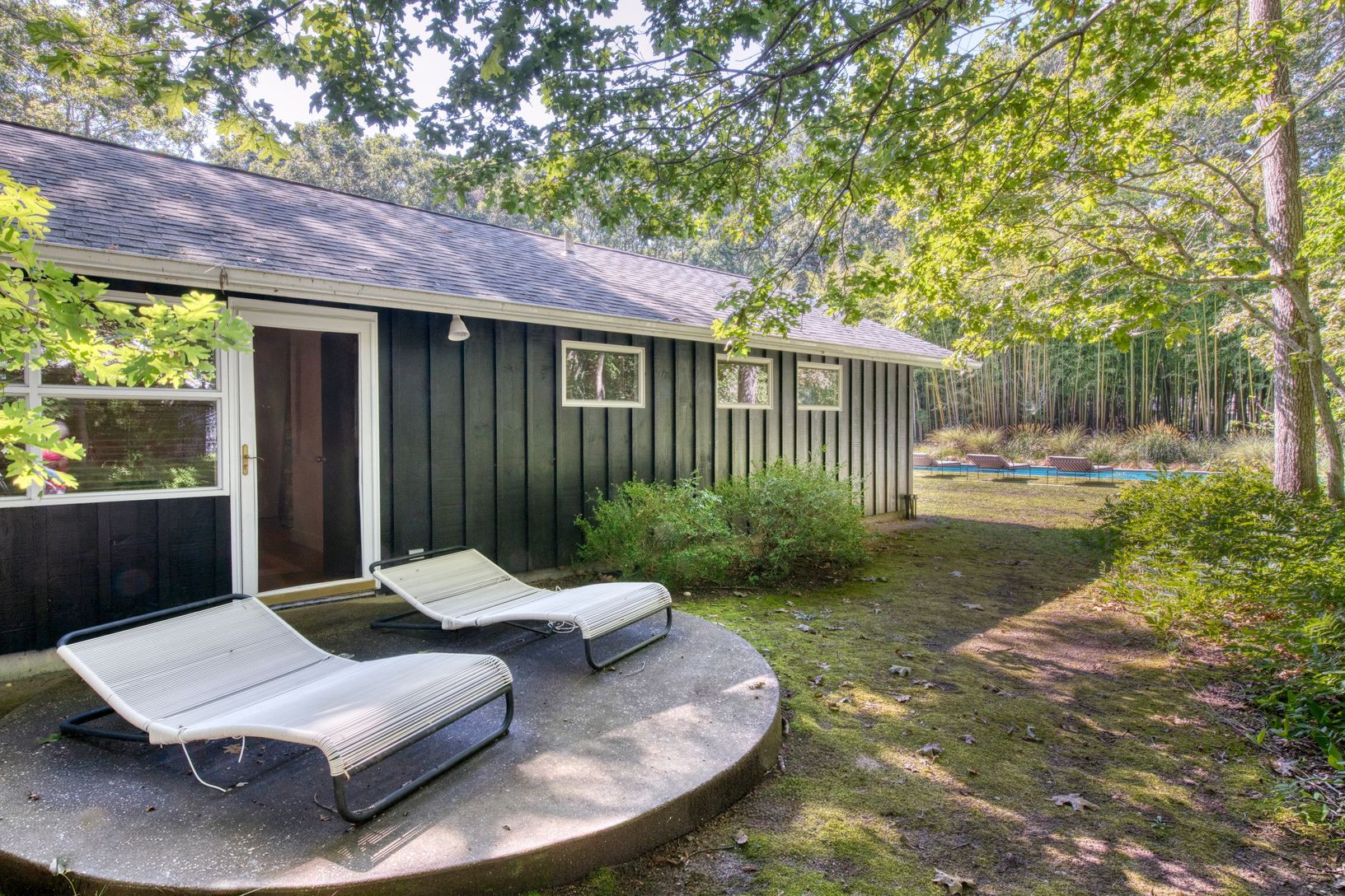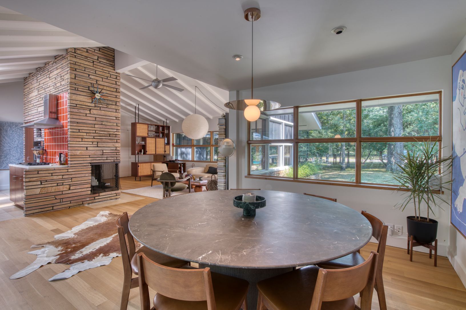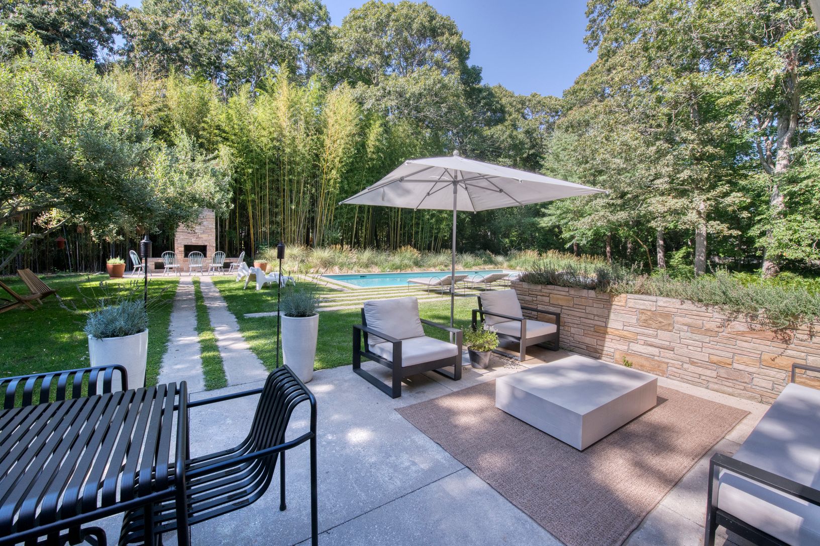 Minutes from a beautiful, sandy, sunset facing beach on Peconic Bay and sited on a .92 landscaped acre, this 3 bedroom, 2.5 bath, Shelter Island home has been completely renovated to combine modern functionality with a warm mid century design aesthetic and an inviting ambience. Many beautiful features include vaulted and beamed ceilings in the living room which also has a crab orchard rock wall corner fireplace, wrap window wall, and newly ref