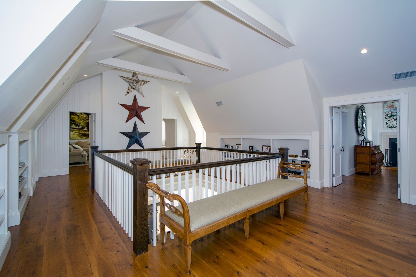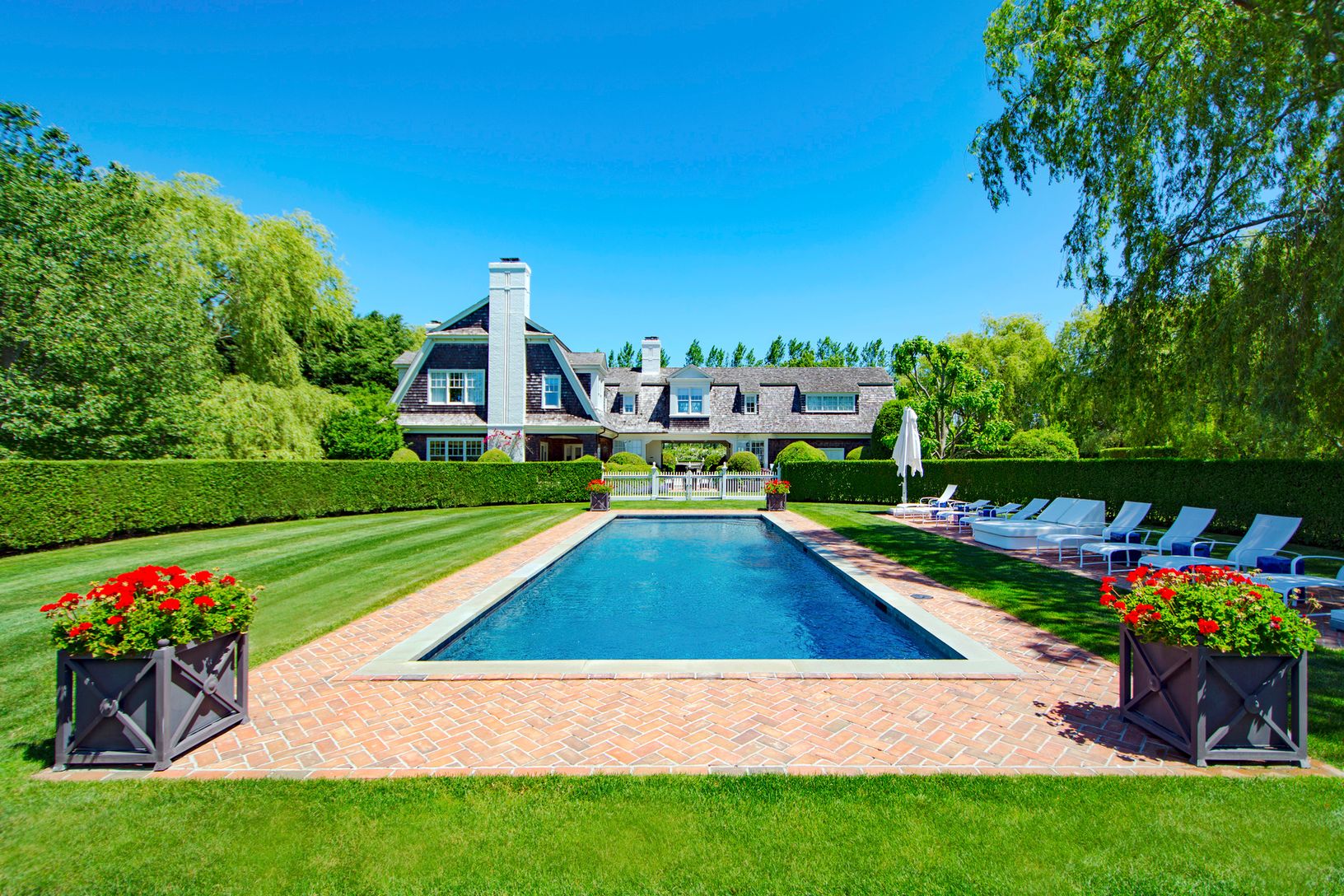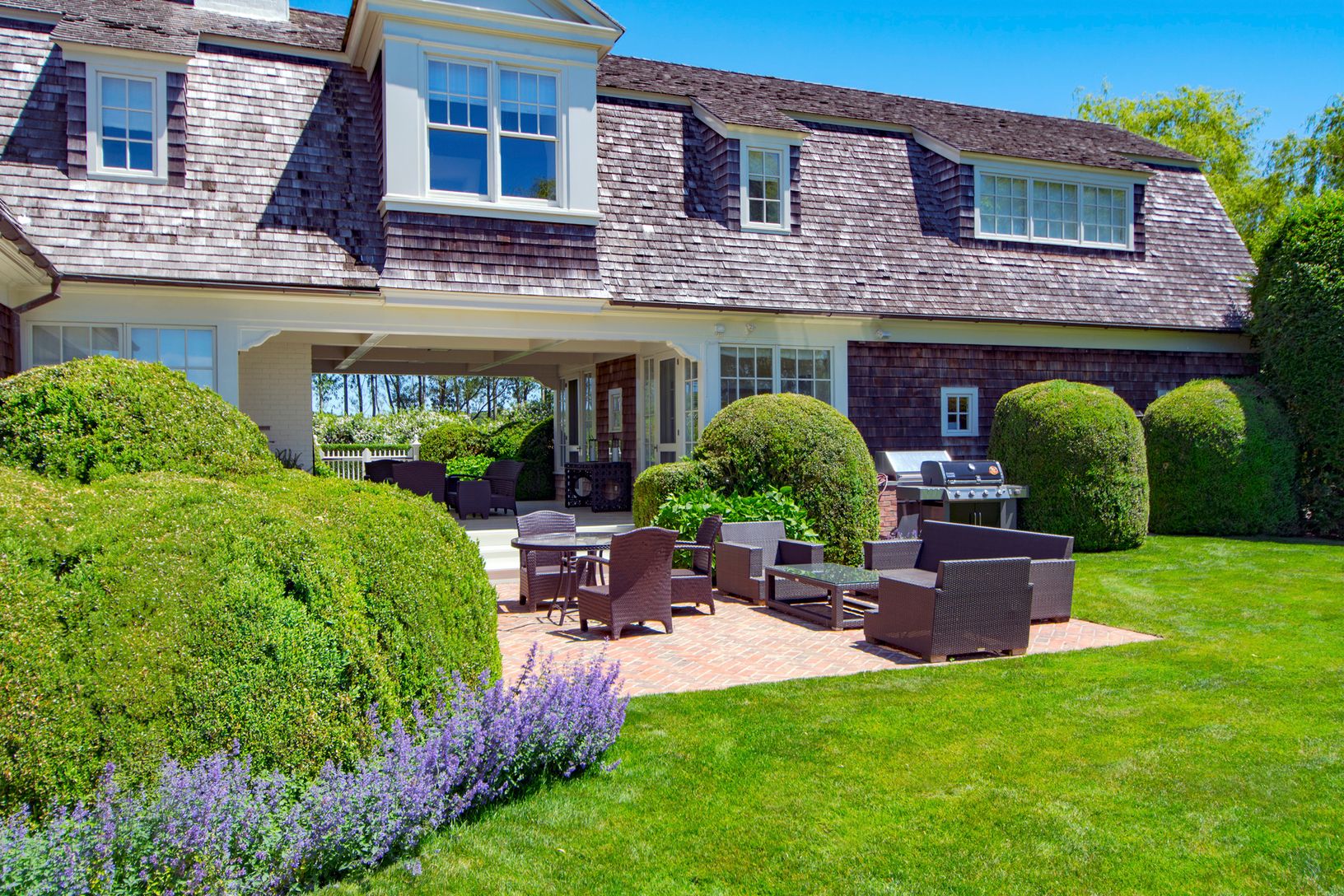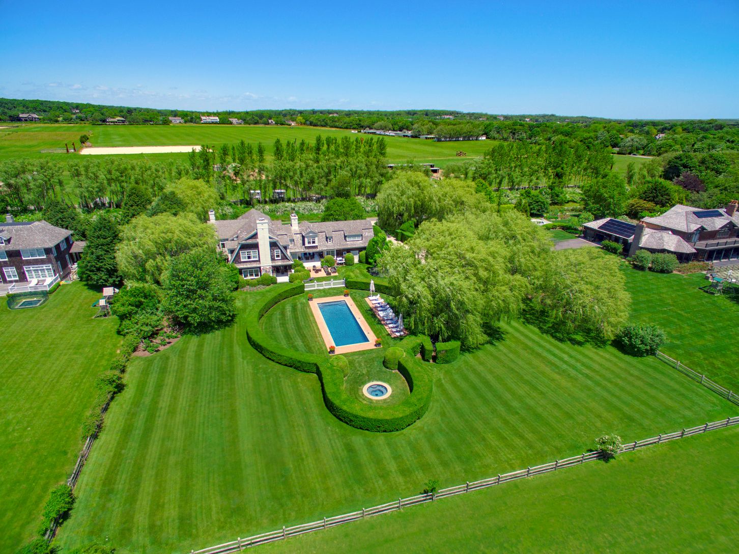 Bordering private horse farms in Bridgehampton with golf course views, this shingle-sided 6100+/- sq. ft. gambrel style home is set on 1.72+/- acres. Constructed by one of the Hamptons most reputable builders, the residence offers open plan living areas on the ground floor, with six bedrooms, eight full baths, and a half-baths. The finished lower level with game rooms, wine cellar, staff areas, gym and walkout adds another 2500+/- sq. ft. The