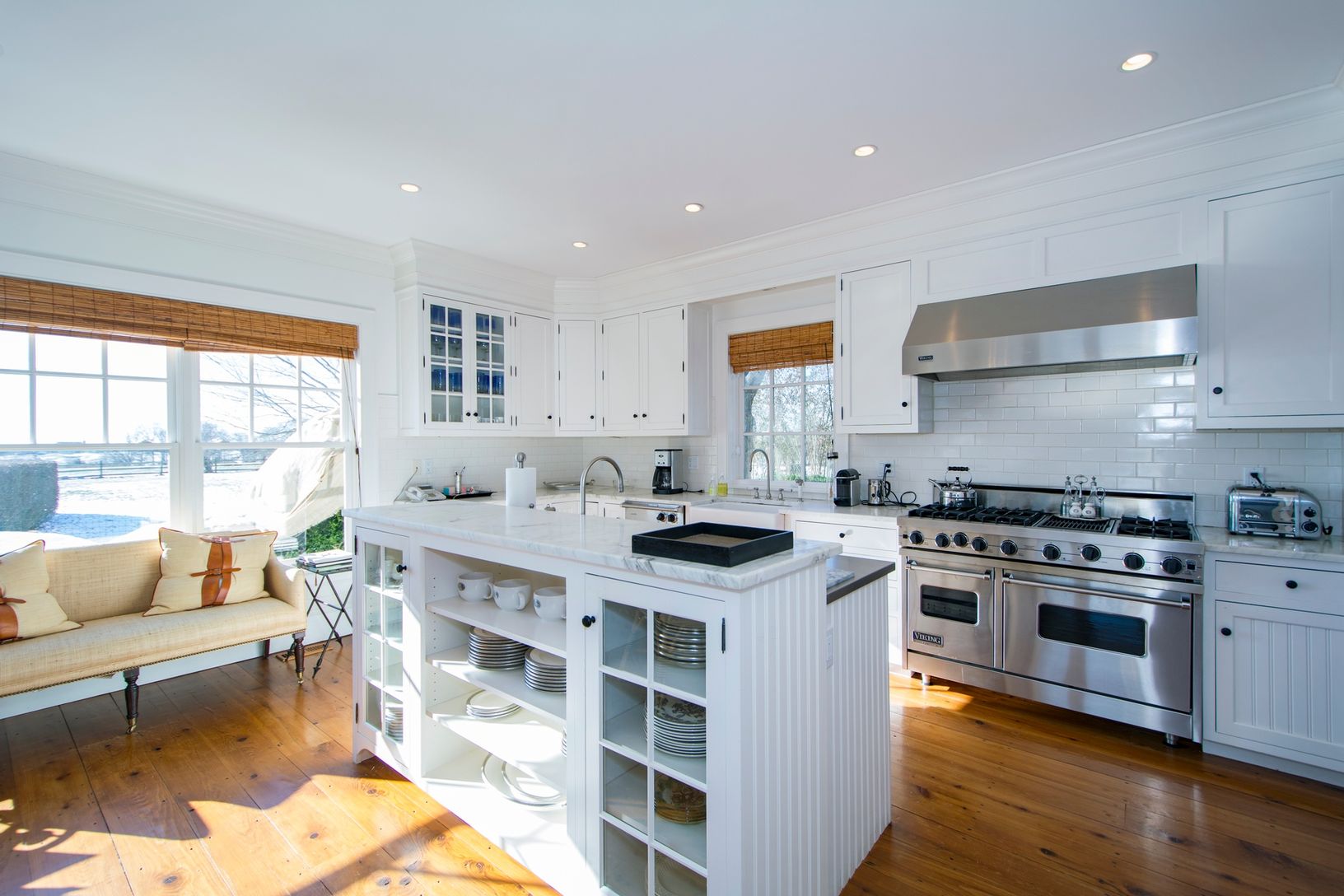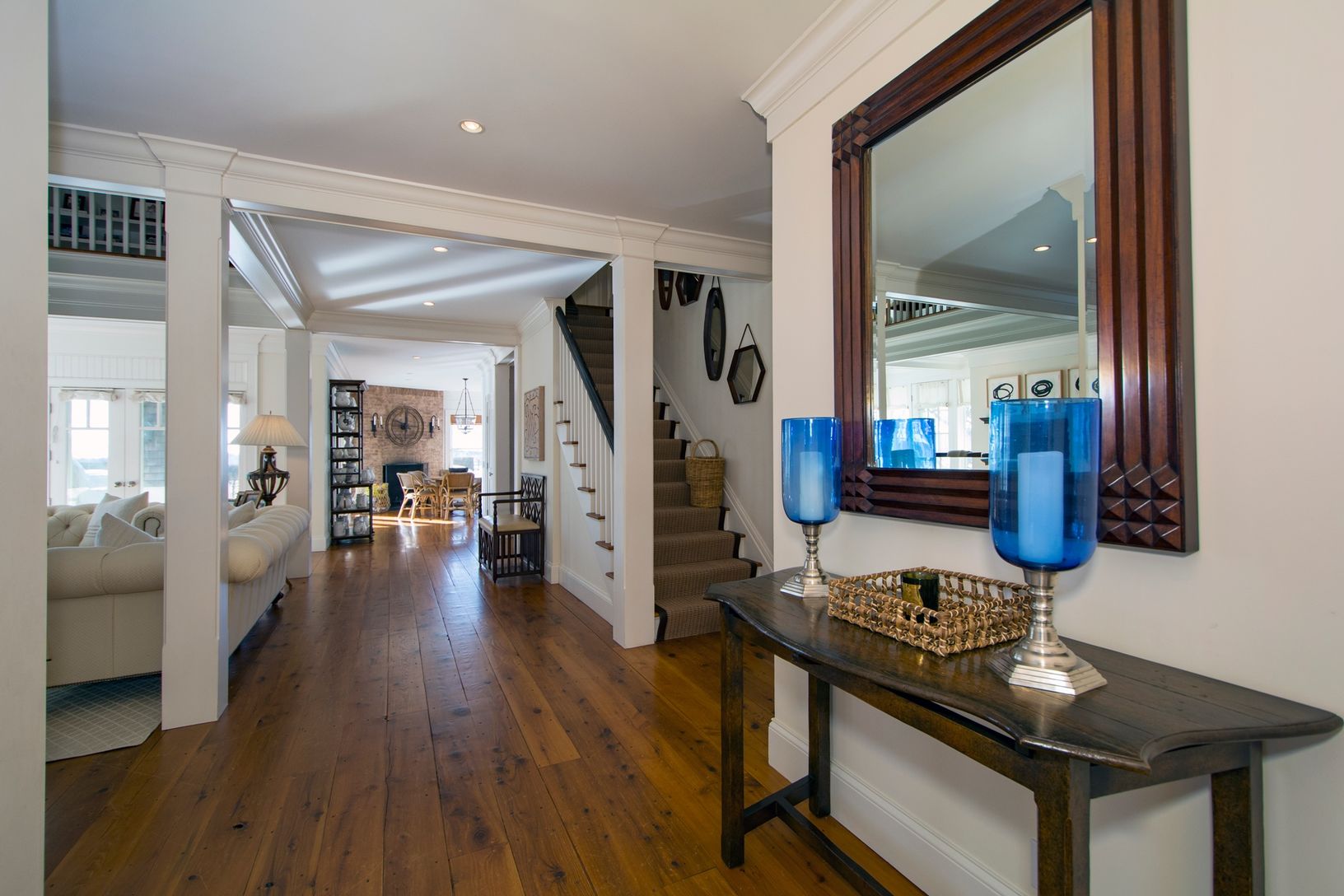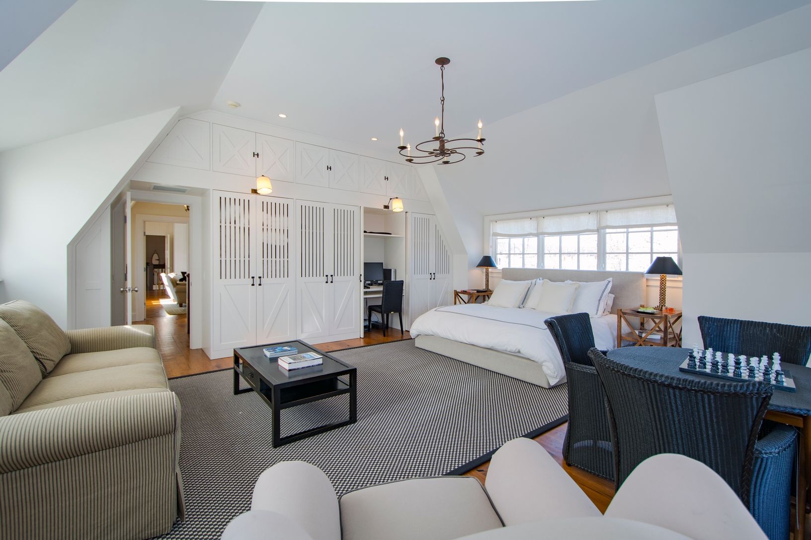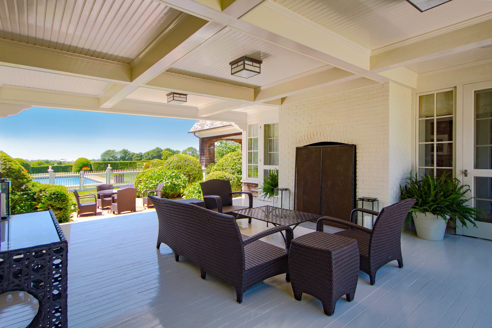 Bordering private horse farms in Bridgehampton with golf course views, this shingle-sided 6100+/- sq. ft. gambrel style home is set on 1.72+/- acres. Constructed by one of the Hamptons most reputable builders, the residence offers open plan living areas on the ground floor, with six bedrooms, eight full baths, and a half-baths. The finished lower level with game rooms, wine cellar, staff areas, gym and walkout adds another 2500+/- sq. ft. The