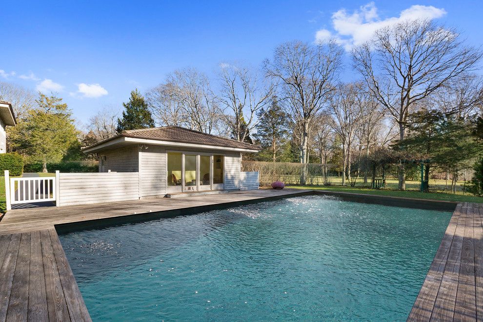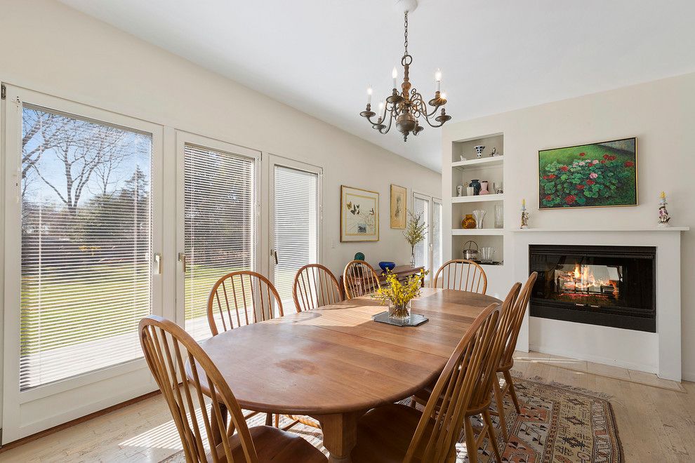 This very special, park-like .77 acre property features a 3100SF, Frank Lloyd Wright-inspired home. 4 bedrooms, 3 baths, large living area with double-sided fireplace, formal dining room and roomy chef's kitchen, all solidly built and ready for your imaginative personal touches. The grounds are fully cleared, gated and feature an oversized pool, detached garage with pool cabana, and mature trees. North Haven Shores has community beach and a ma