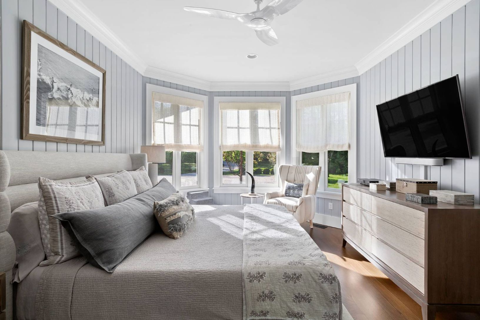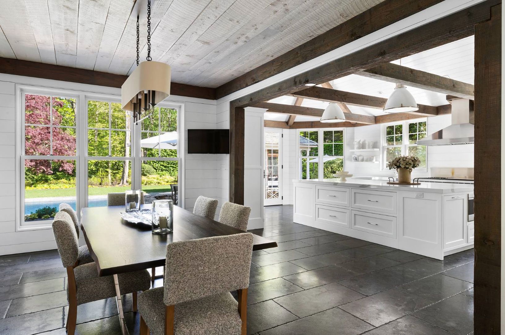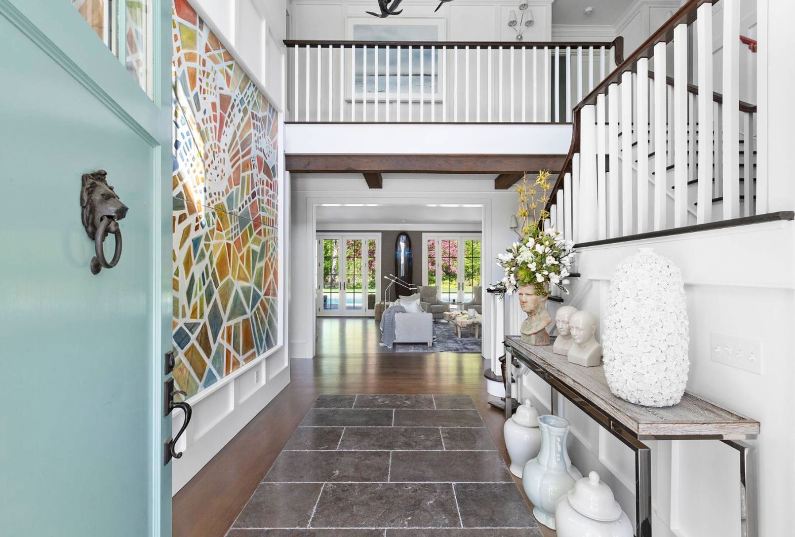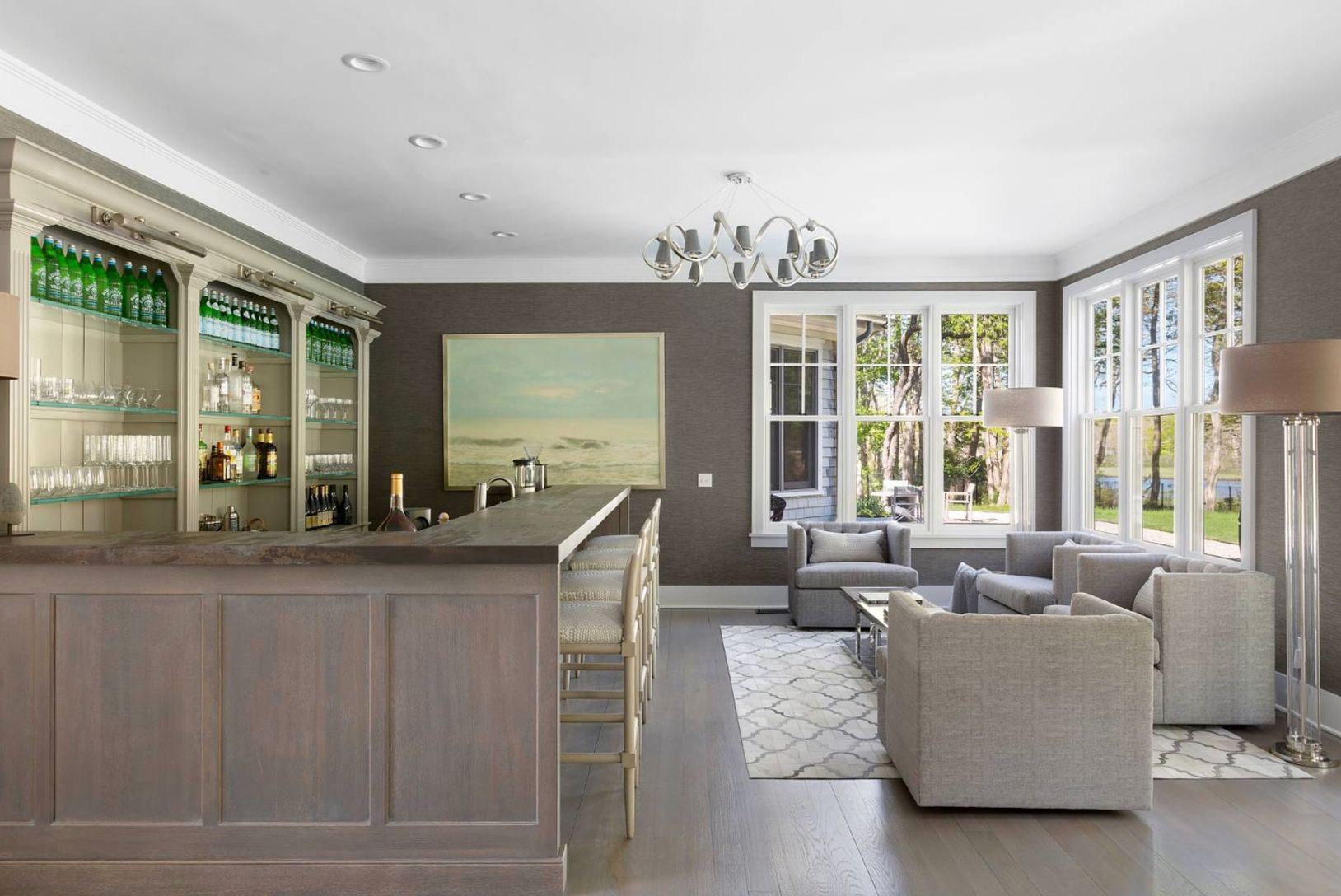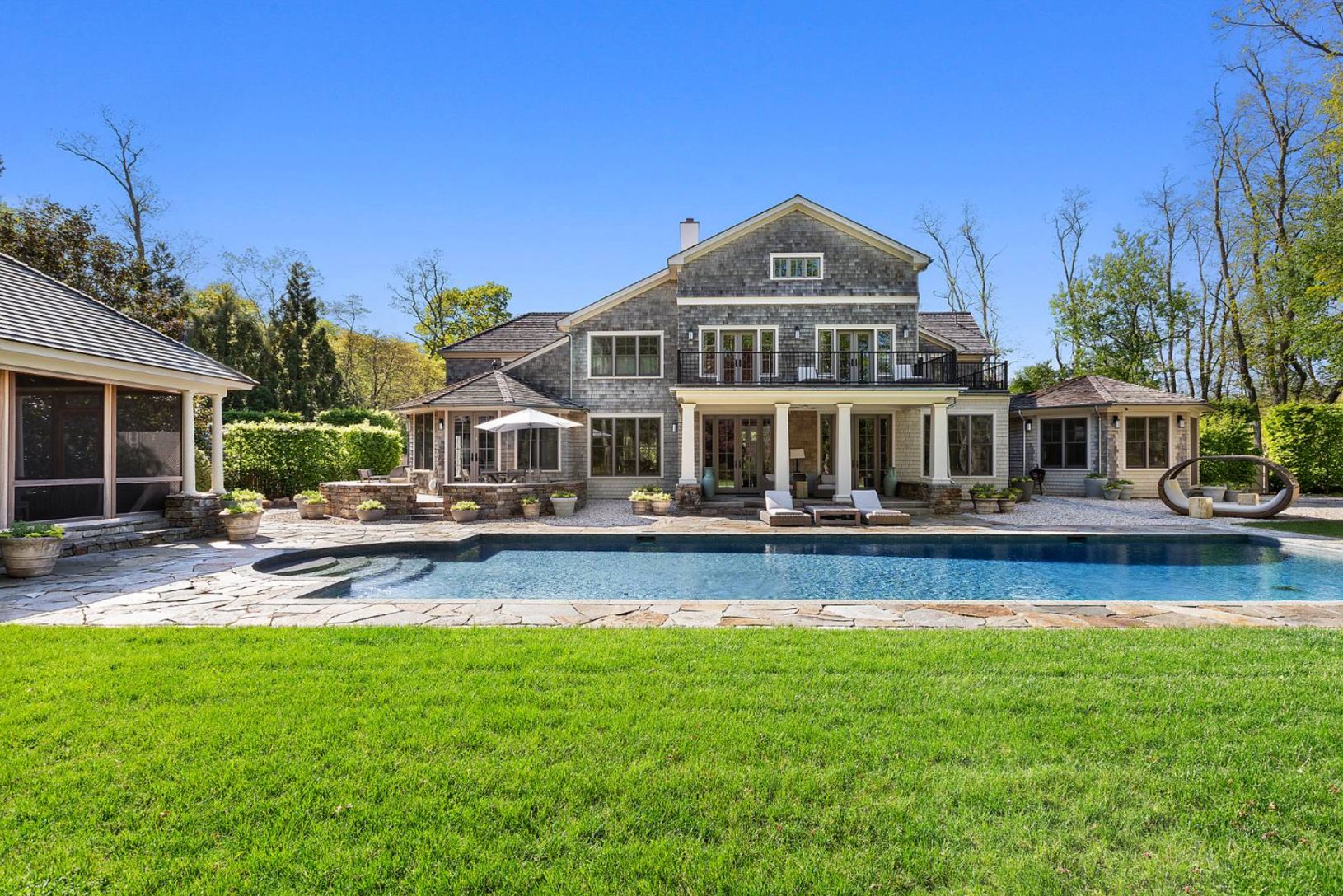 A very successful design collaboration has stylishly reimagined this 8,700+/- square foot shingled estate which is being offered in immaculate condition for immediate use and enjoyment by the new owner. Sited on nearly two acres in prestigious North Haven Point, with stunning yet tranquil water views, the expansive interior living space of this home spans three levels, serviced by front and back staircases and elevator, comprised of seven bedr