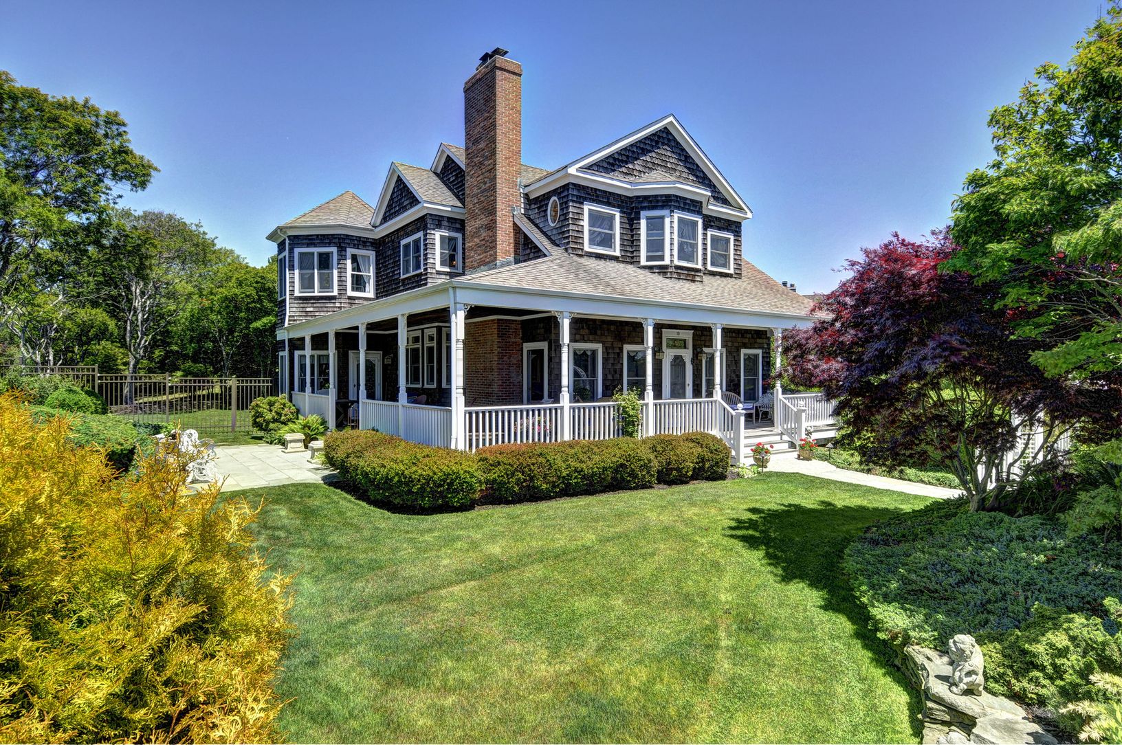 Beautiful 3 bedroom, 3 bath custom built home by renowned East End architect, Bruce Nagle, designed in the spirit of the classic Stanford White shingle-style summer cottages. Sweeping wrap-around veranda with weathered Ipei decking over looking meticulously designed gardens with waterfall and stack-stone retaining walls on shy half acre of park-like woods. Built in 1999 featuring stained oak floors, 10' ceilings with crown molding, gas firep