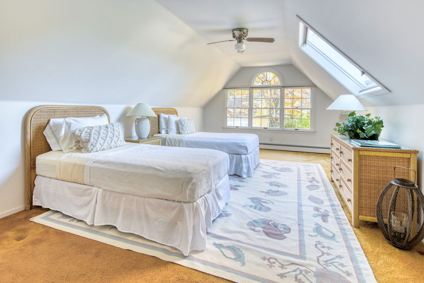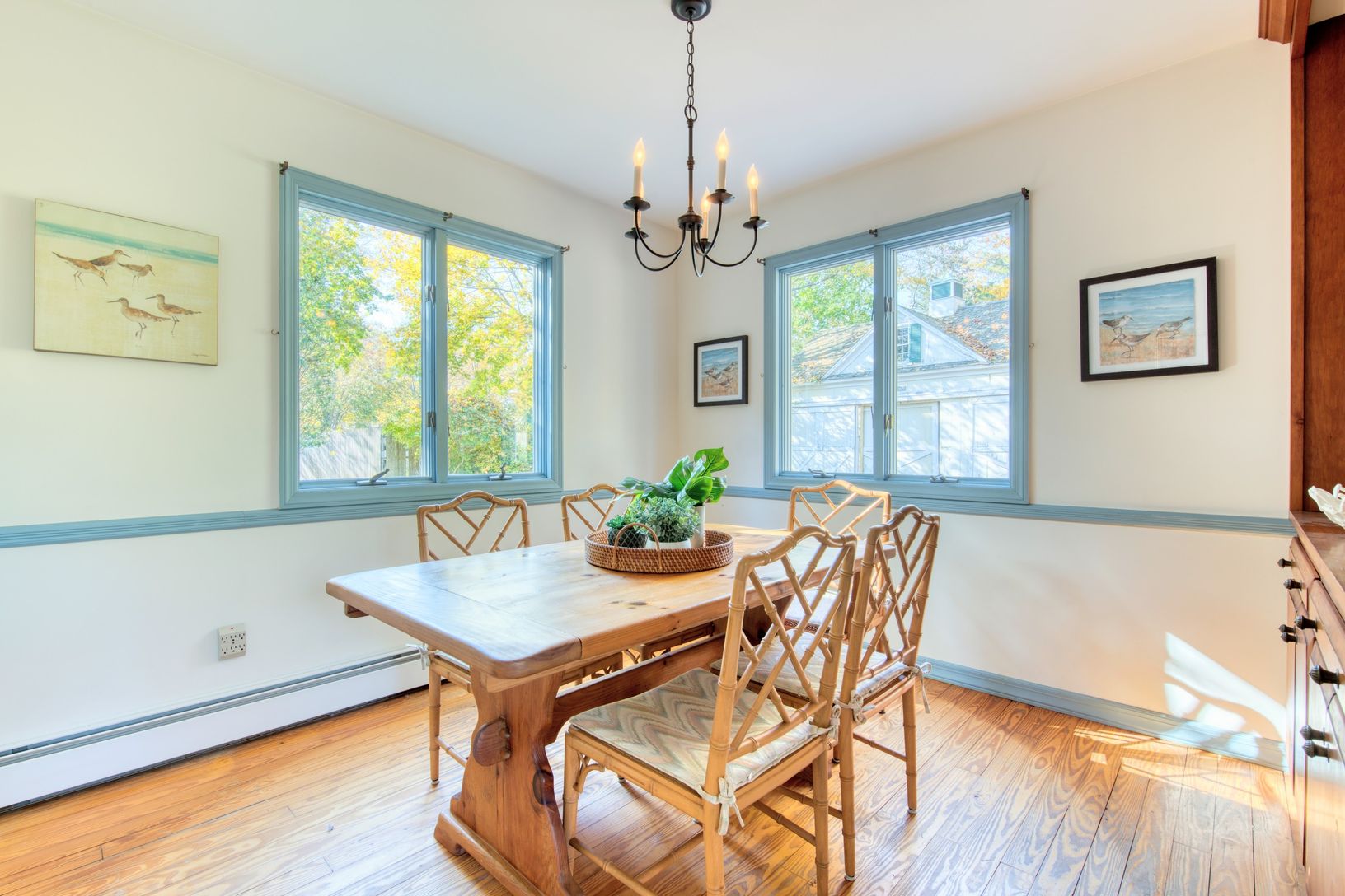 Travel down a long drive to arrive at this two story traditional residence designed by renowned architect Frank Hollenbeck. Nestled on .35 private acres with large 1900's barn, this home's prime location has easy access to Egypt Lane, Main Street, and ocean. The living spaces of 1880 square feet include grand living room w/ fireplace and a/c, cozy dining room with built in cabinetry, country kitchen, laundry room, grand first floor master suit
